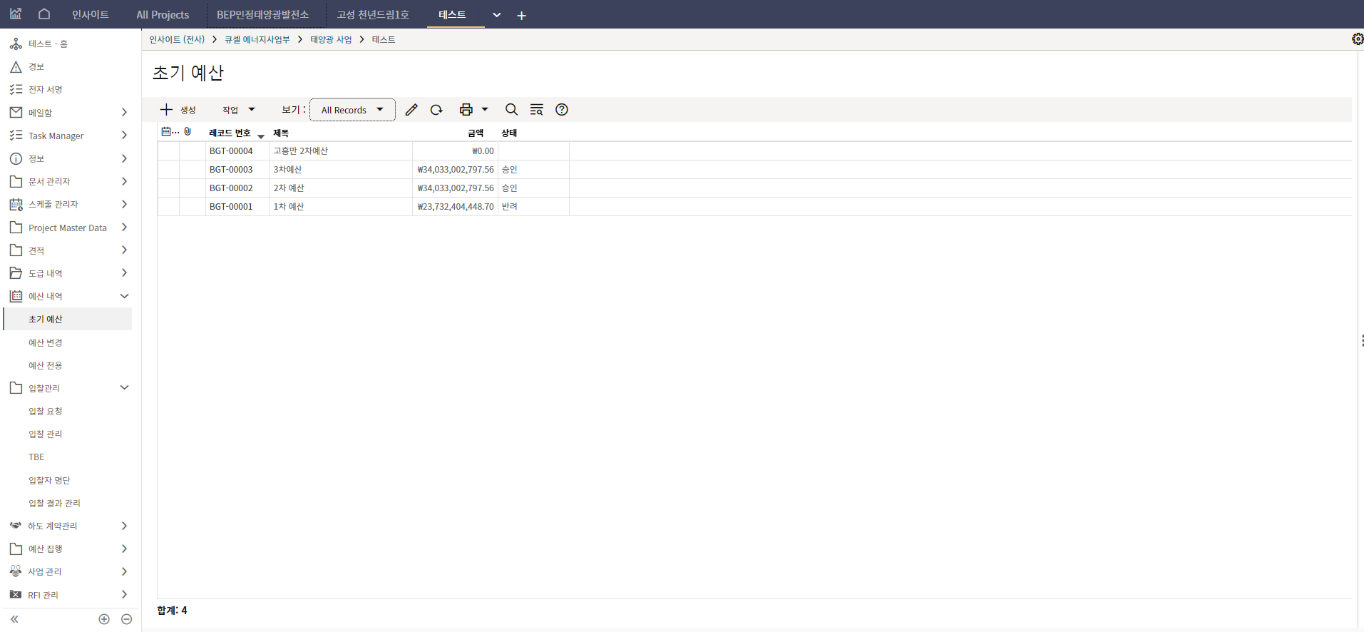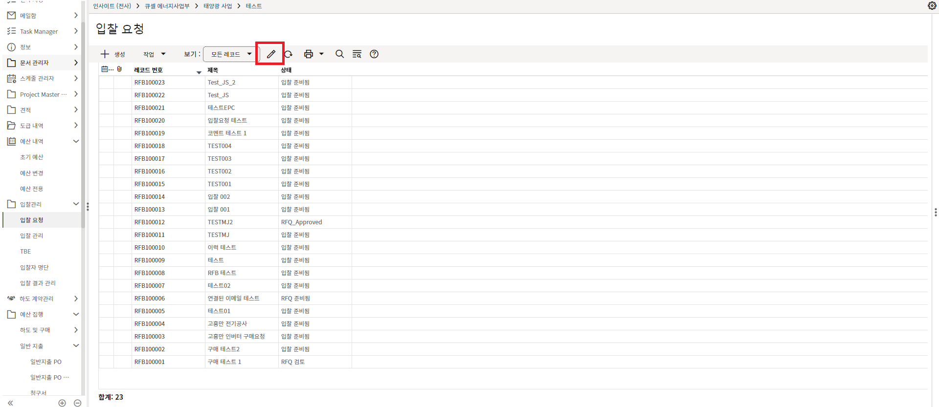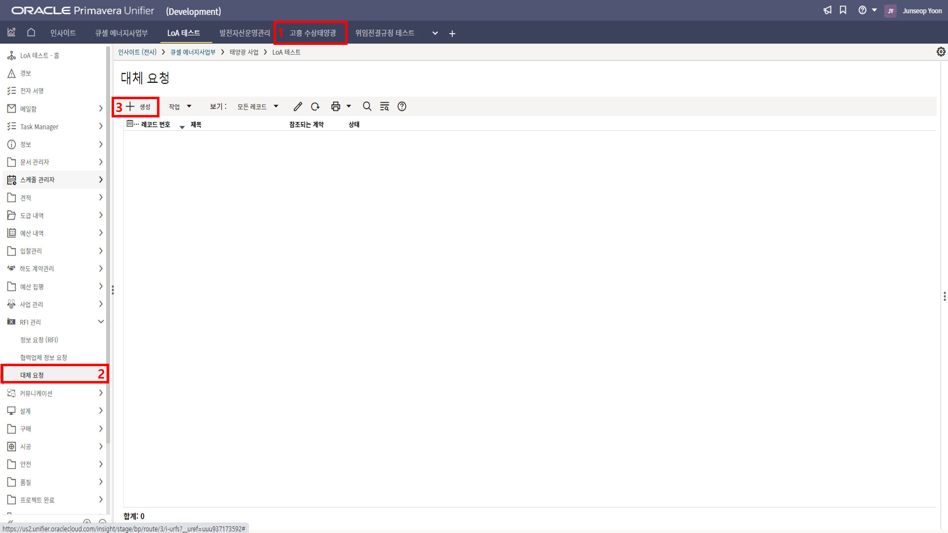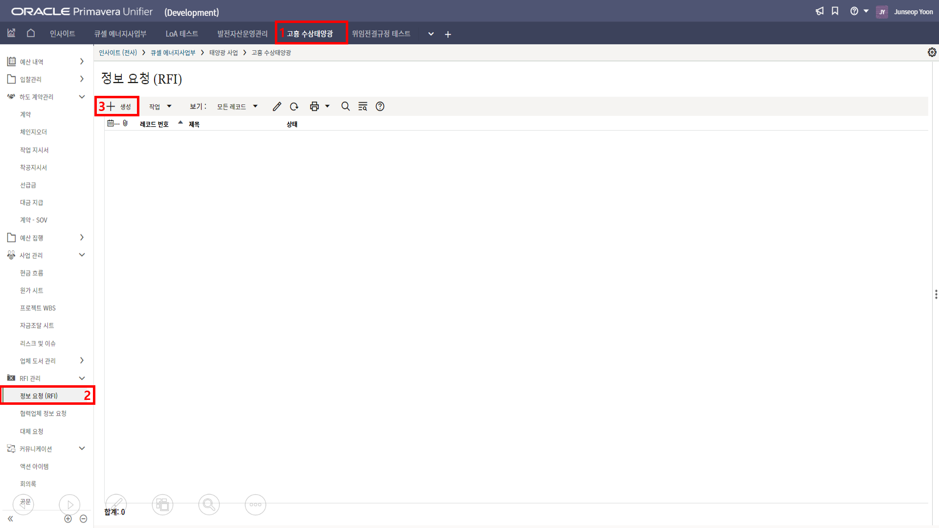 2. '1)해당 프로젝트 > 2)TBE > 3)생성된 레코드'을 클릭합니다.