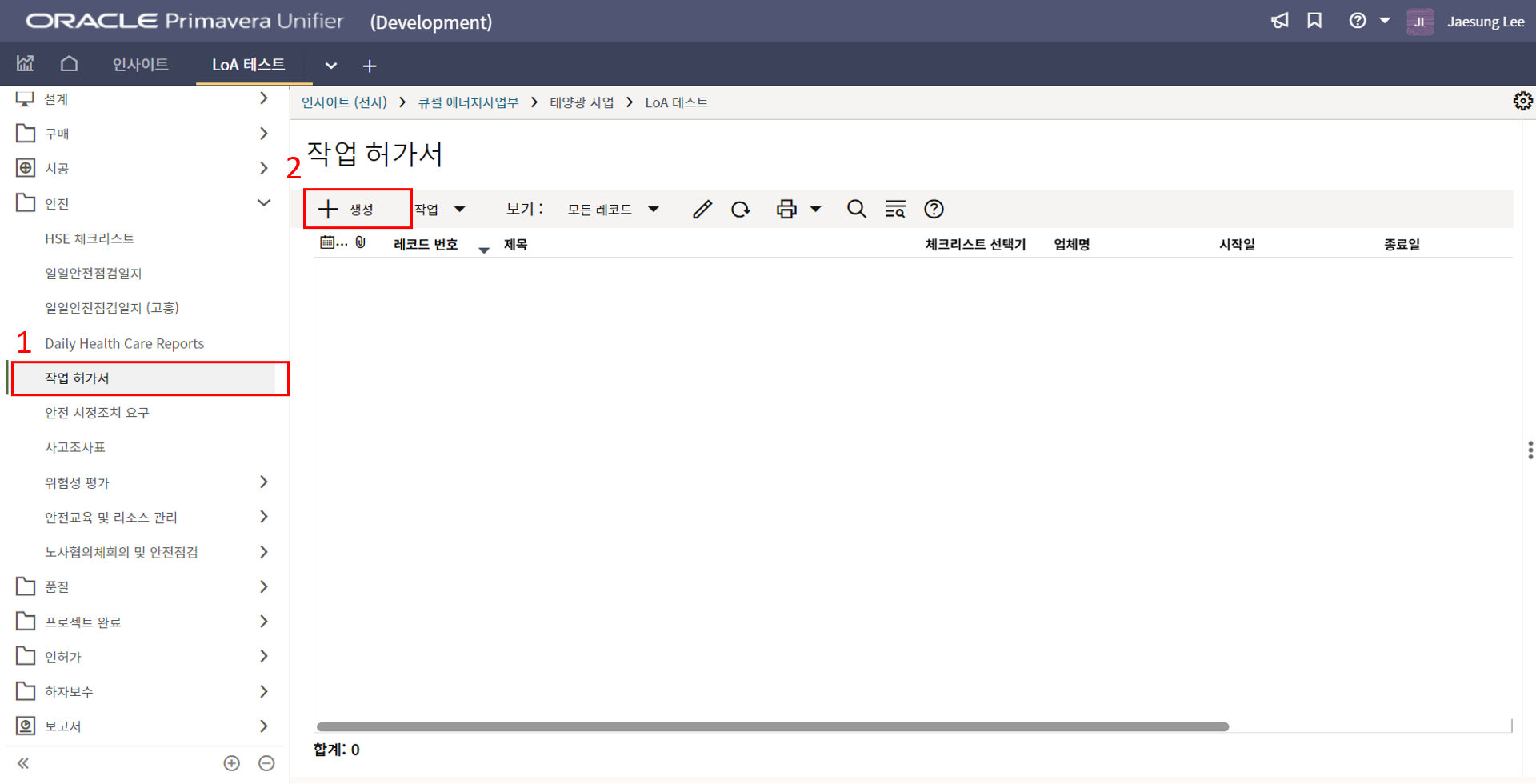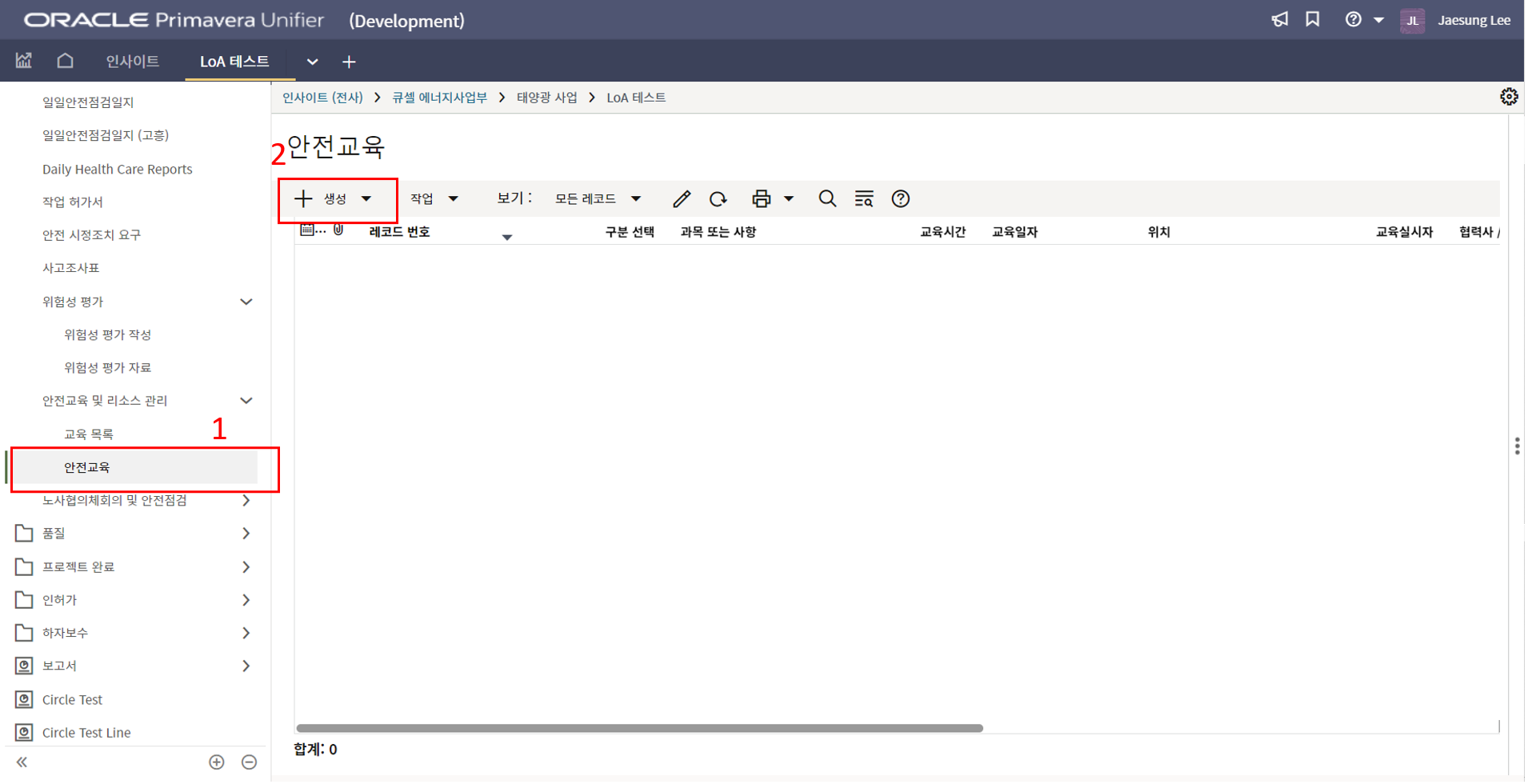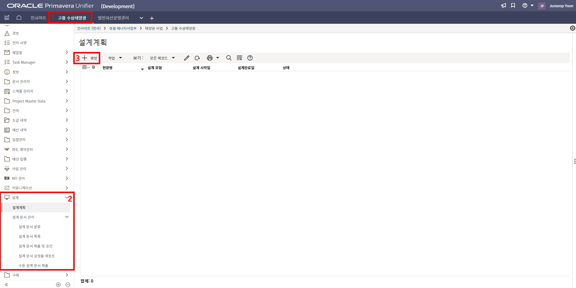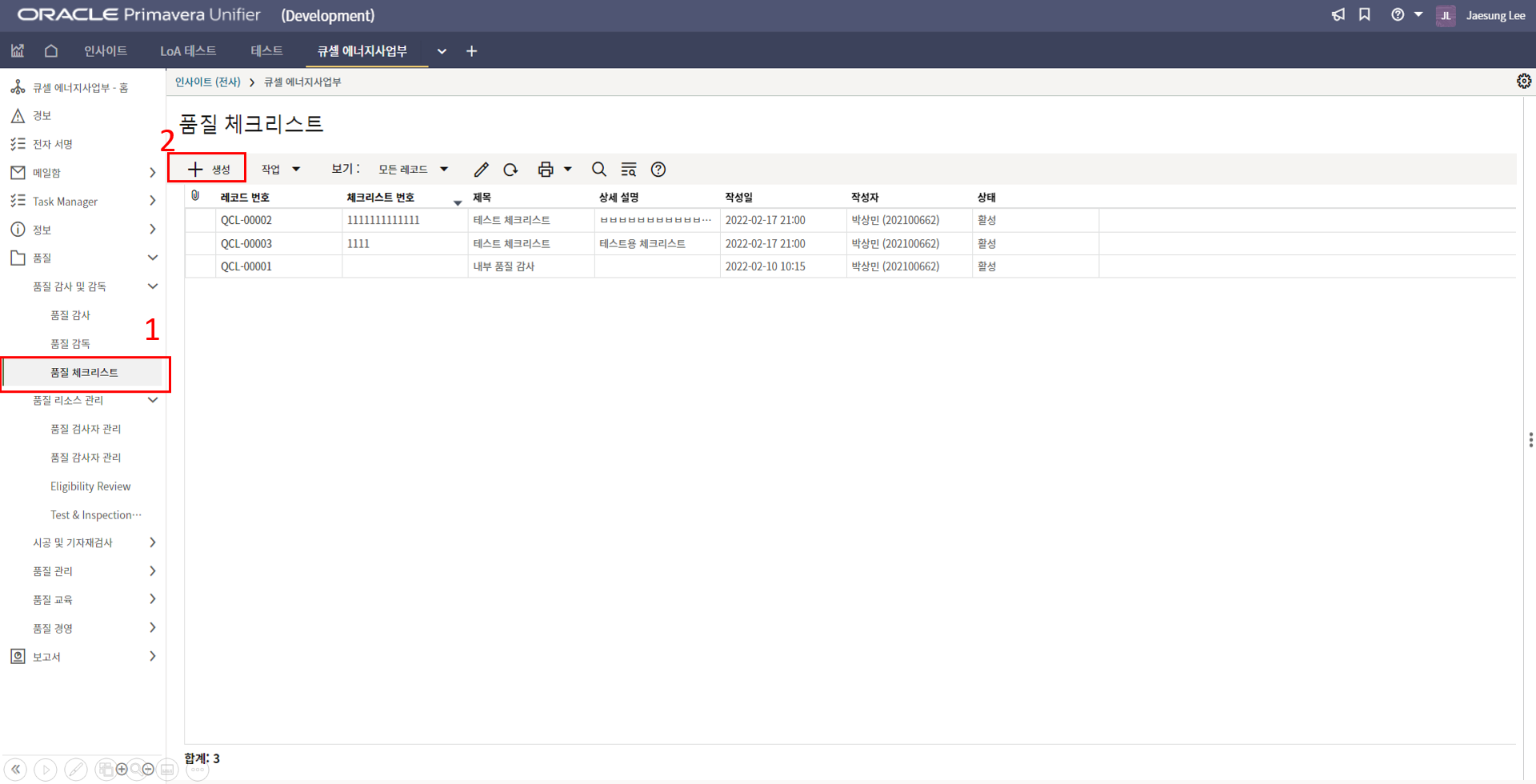 2. '1)해당 프로젝트 > 2)TBE > 3)생성된 레코드'을 클릭합니다.
