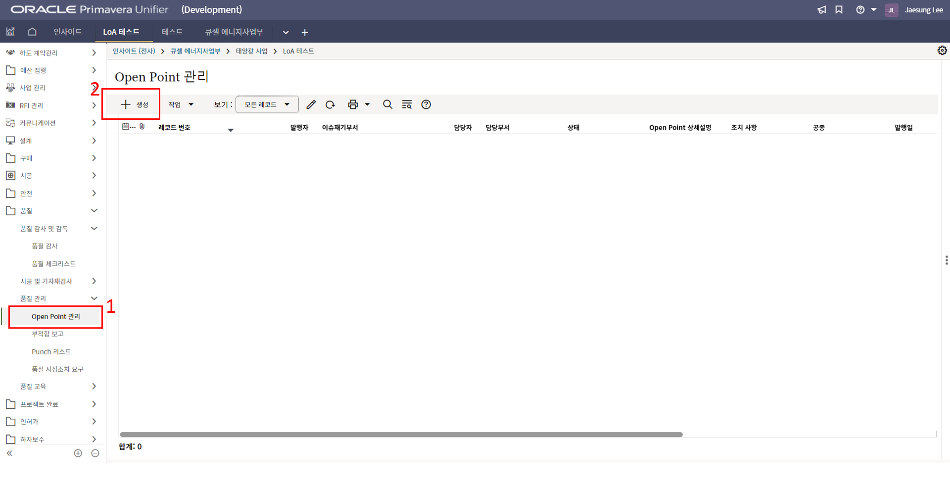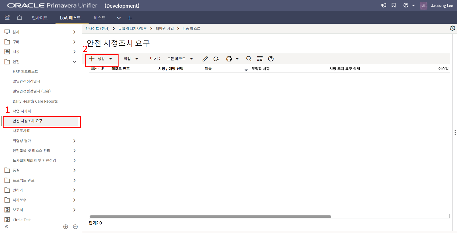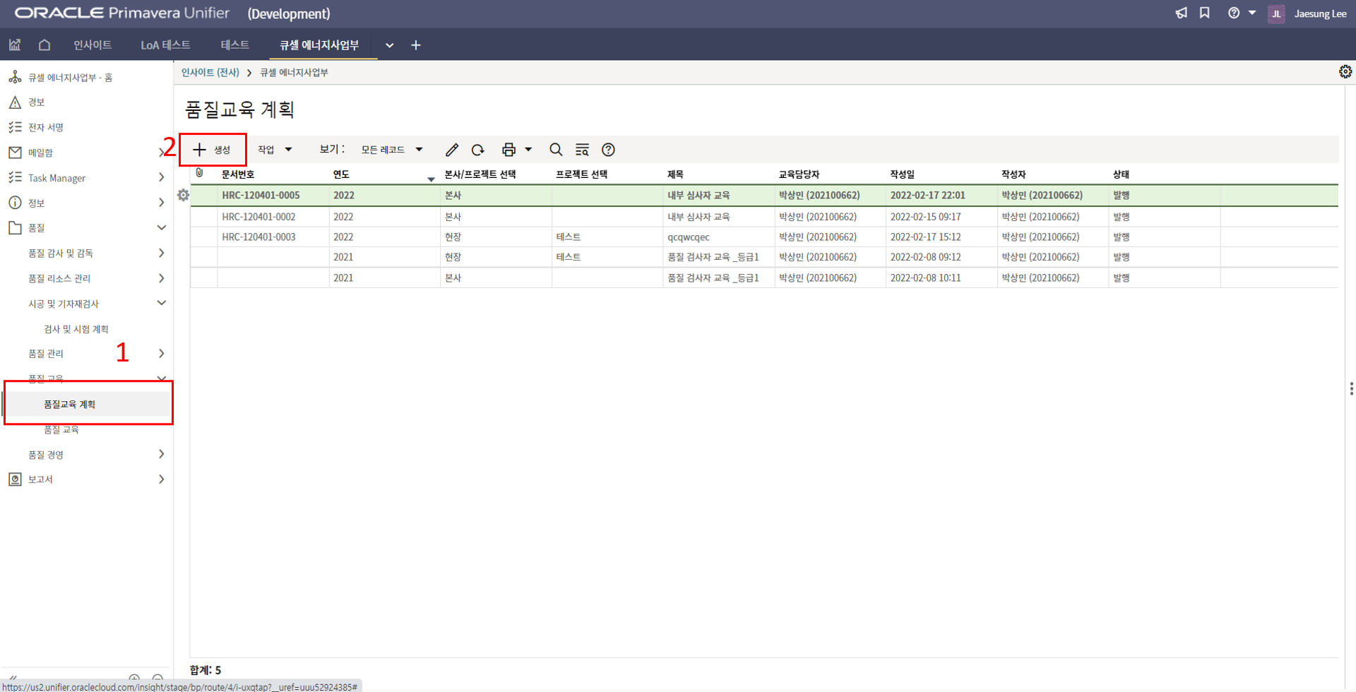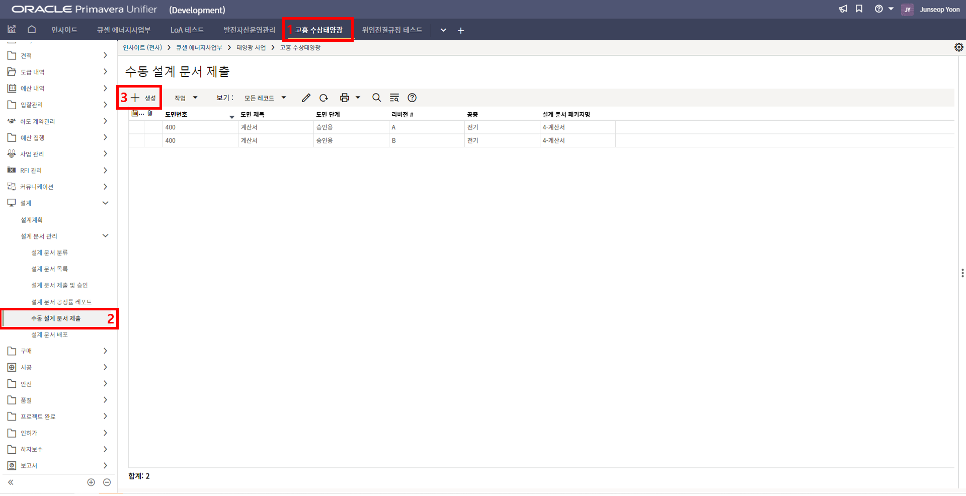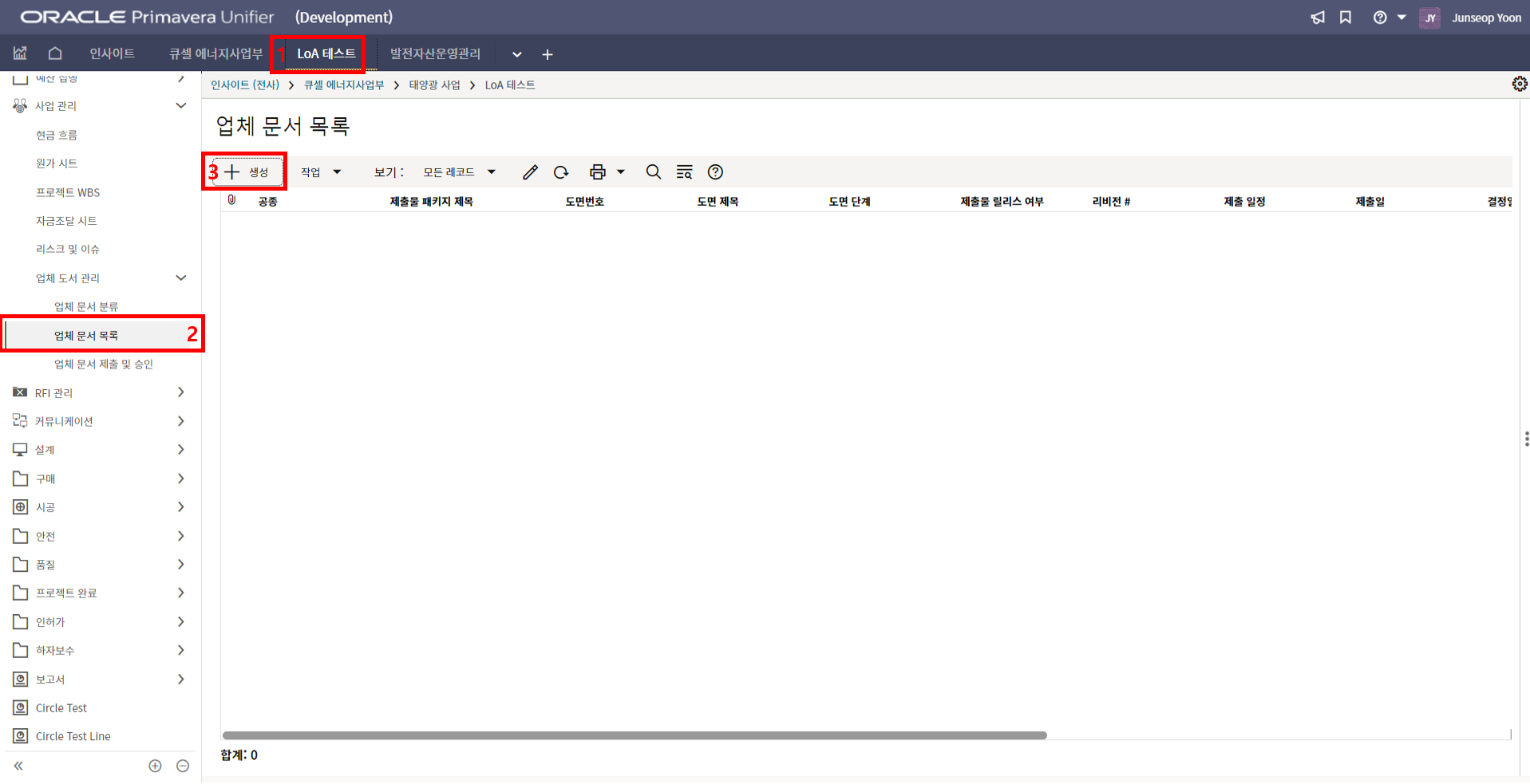 2. '1)해당 프로젝트 > 2)TBE > 3)생성된 레코드'을 클릭합니다.