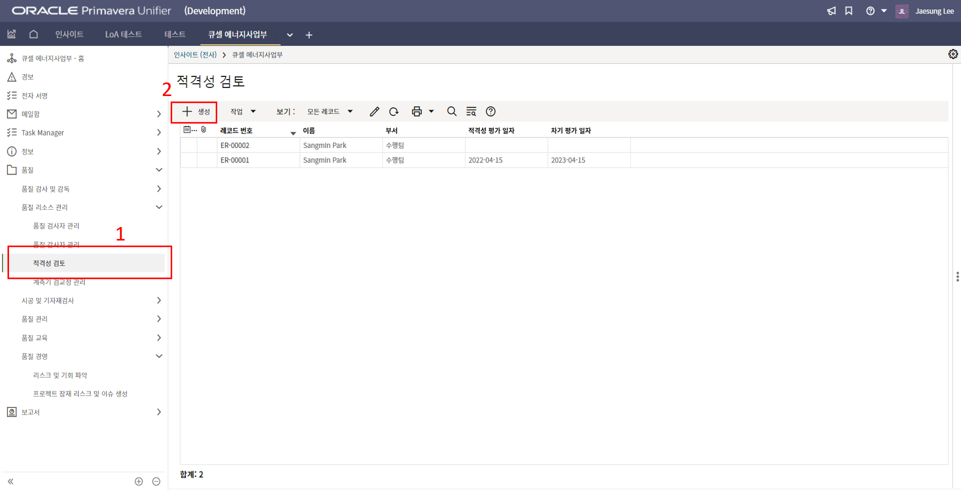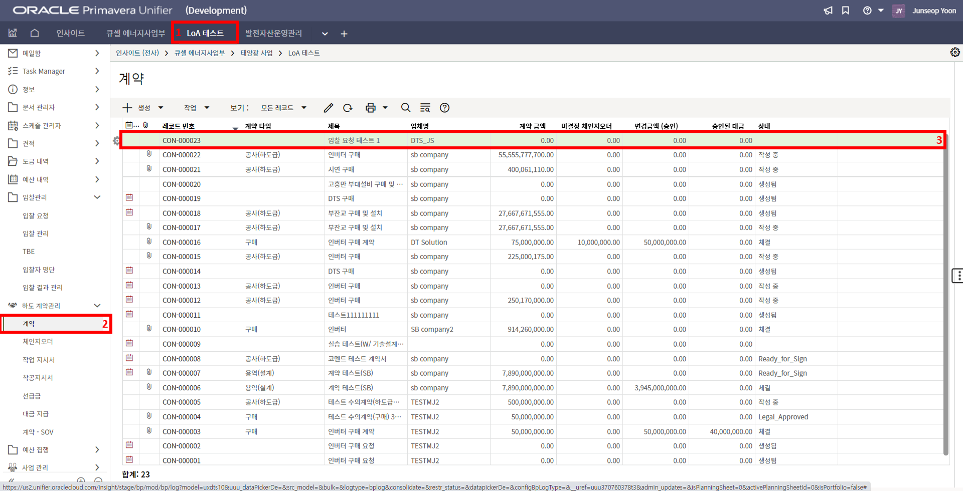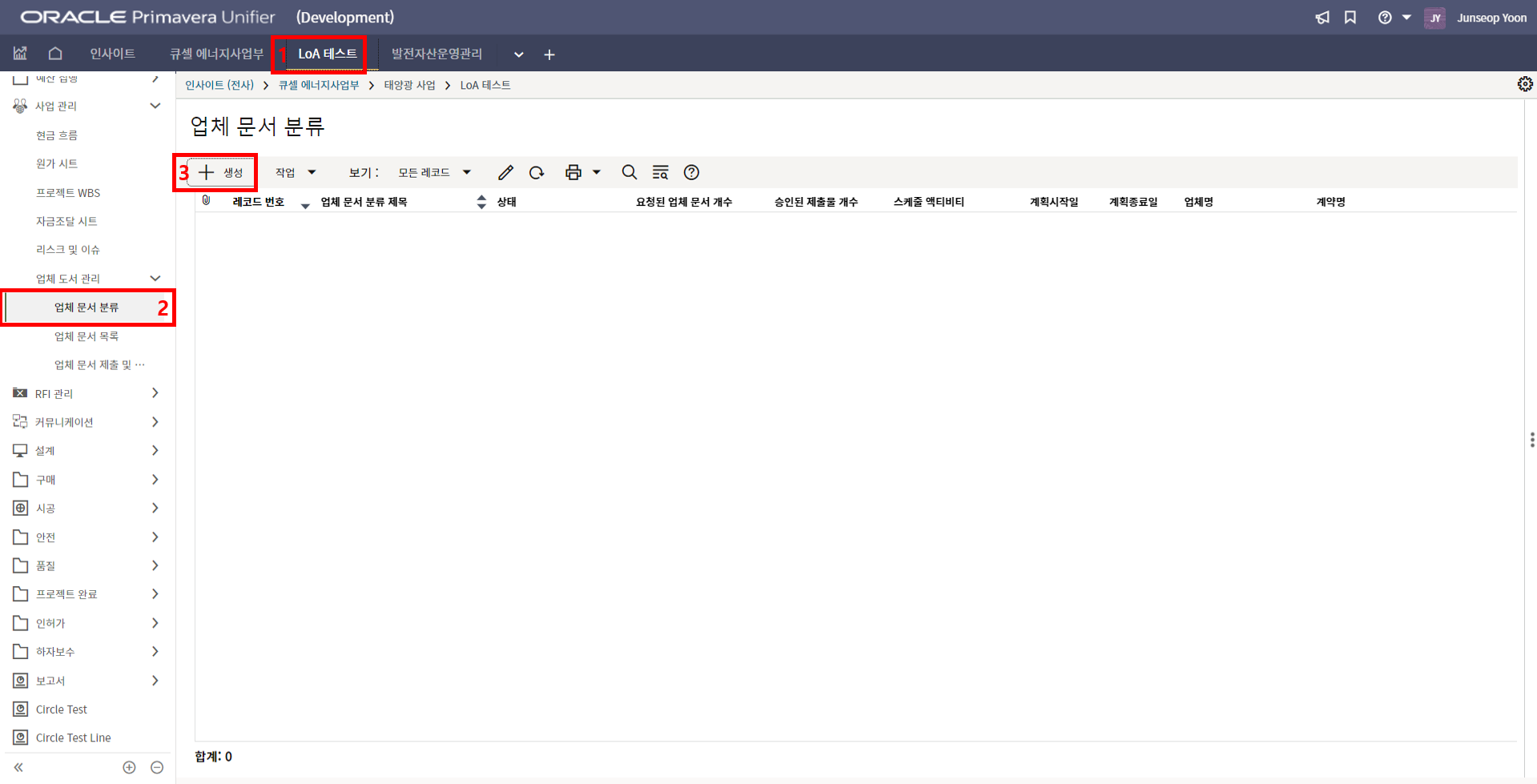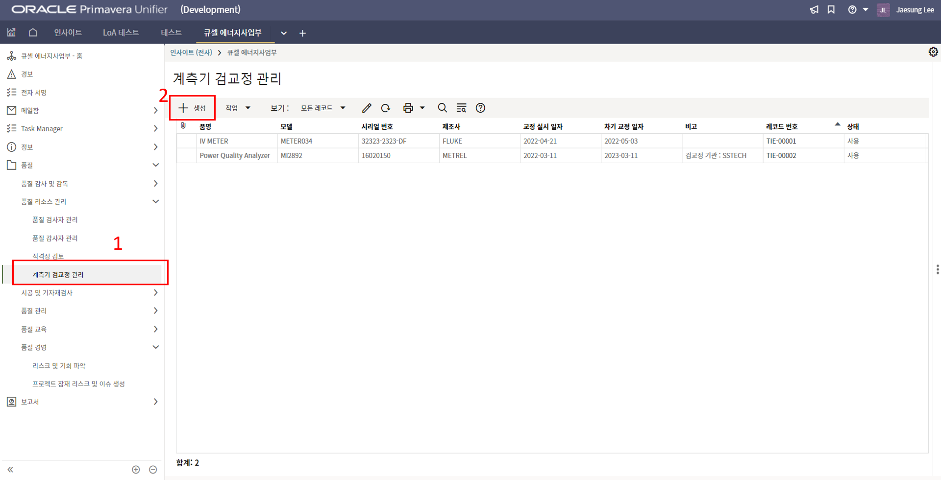 2. '1)해당 프로젝트 > 2)TBE > 3)생성된 레코드'을 클릭합니다.