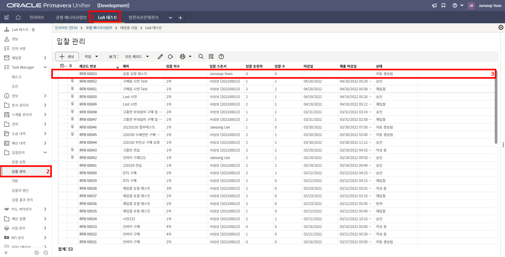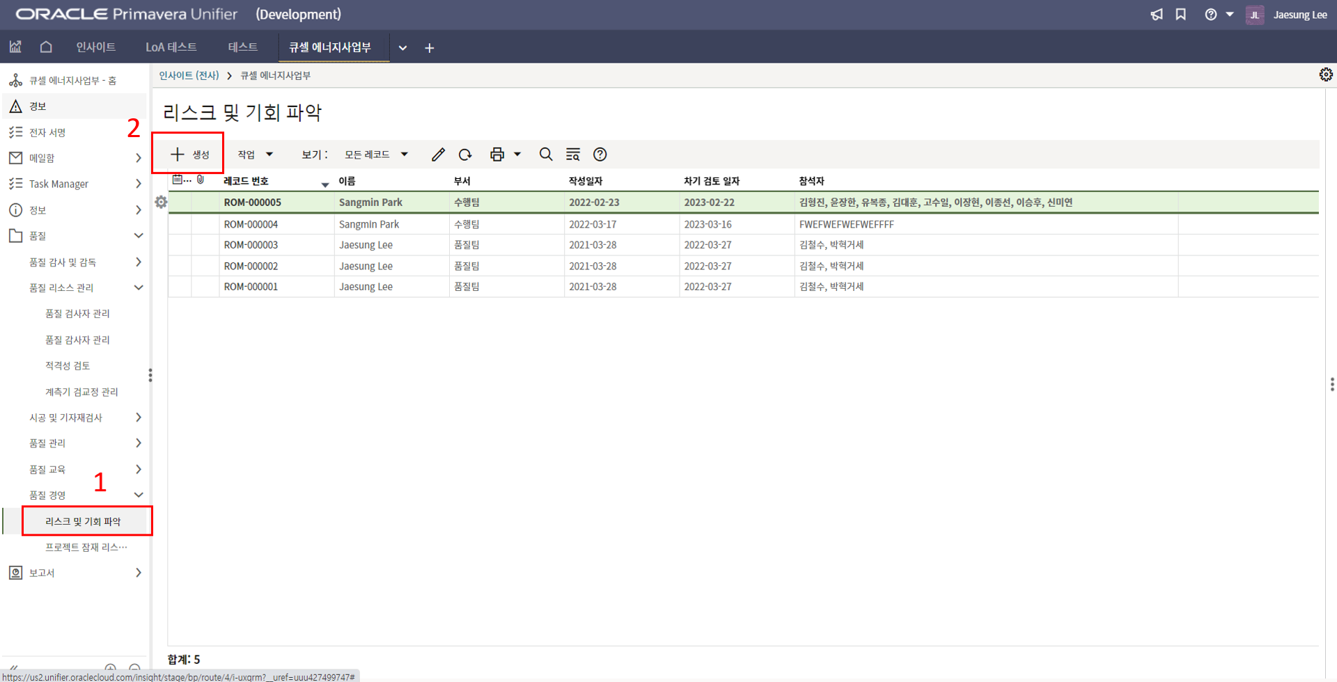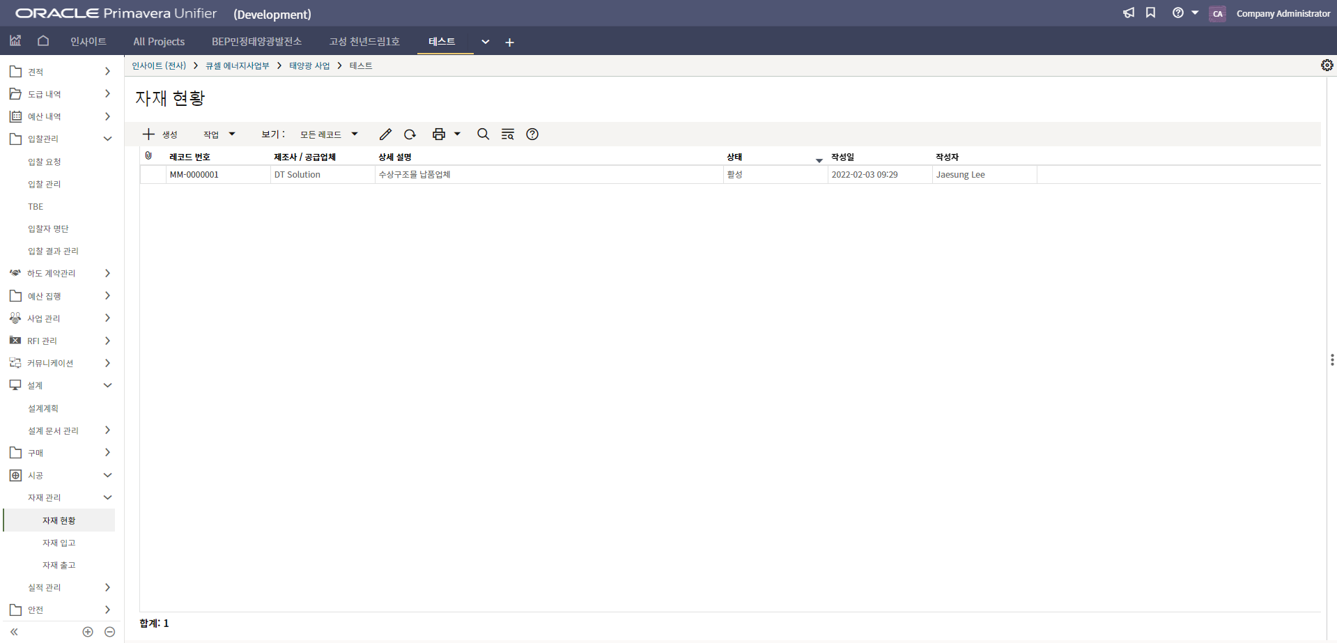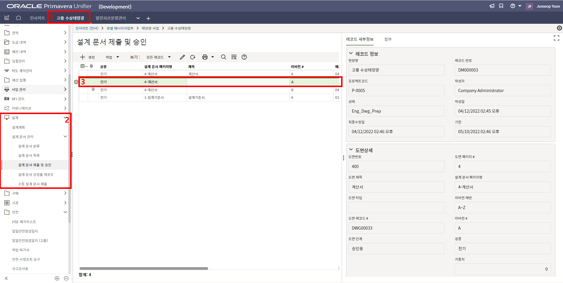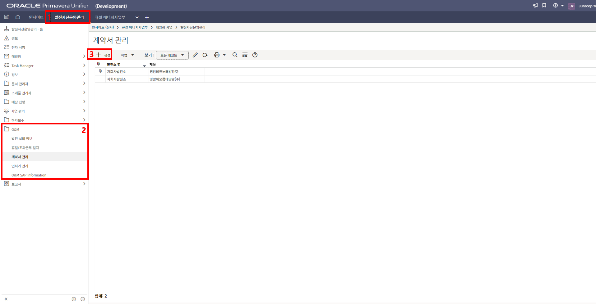 2. '1)해당 프로젝트 > 2)TBE > 3)생성된 레코드'을 클릭합니다.