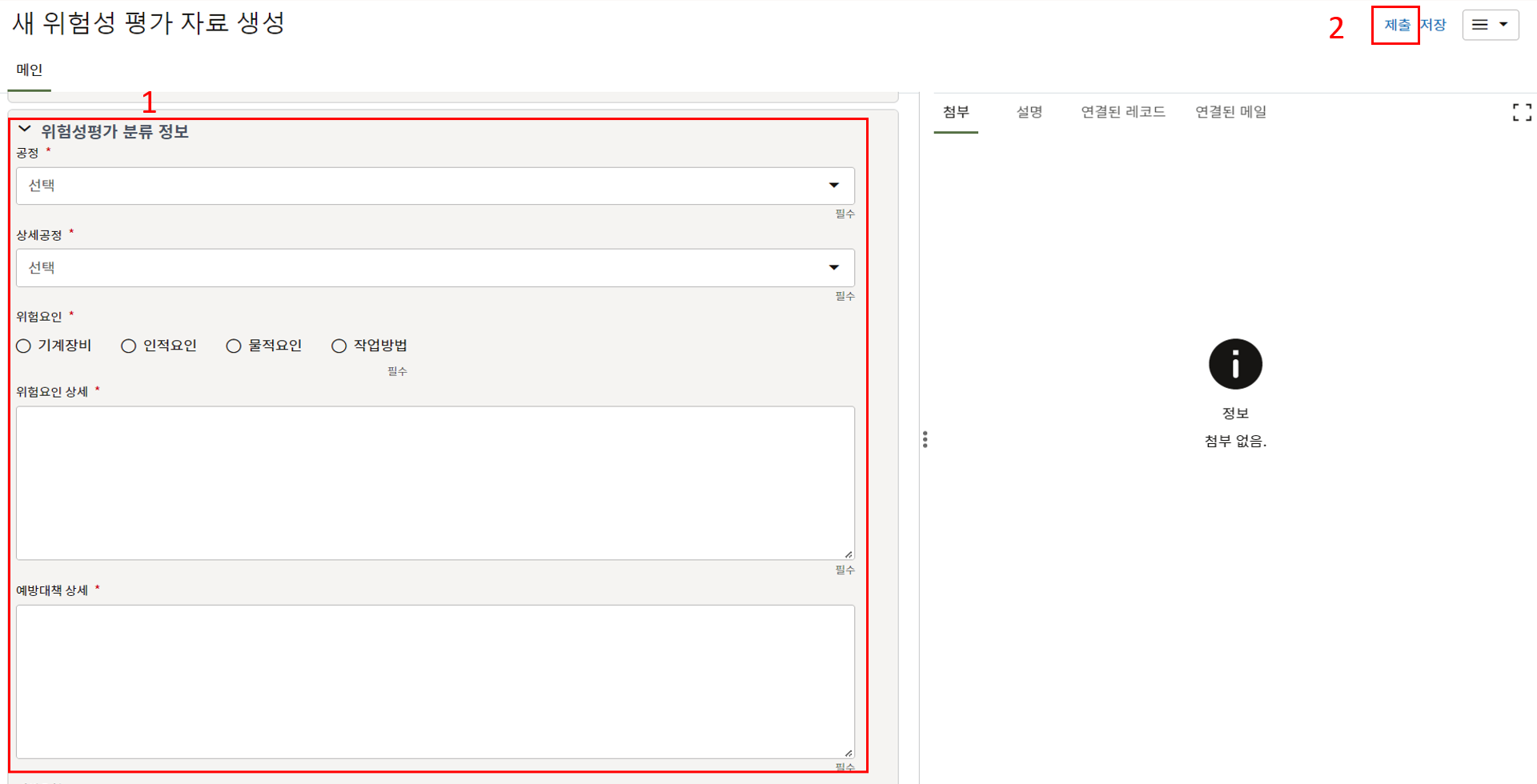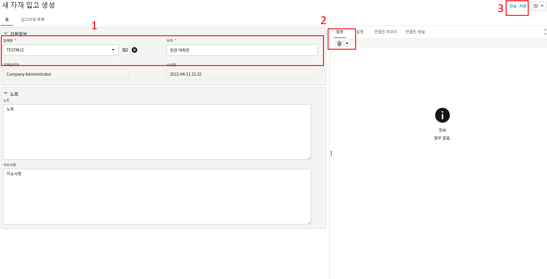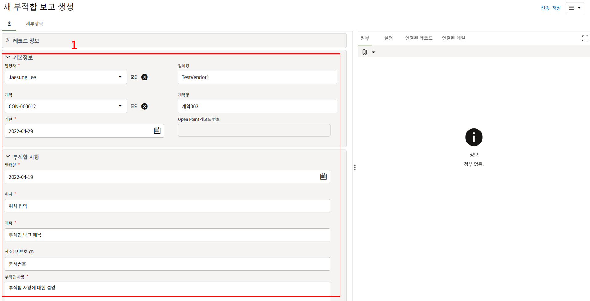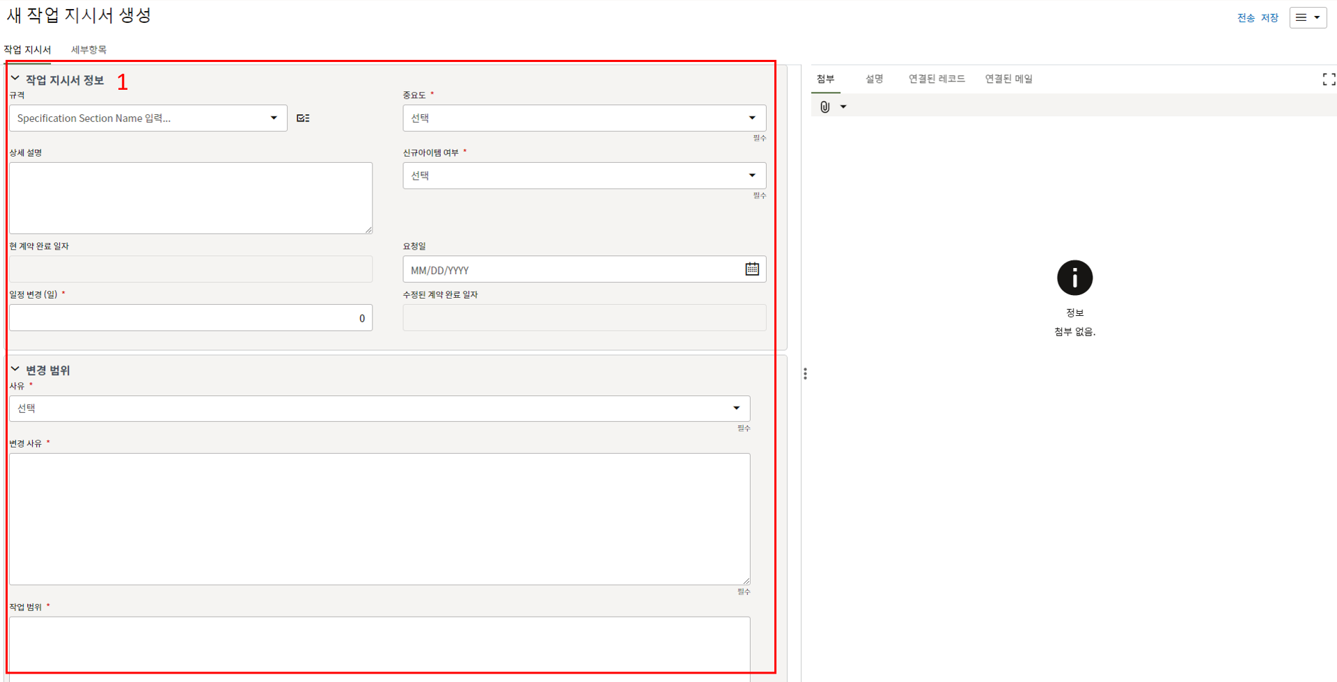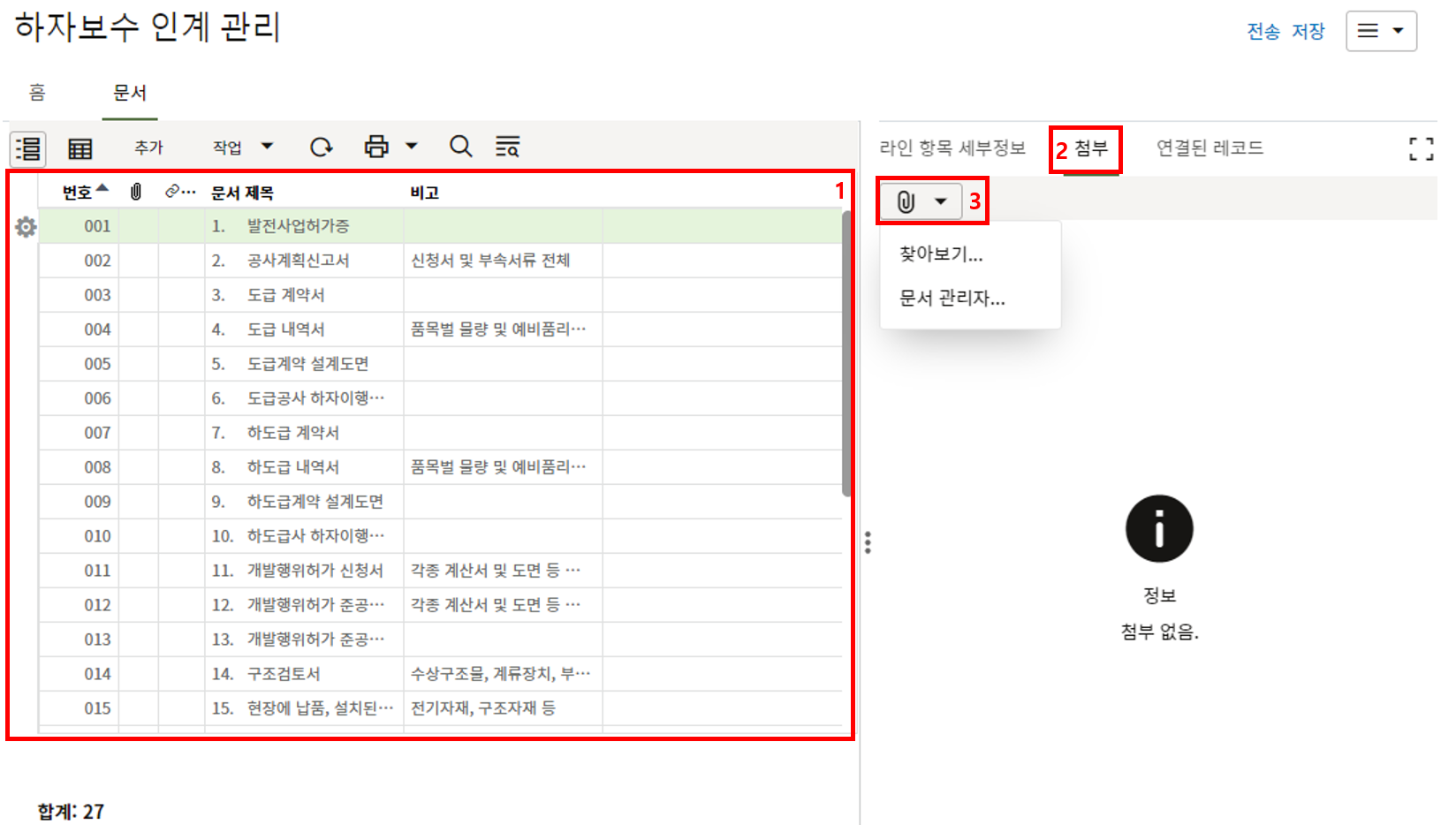 3. 첨부를 통한 추가설명이 필요한 경우 사진을 생성 후 첨부 탭에서 첨부파일을 등록합니다.