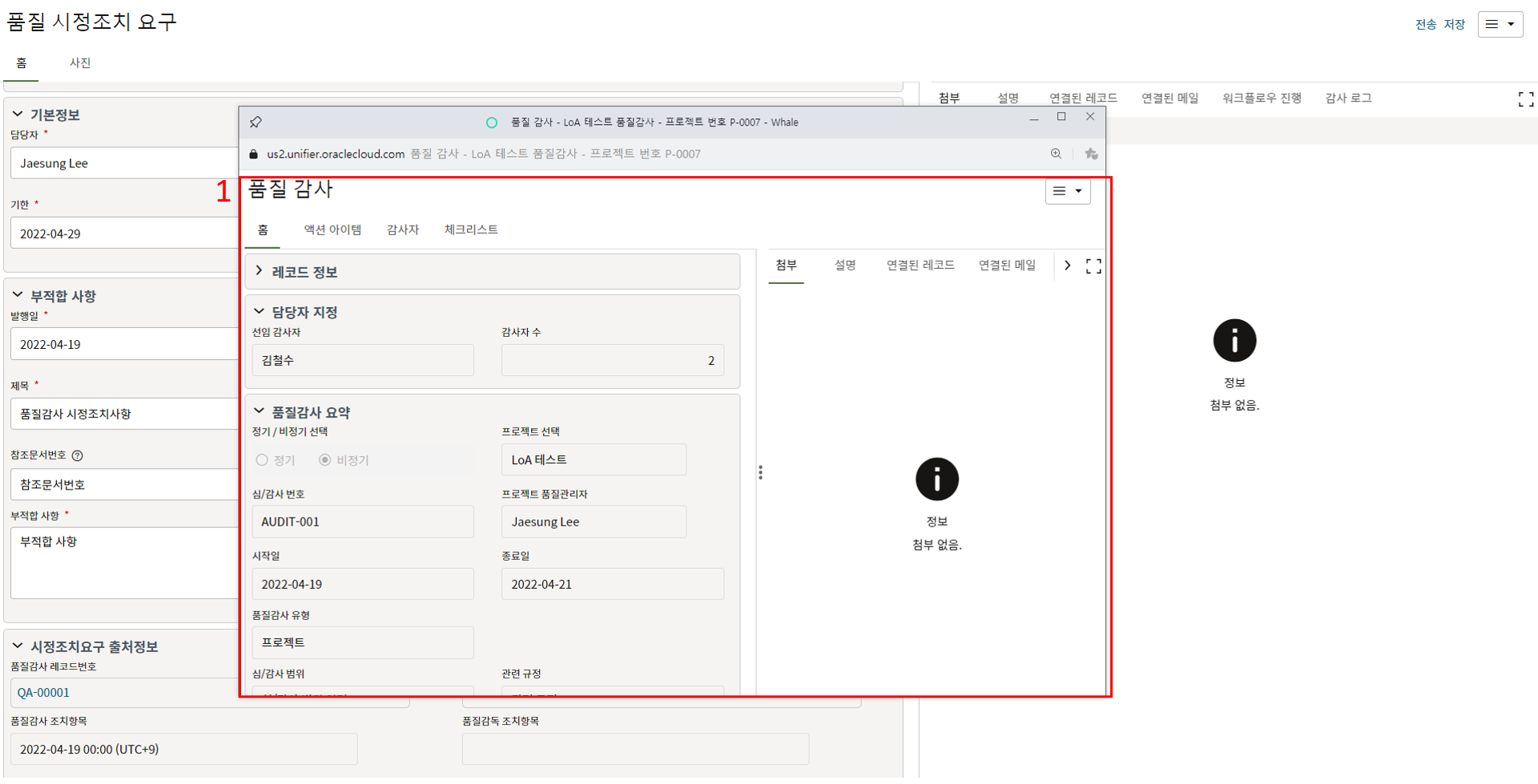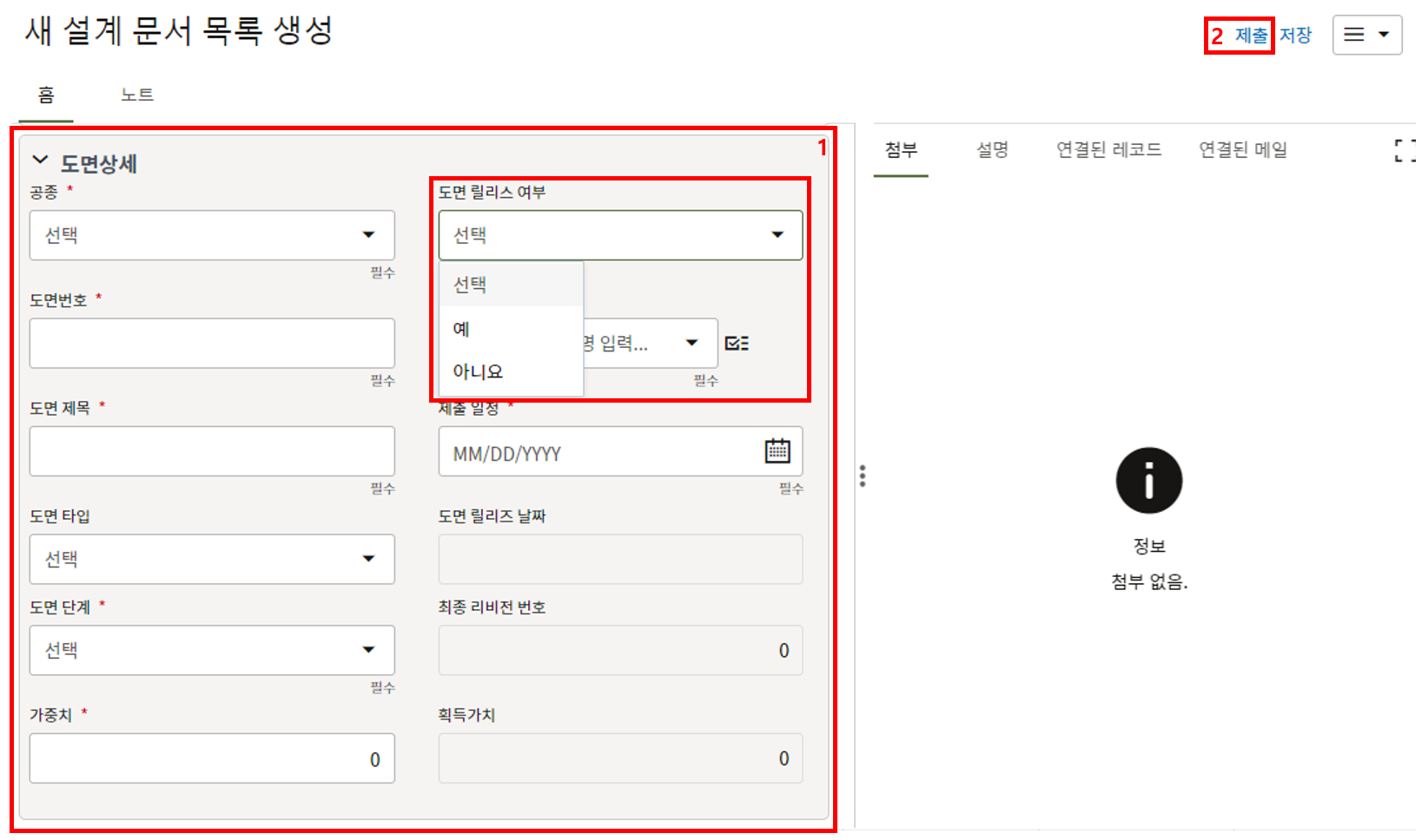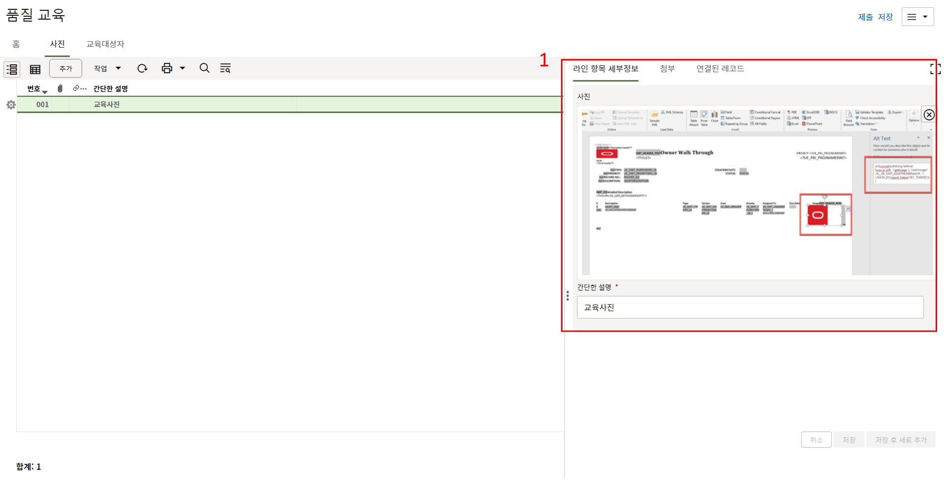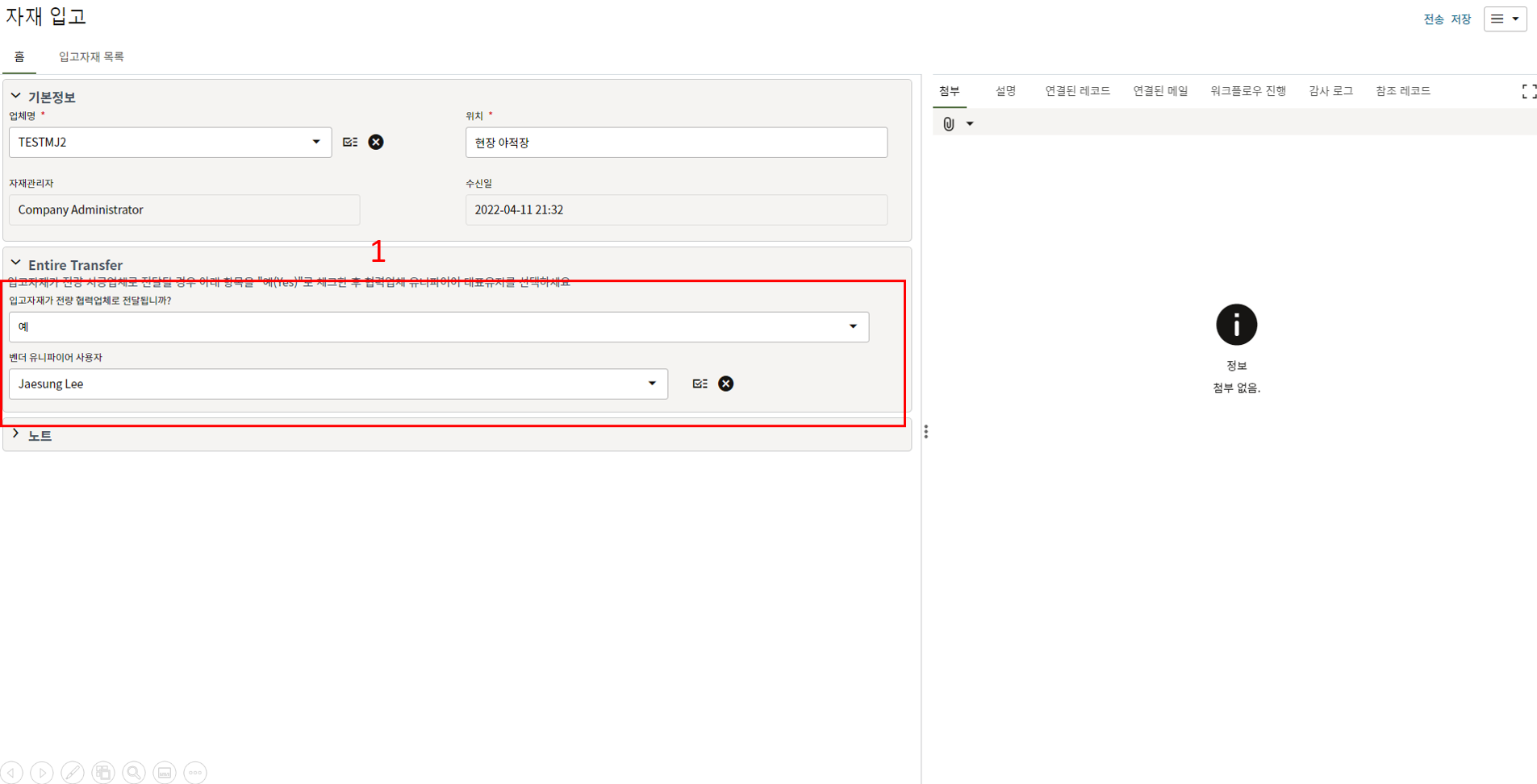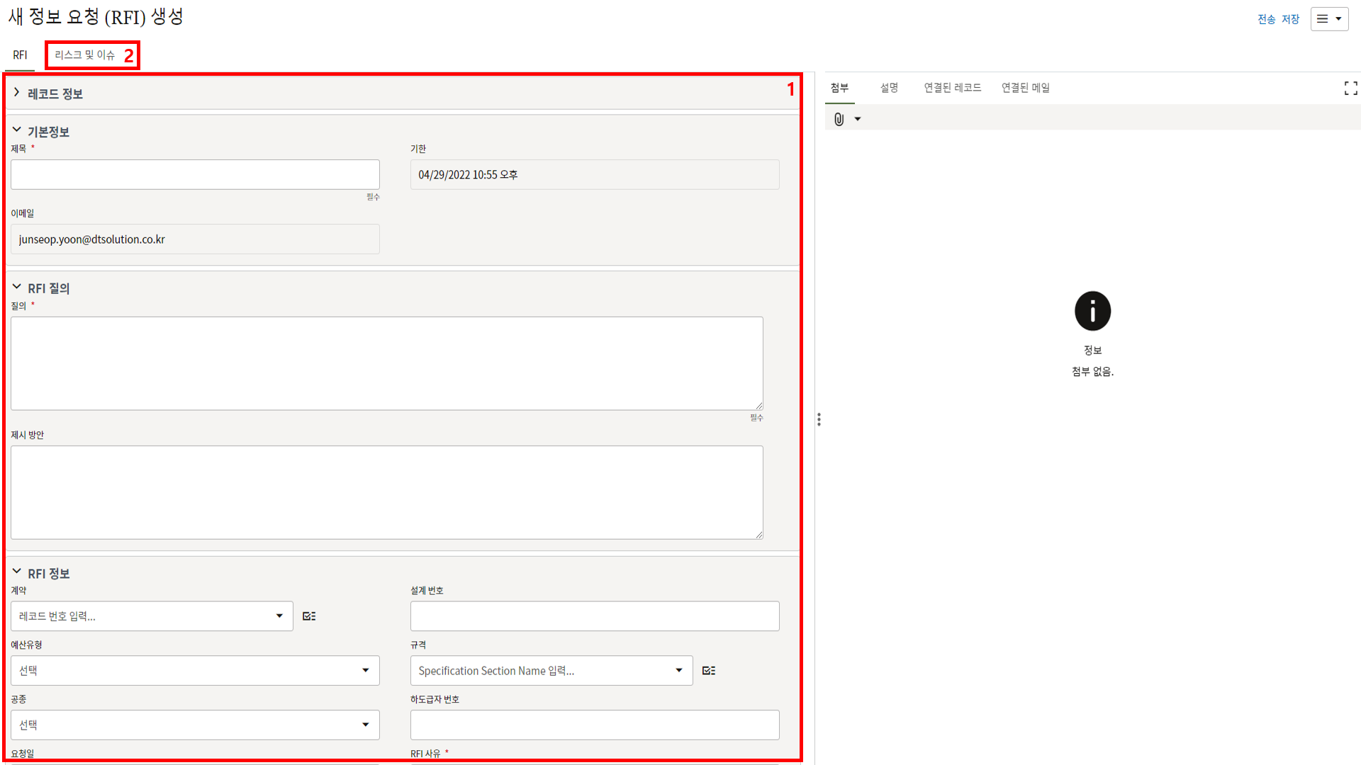 3. 첨부를 통한 추가설명이 필요한 경우 사진을 생성 후 첨부 탭에서 첨부파일을 등록합니다.