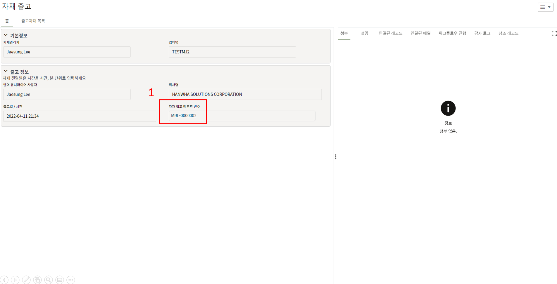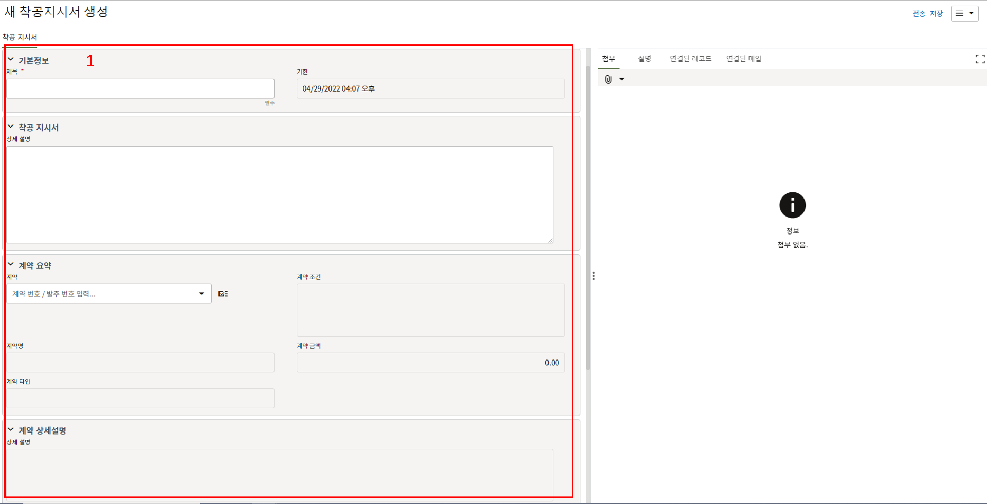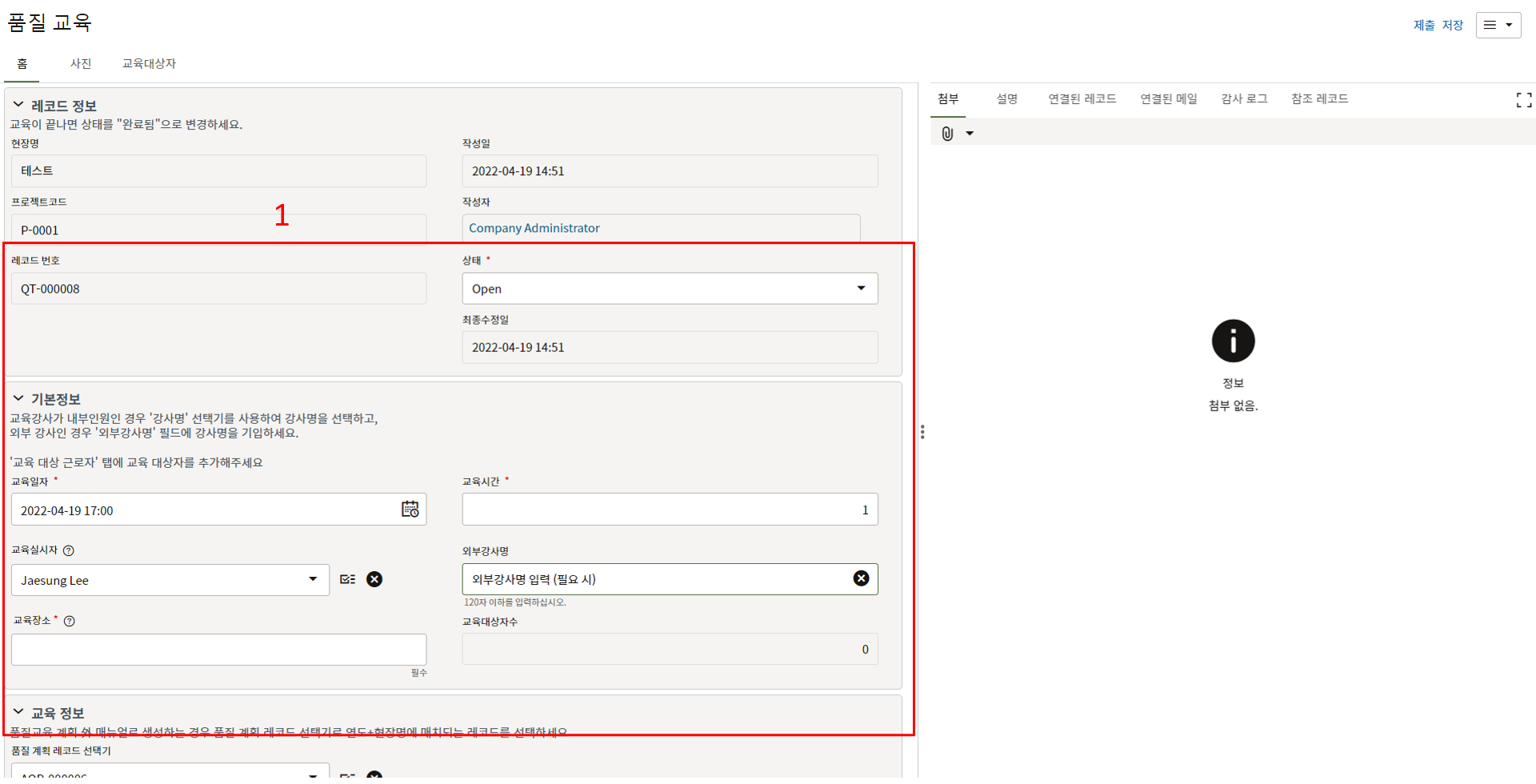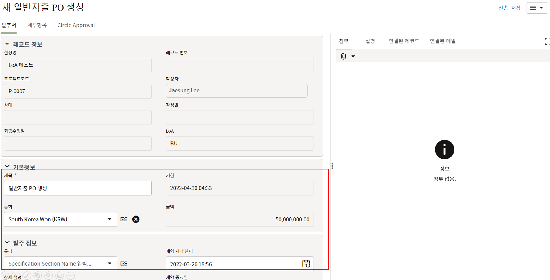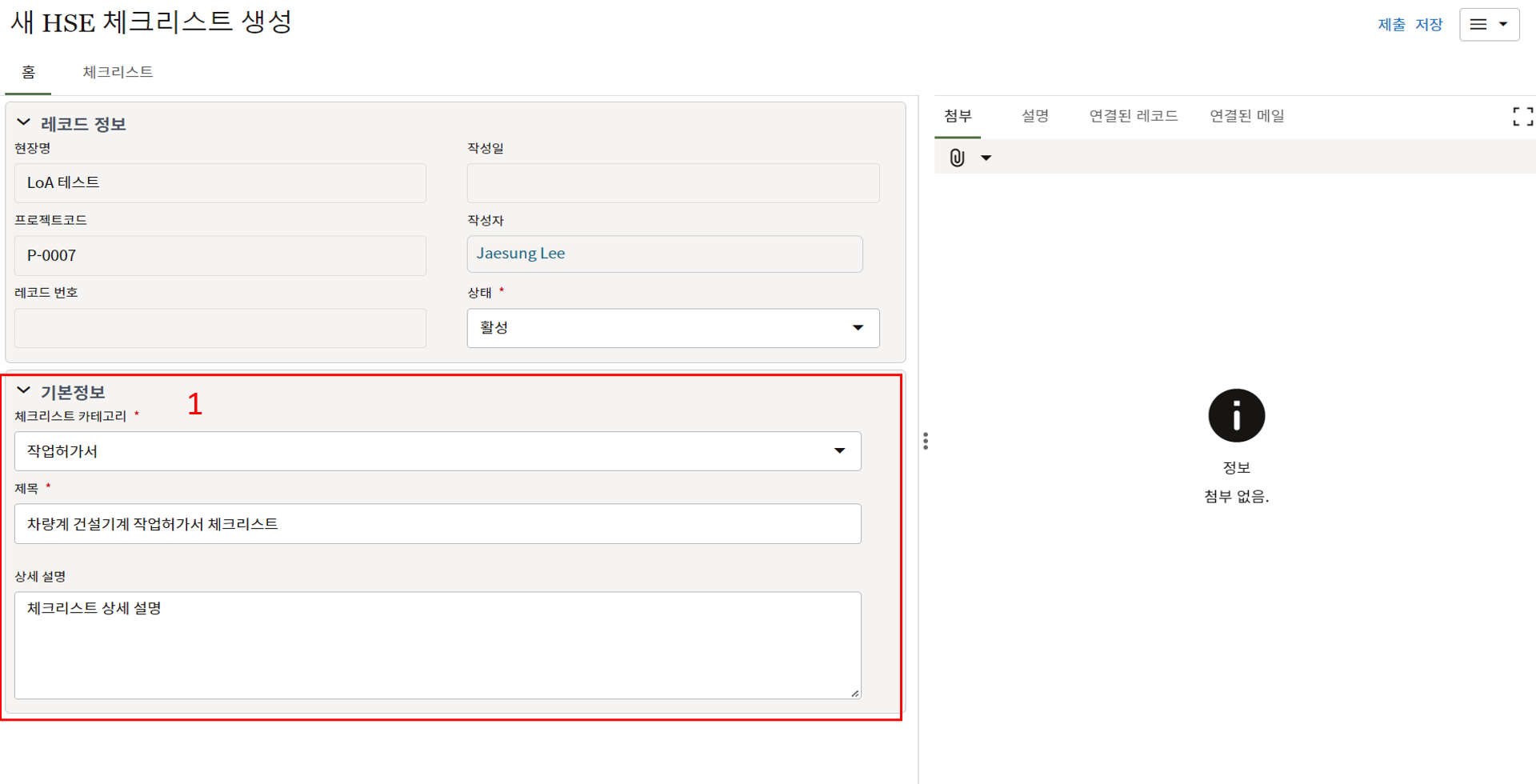 3. 첨부를 통한 추가설명이 필요한 경우 사진을 생성 후 첨부 탭에서 첨부파일을 등록합니다.
