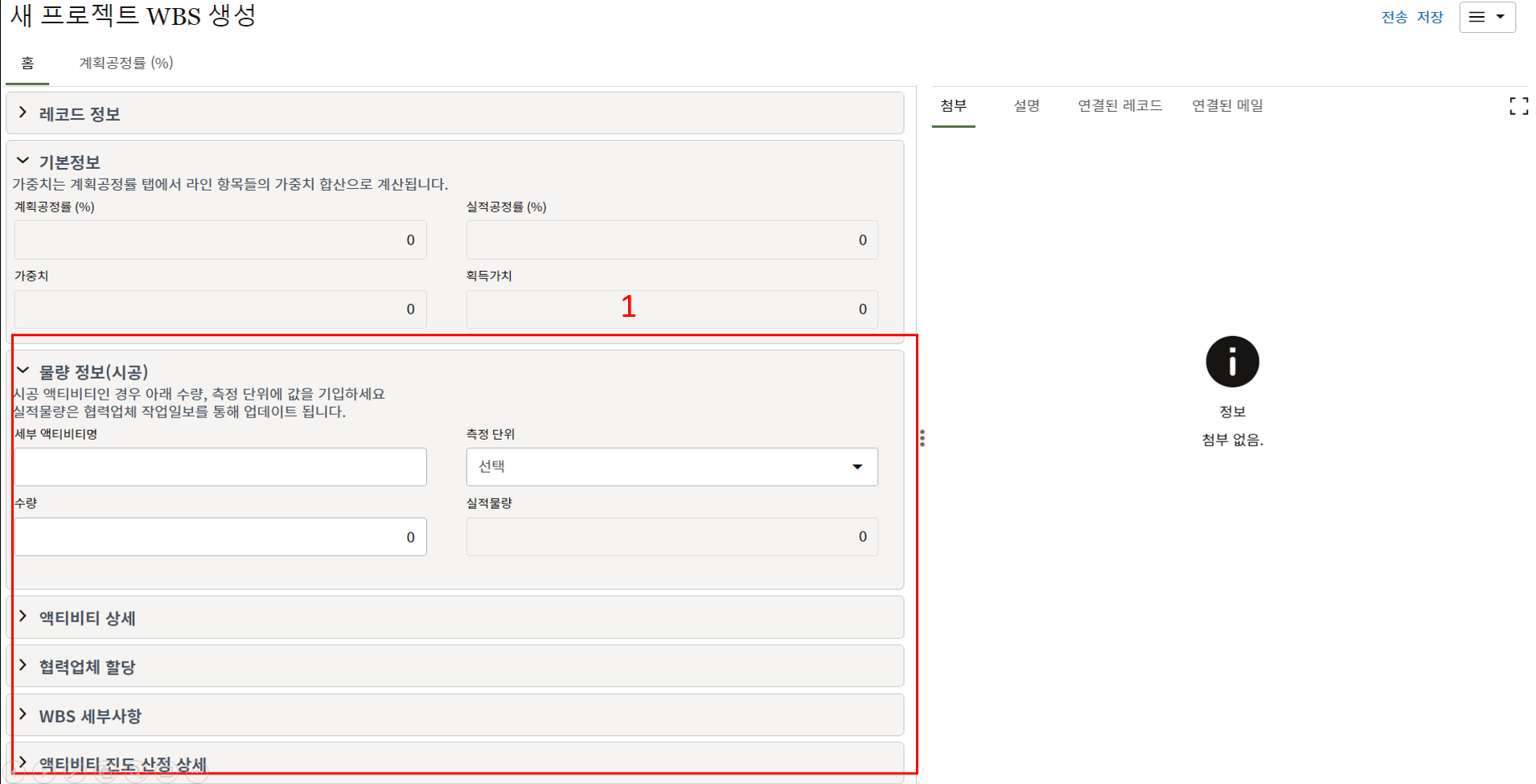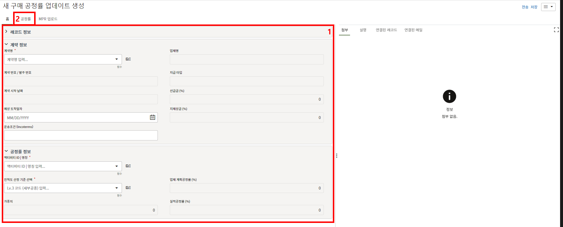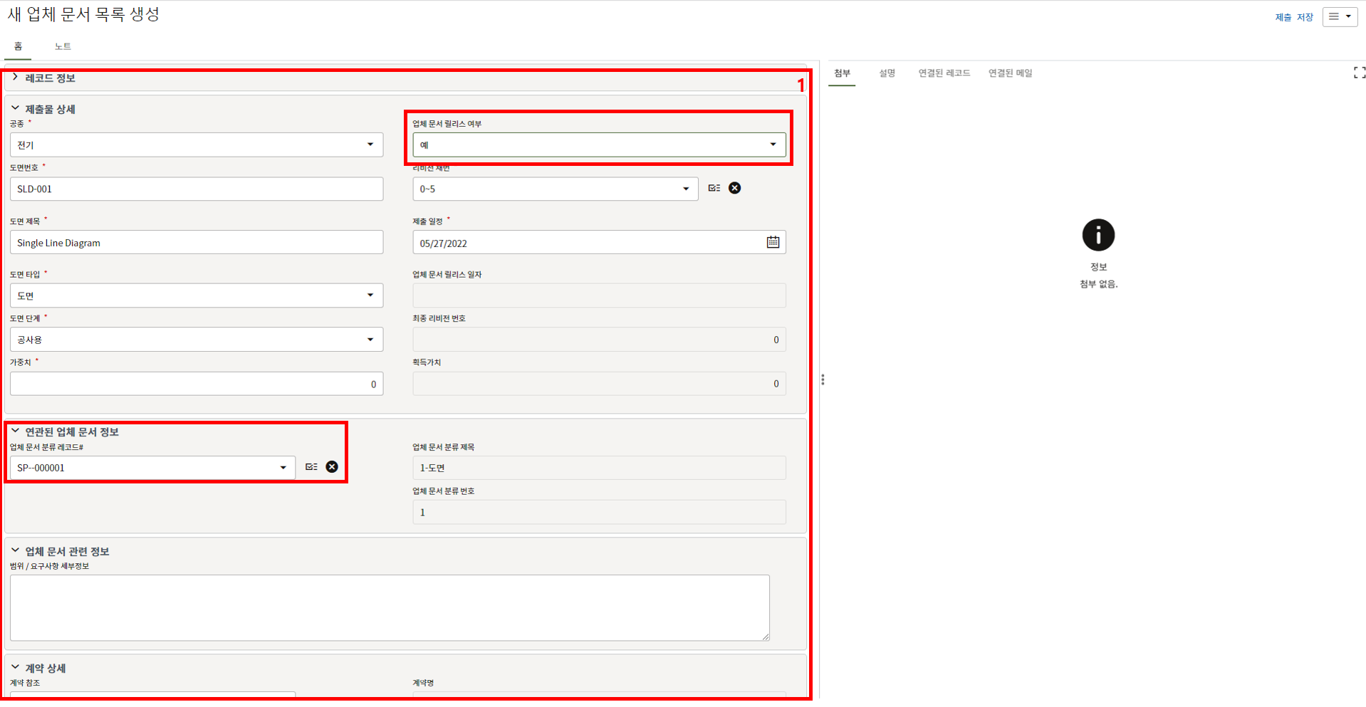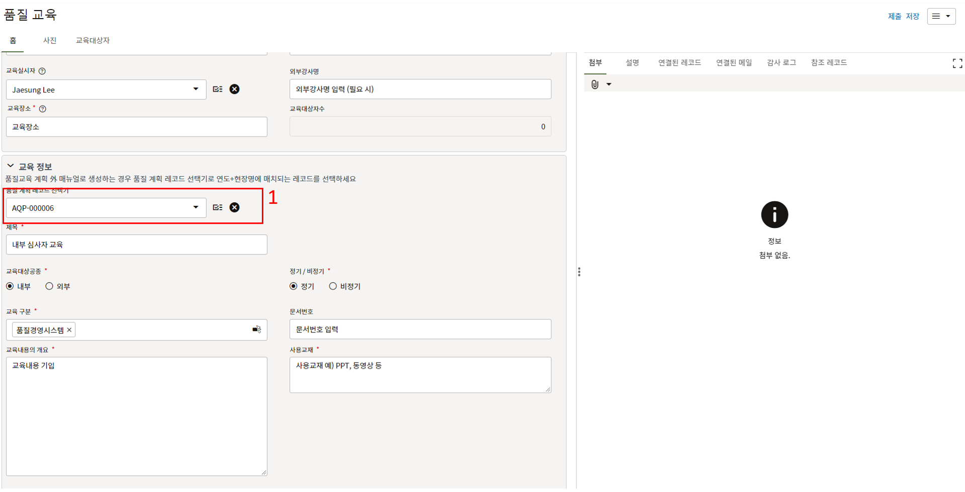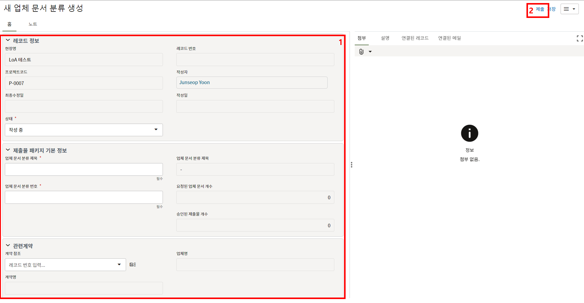 3. 첨부를 통한 추가설명이 필요한 경우 사진을 생성 후 첨부 탭에서 첨부파일을 등록합니다.