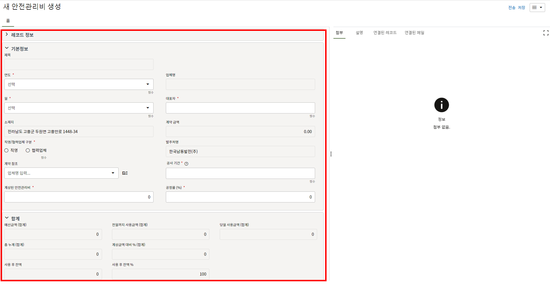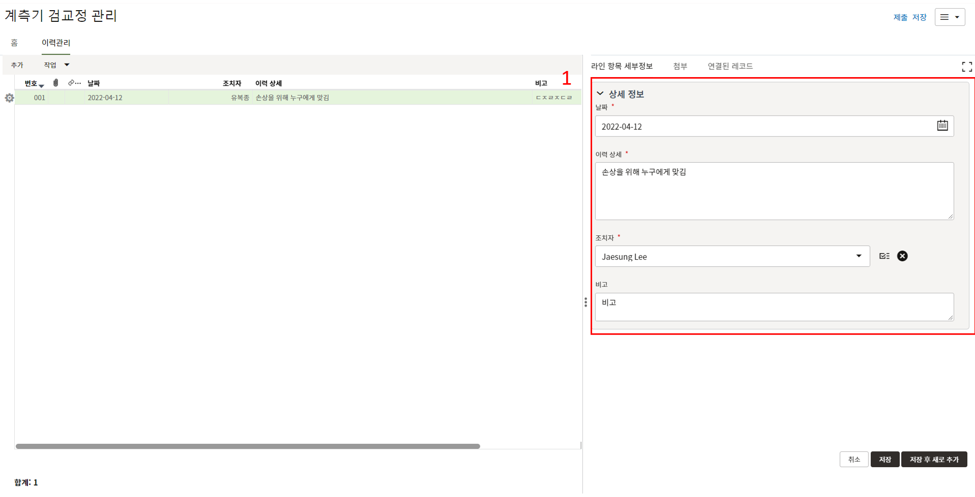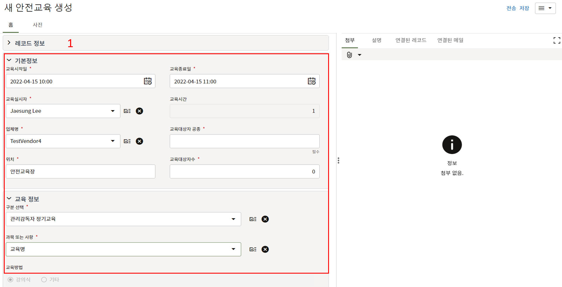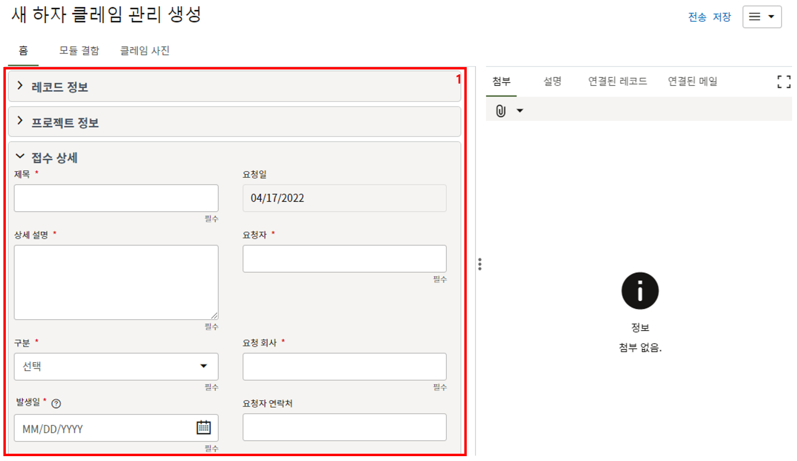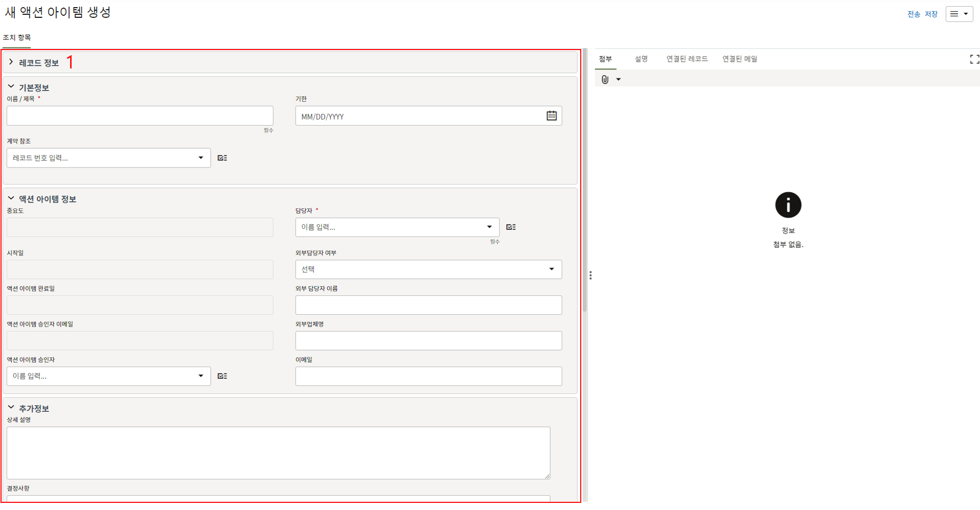 레코드에 필요한 정보를 입력할 수 있습니다.