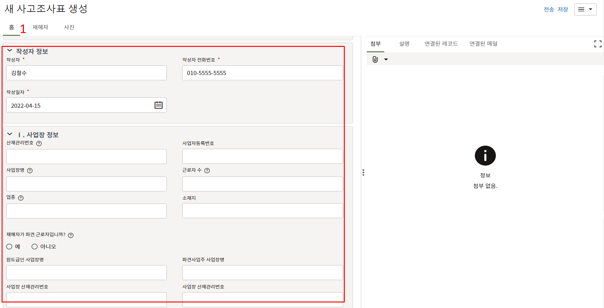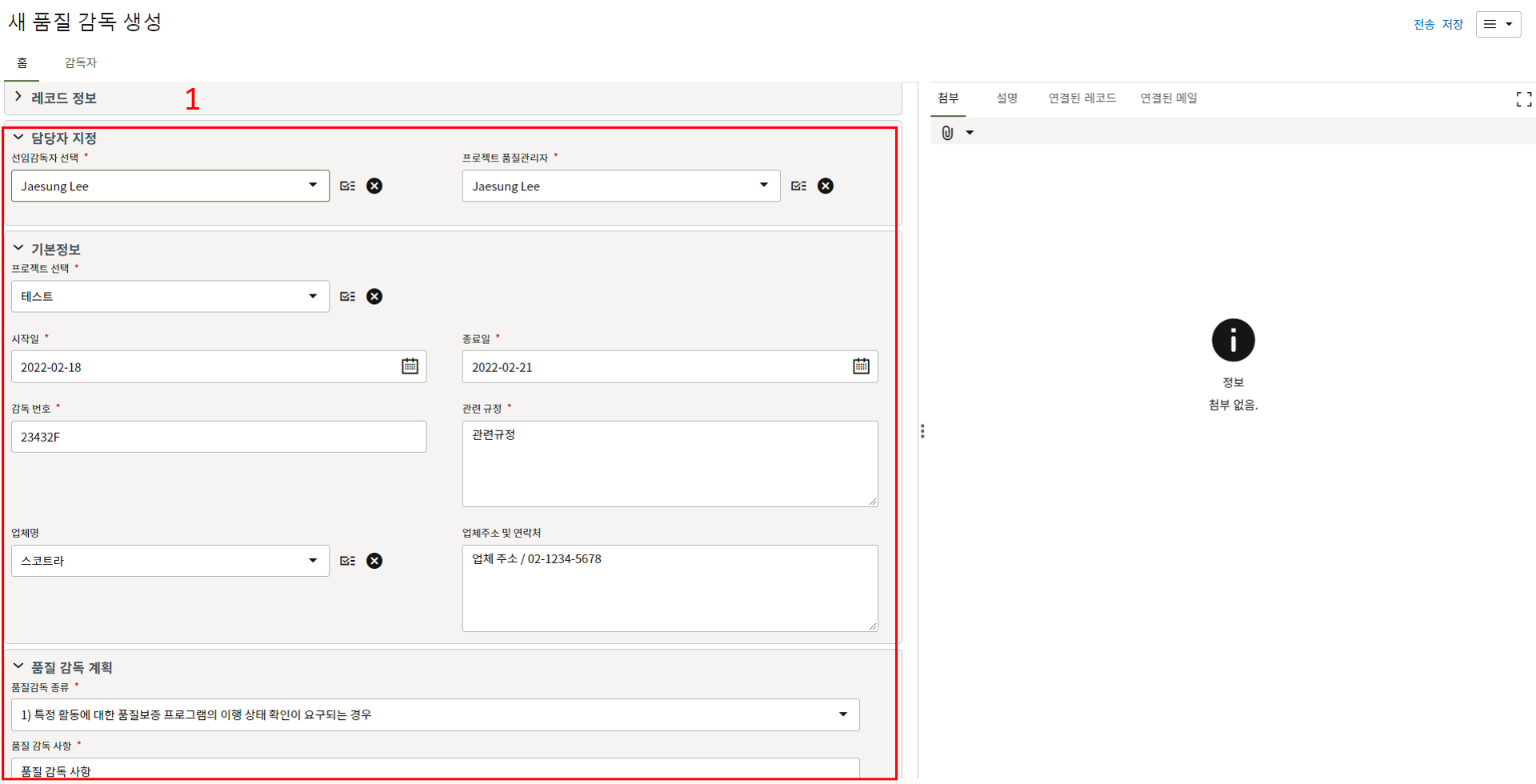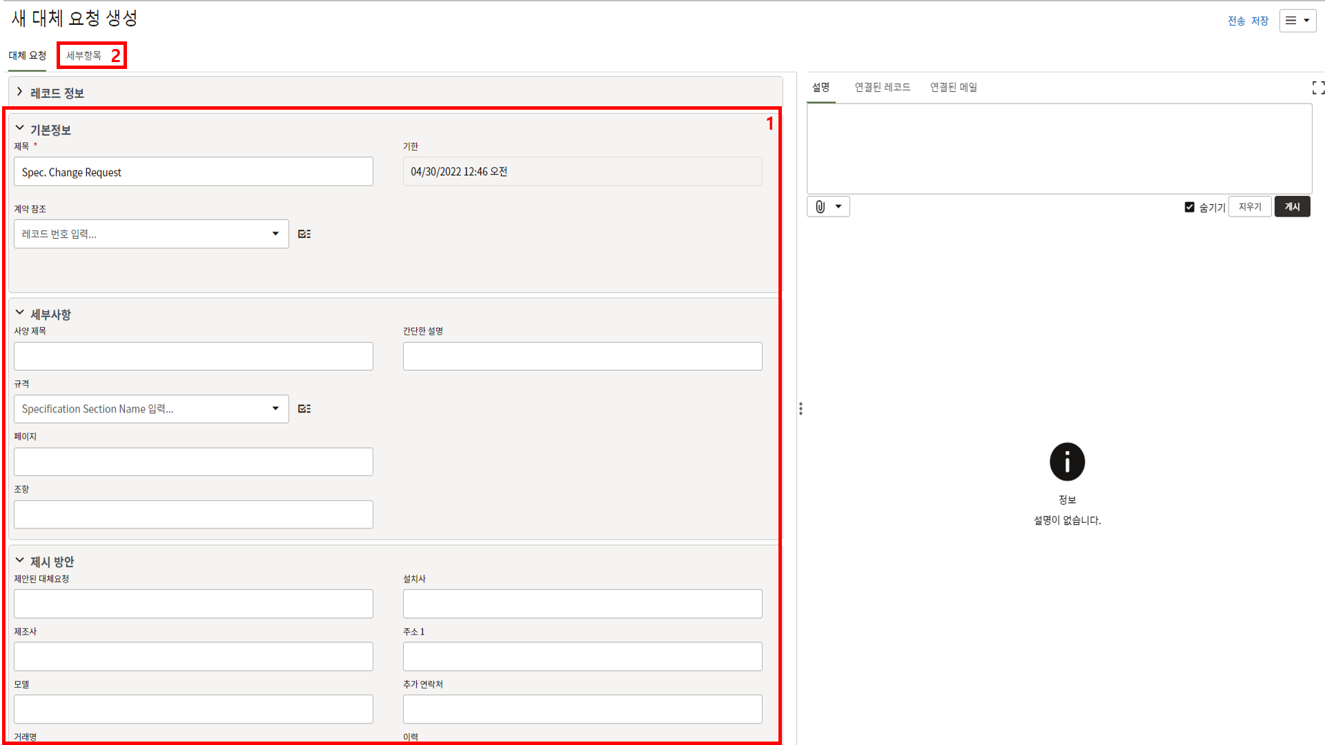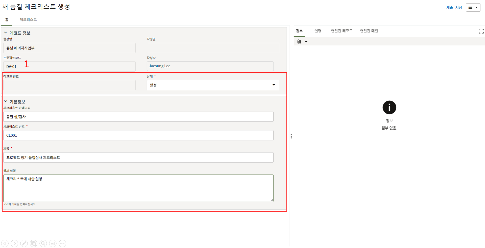 레코드에 필요한 정보를 입력할 수 있습니다.
