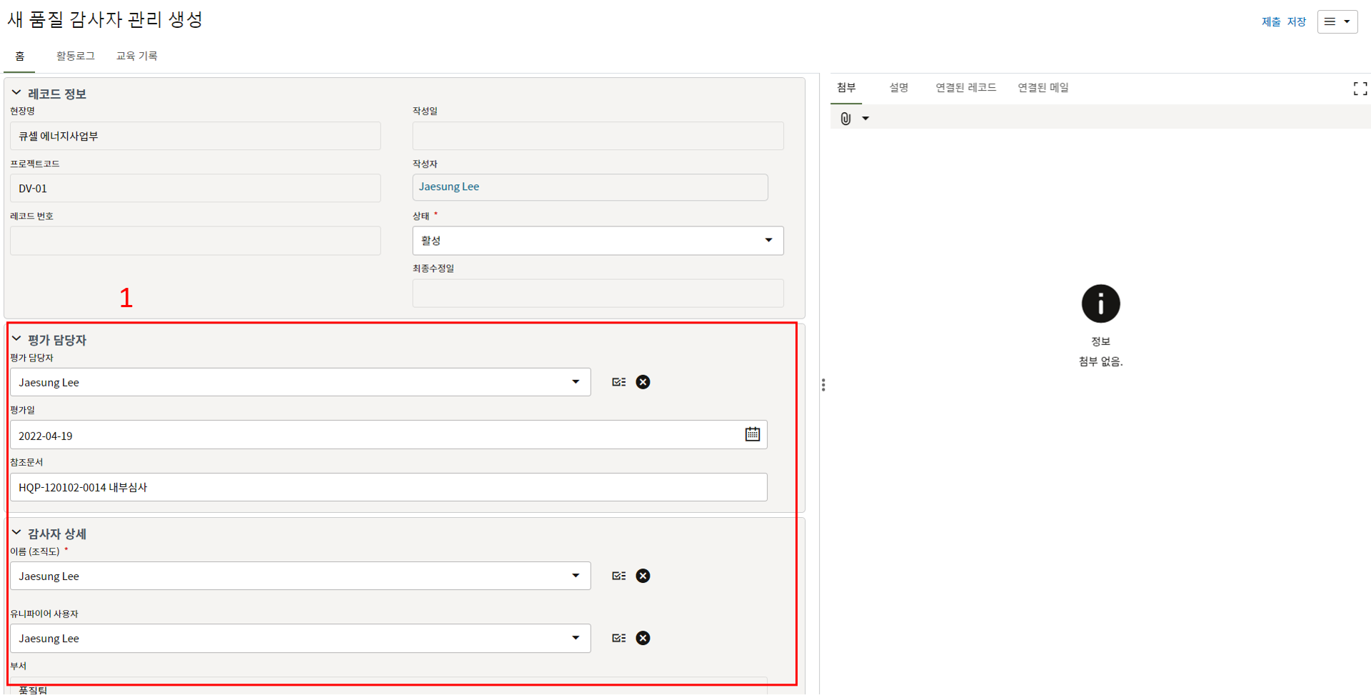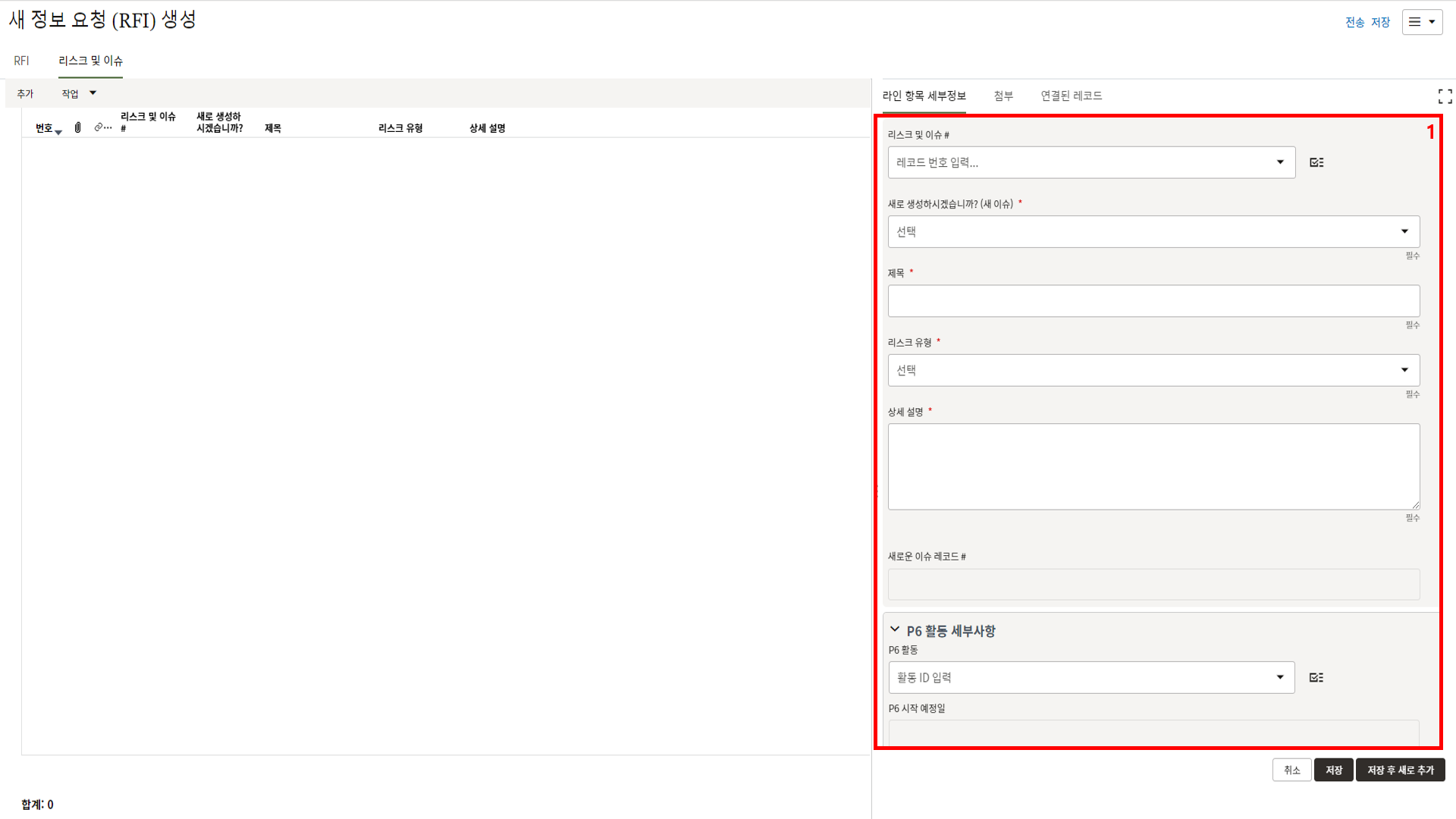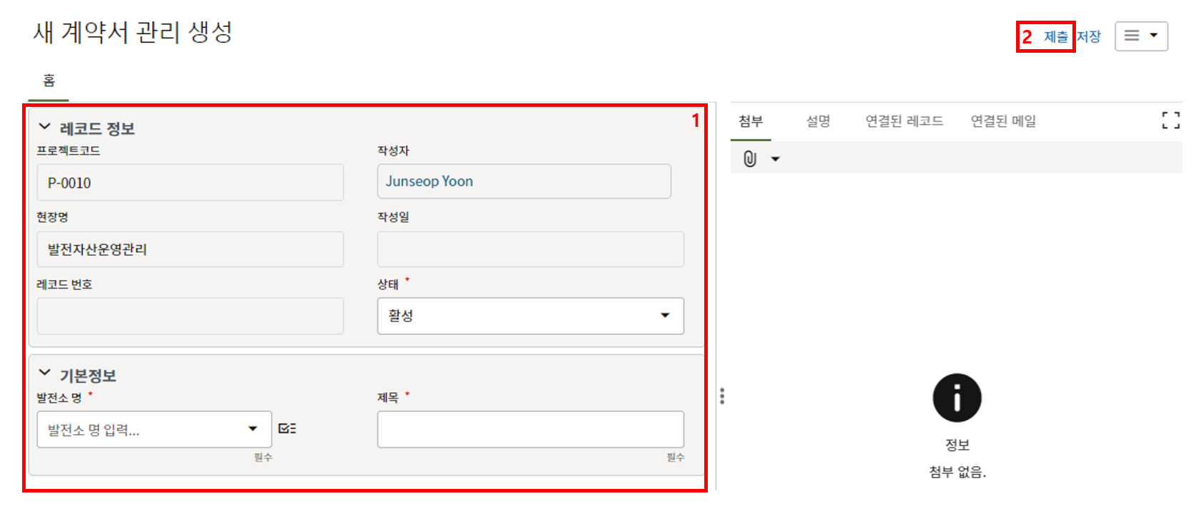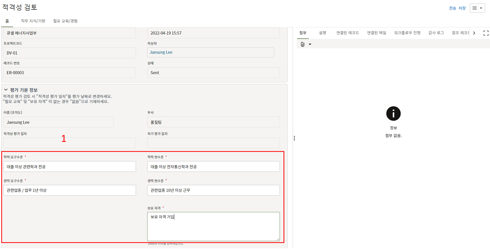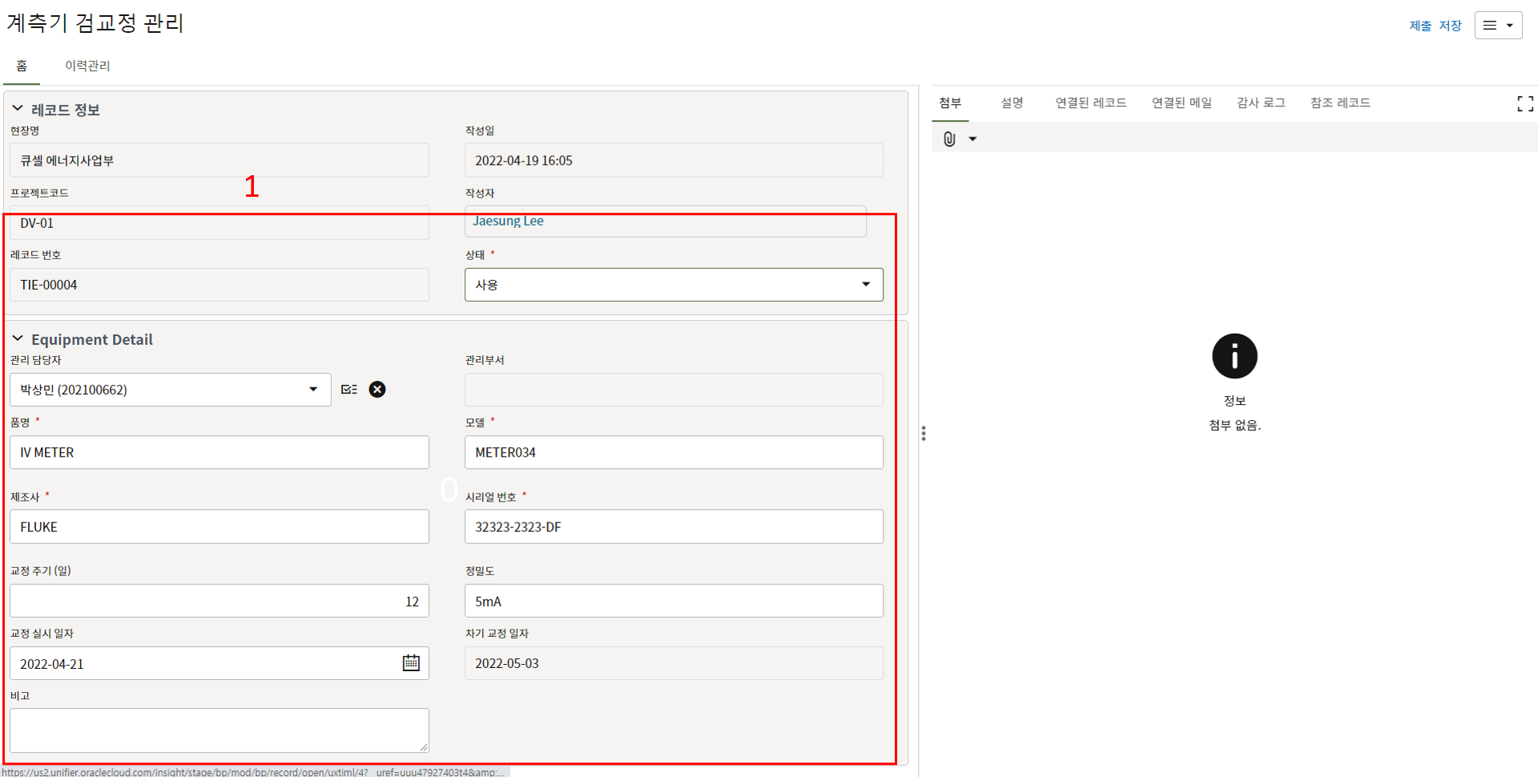 레코드에 필요한 정보를 입력할 수 있습니다.