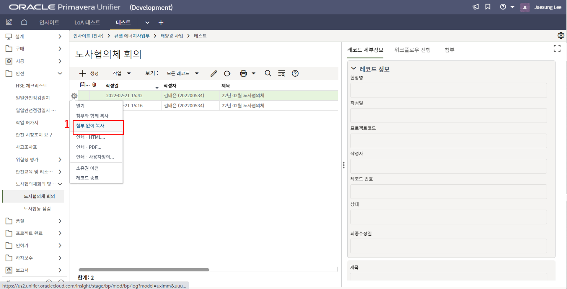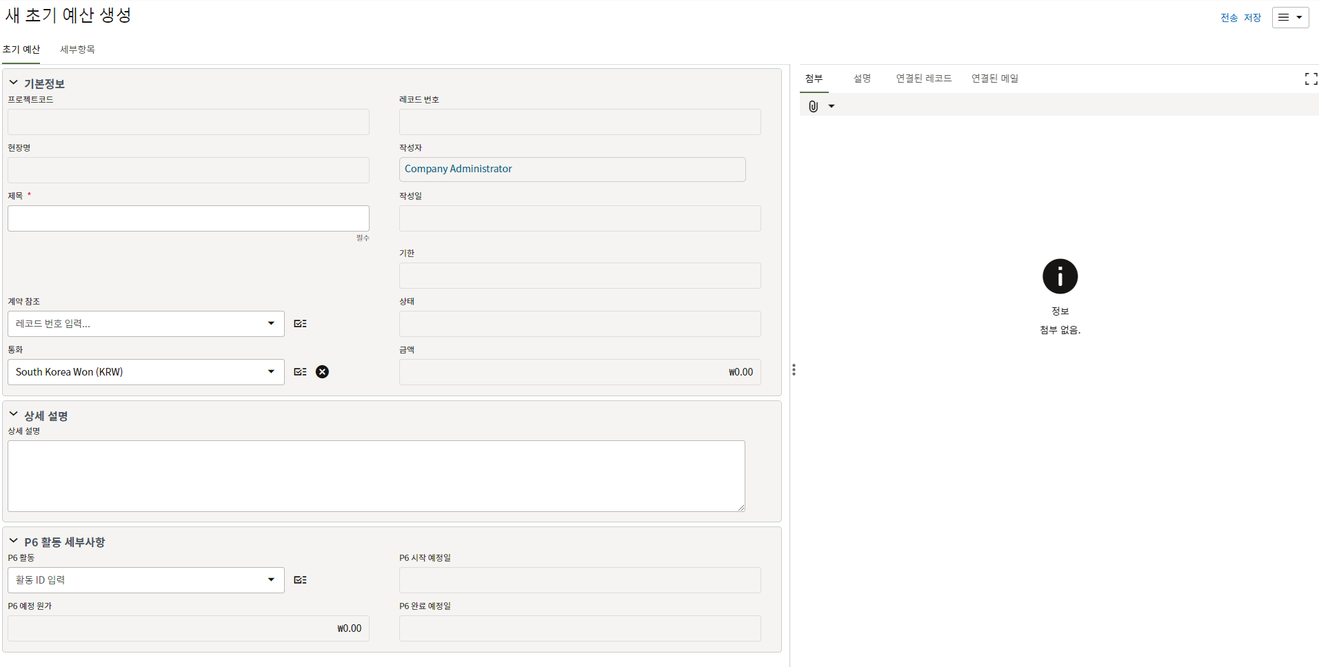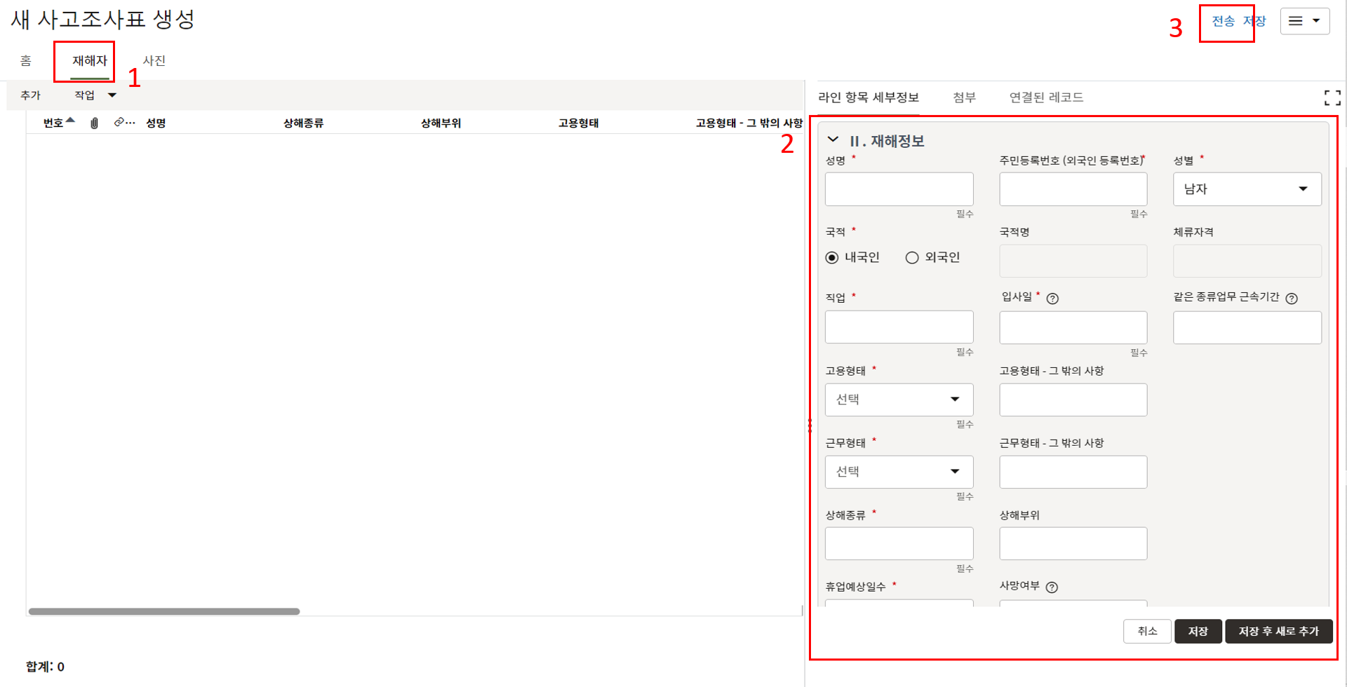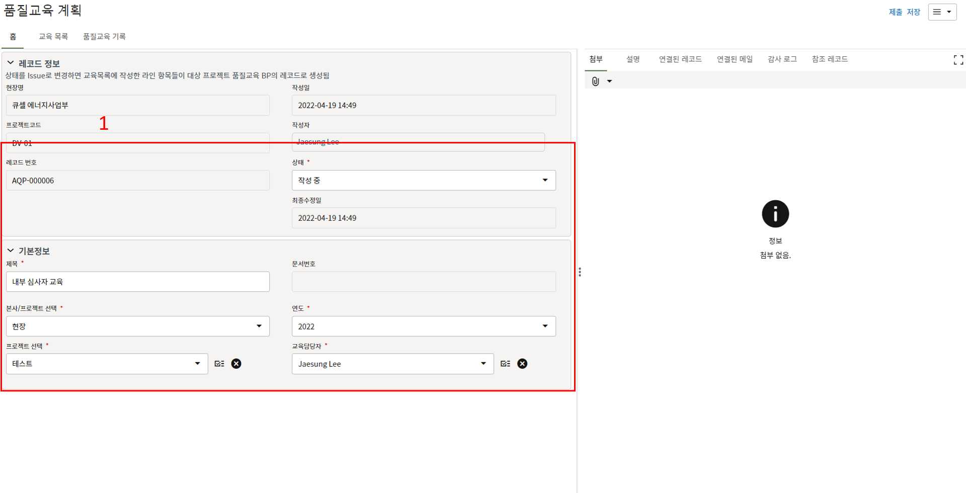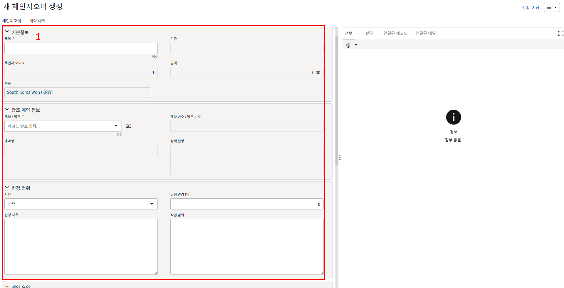 레코드에 필요한 정보를 입력할 수 있습니다.