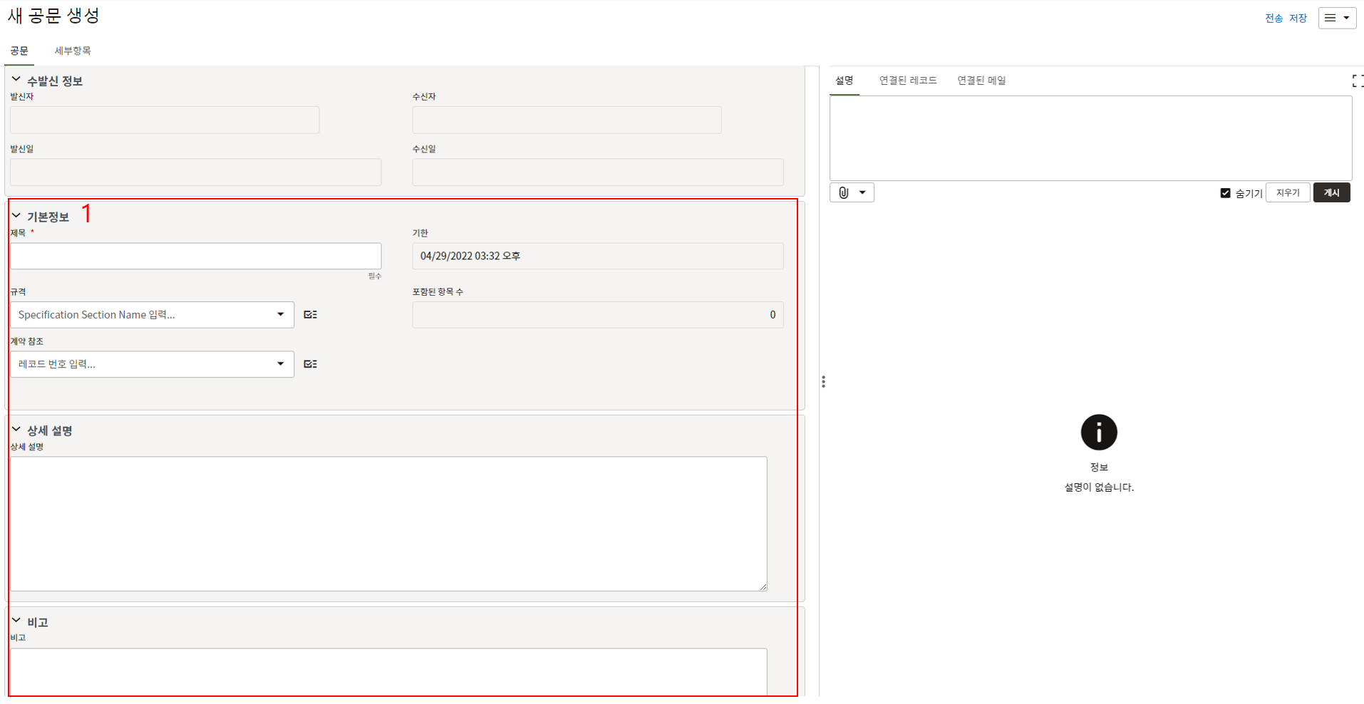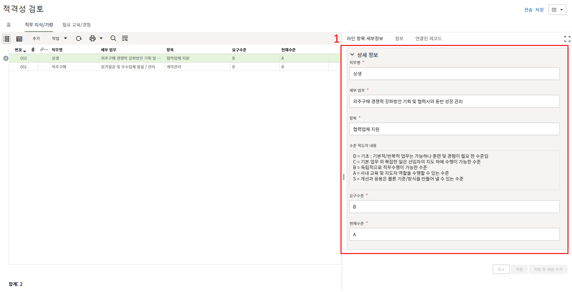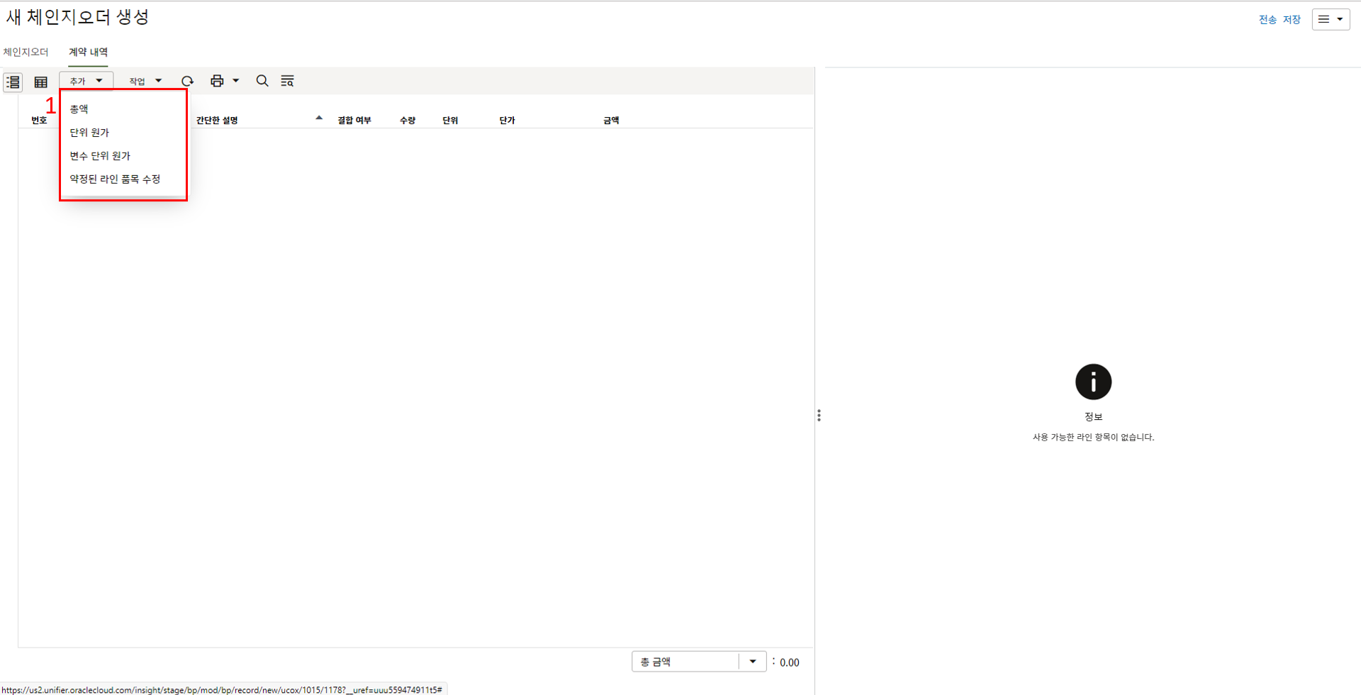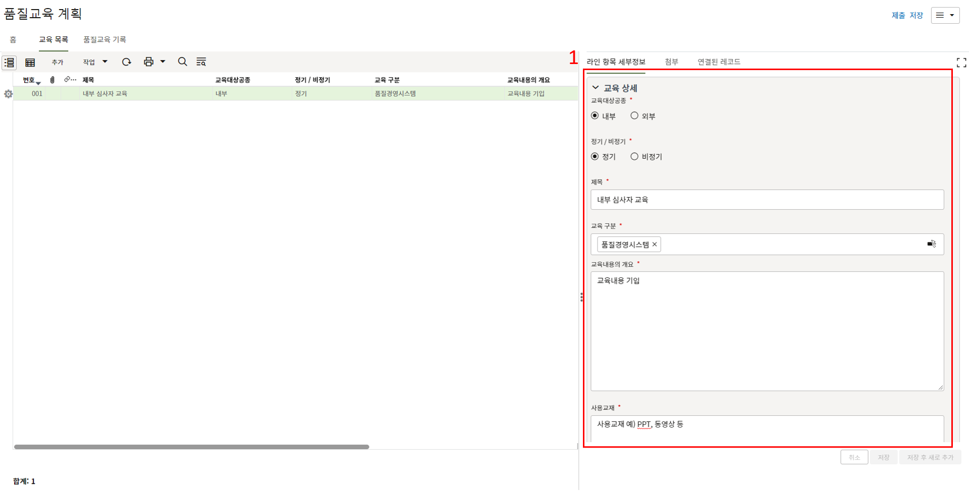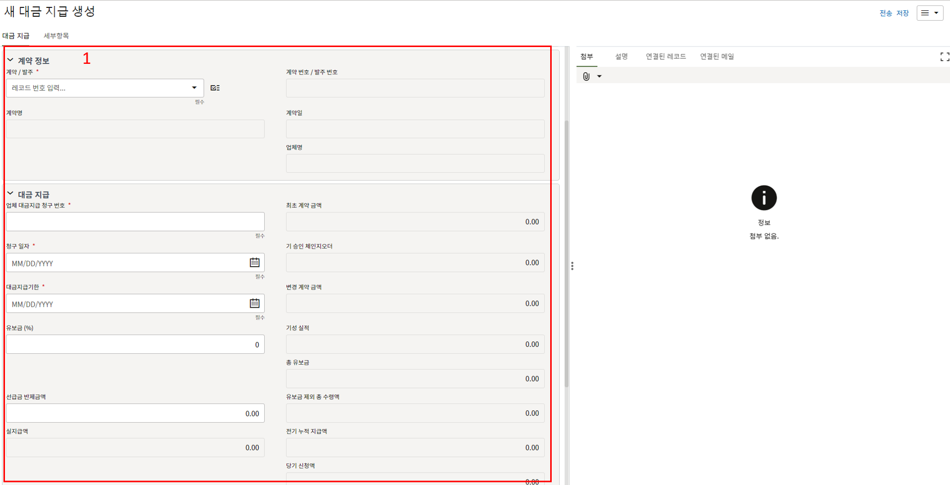하나의 레코드에 포함되는 내역,품목등 세부사항의 내용을 입력할 수 있습니다.