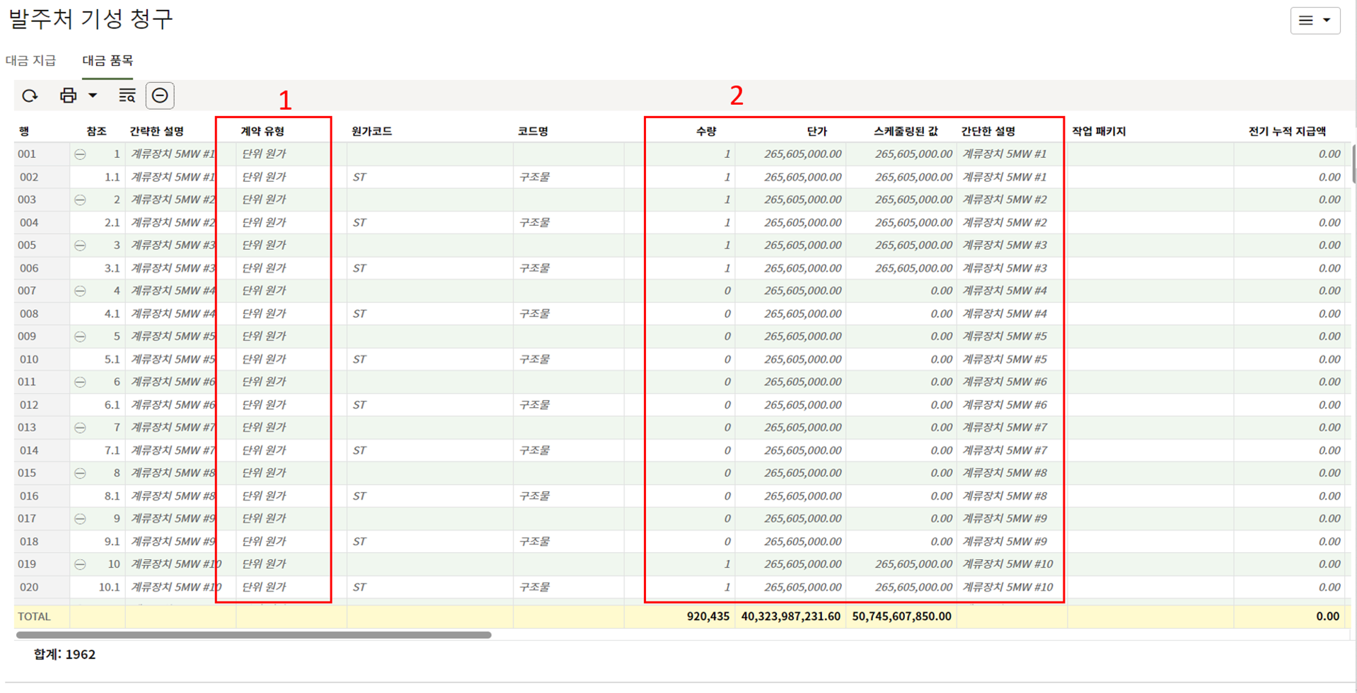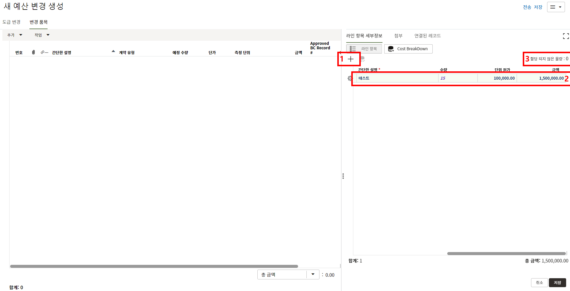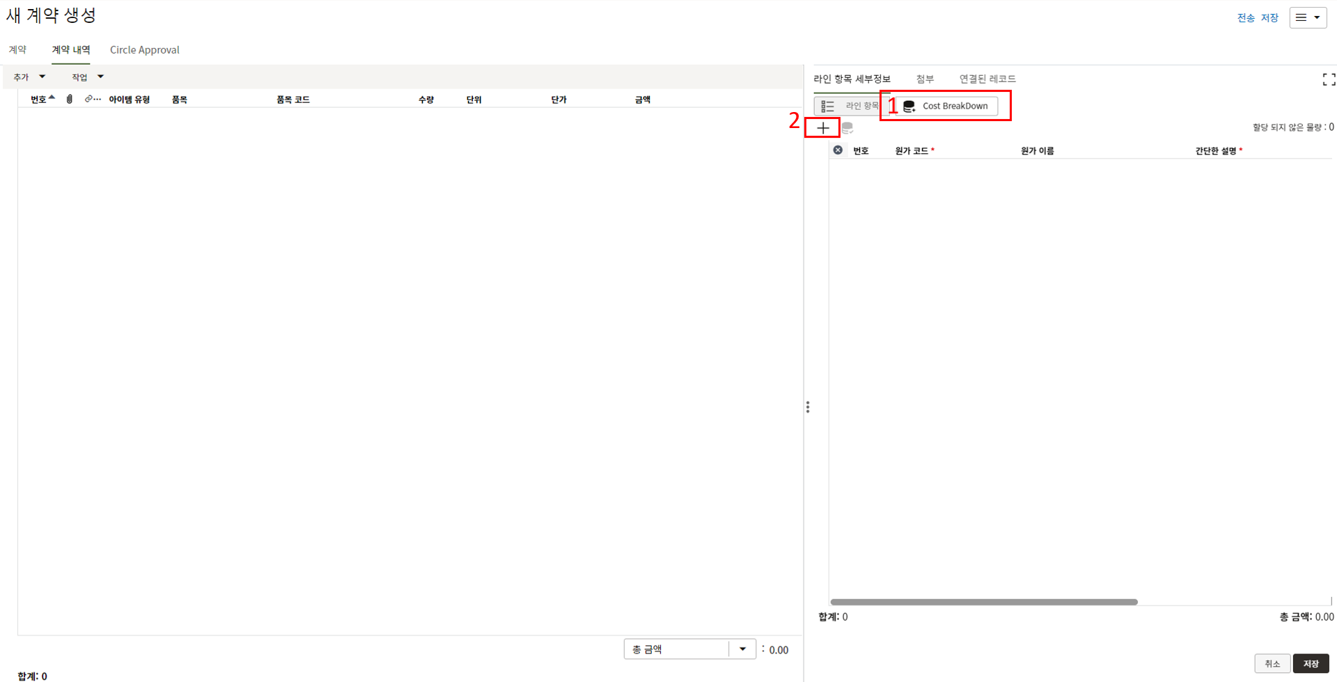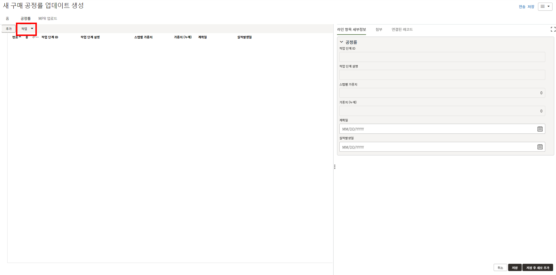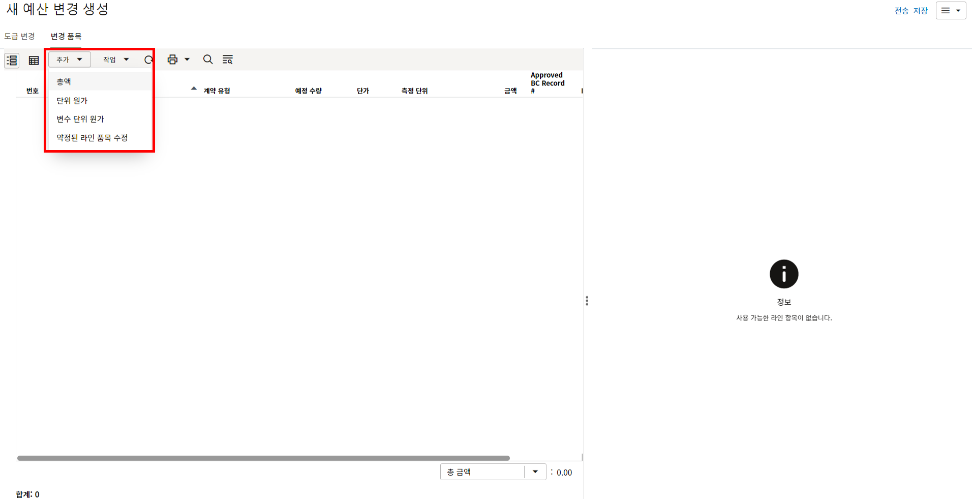 하나의 레코드에 포함되는 내역,품목등 세부사항의 내용을 입력할 수 있습니다.