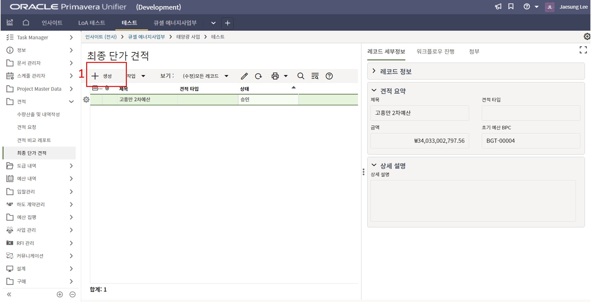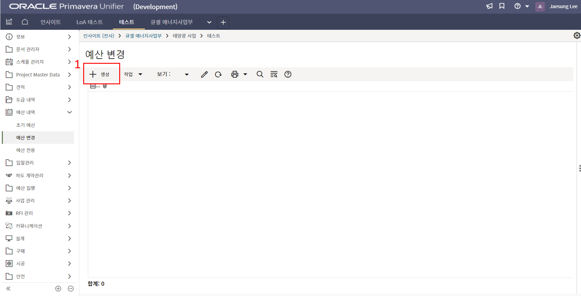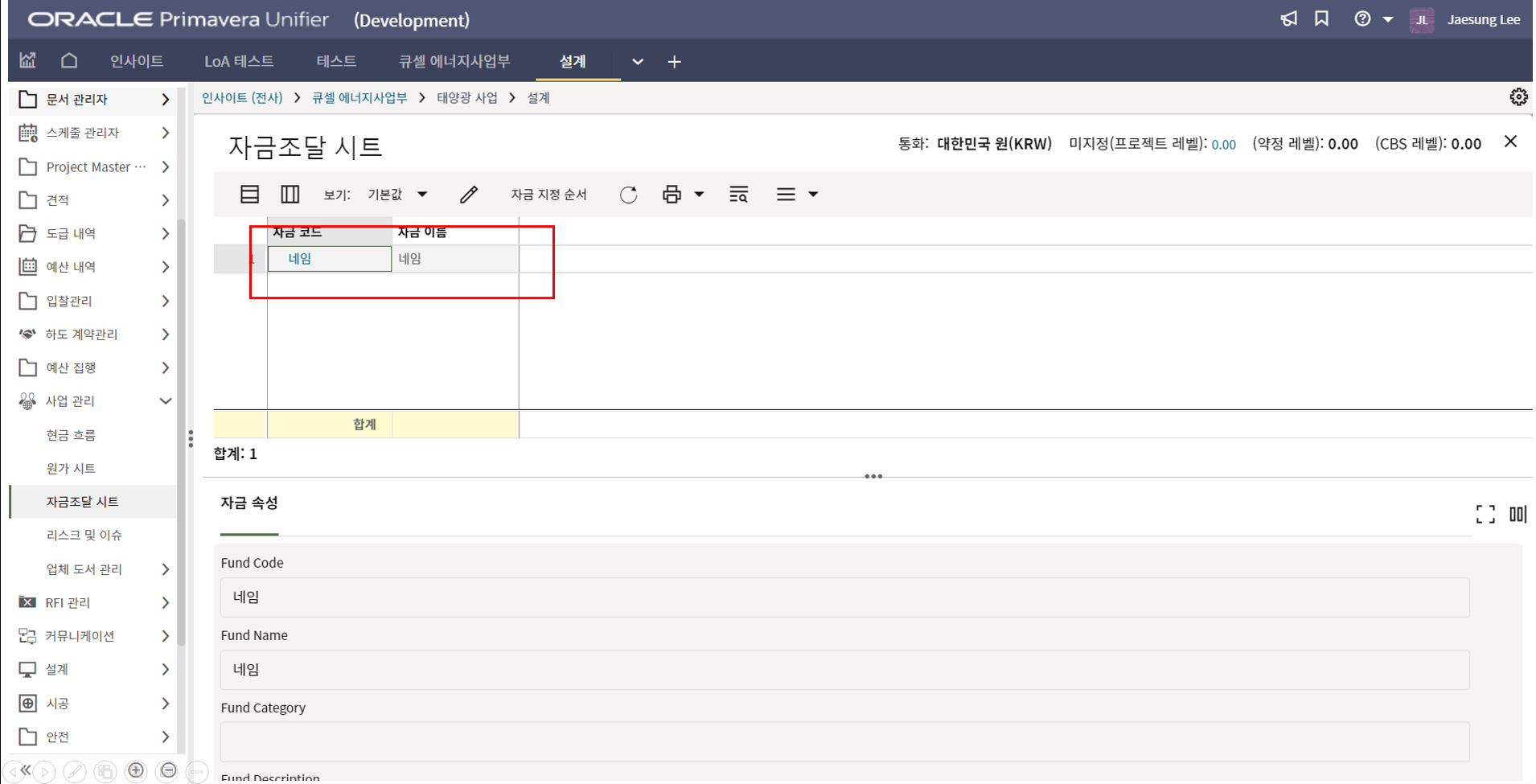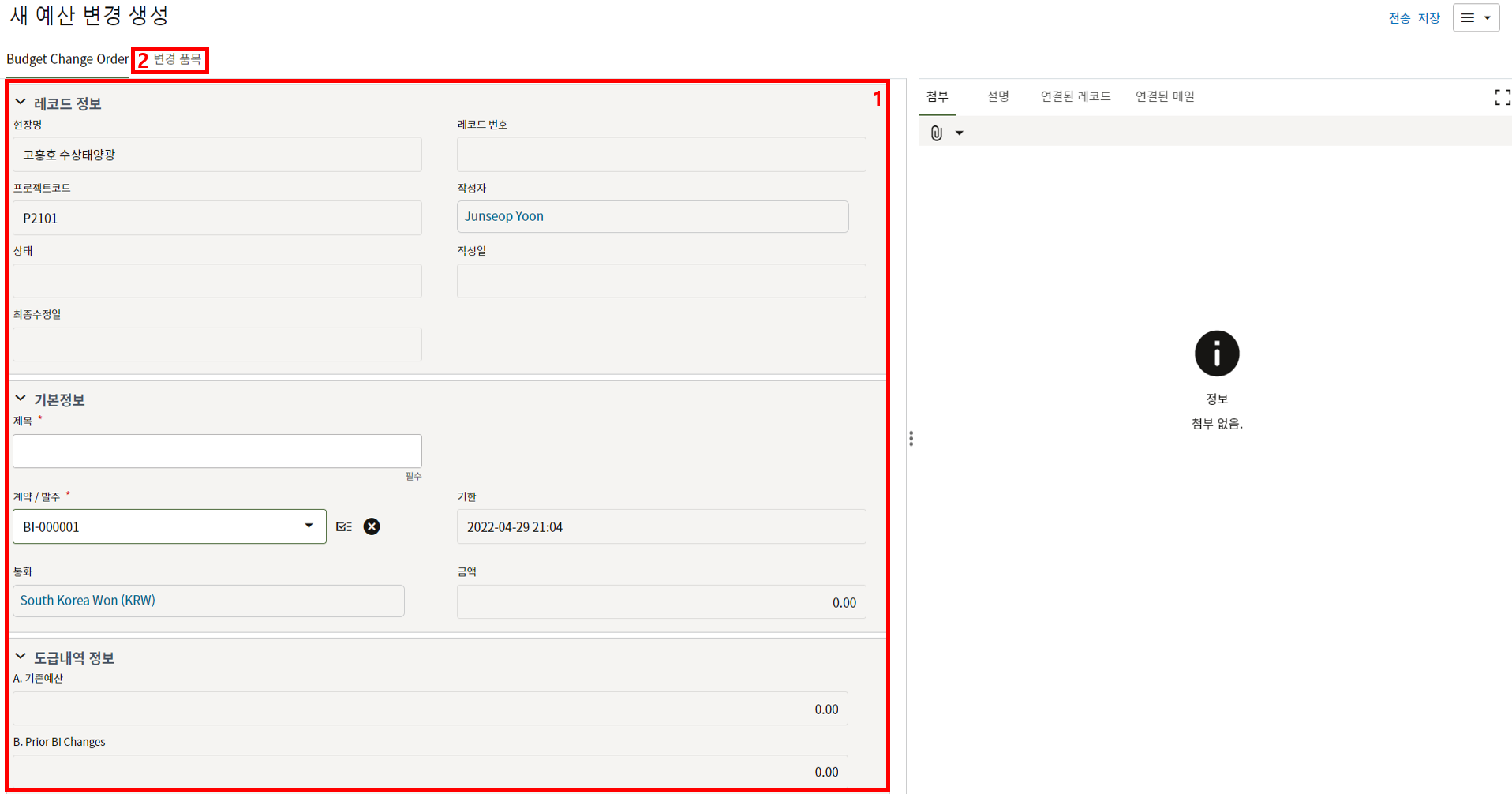 2) 환율은 국내 프로젝트는 1로 입력을 하면 됩니다.