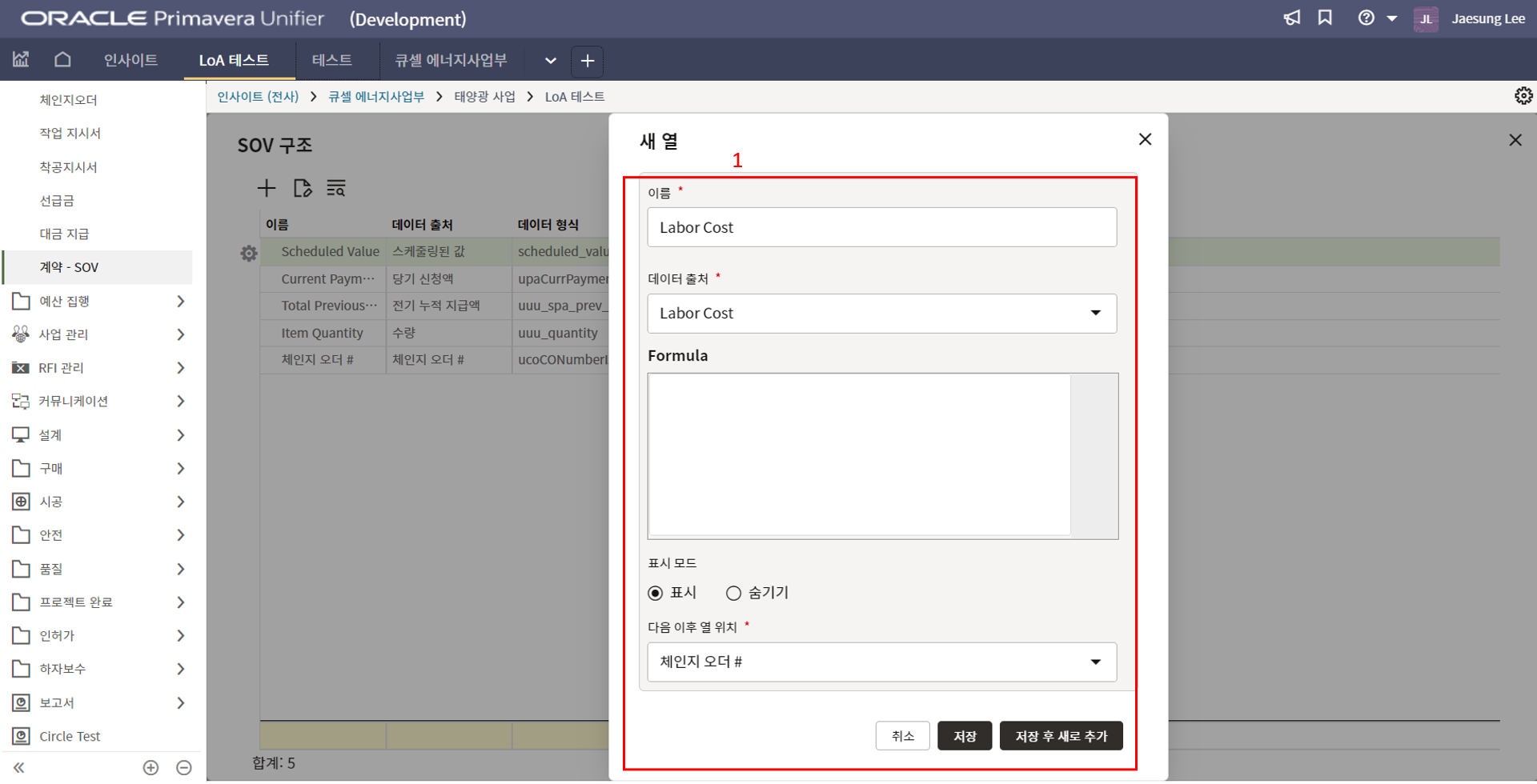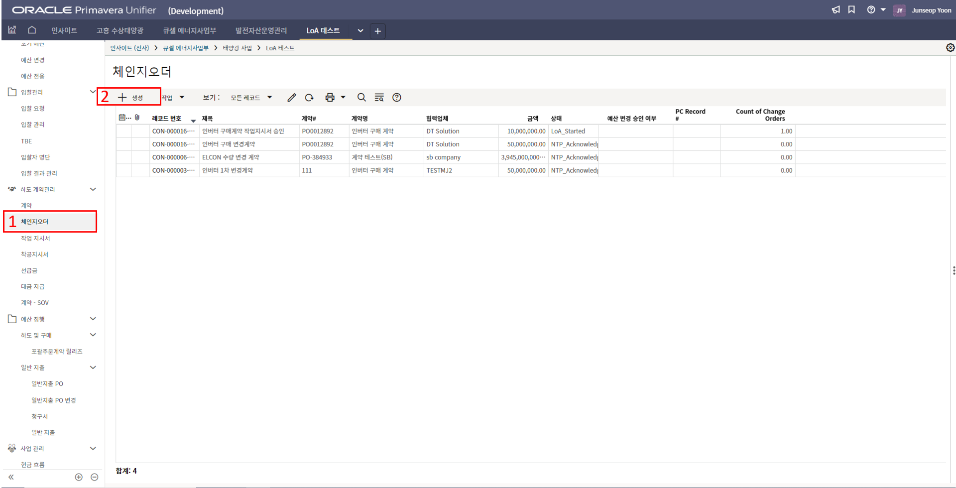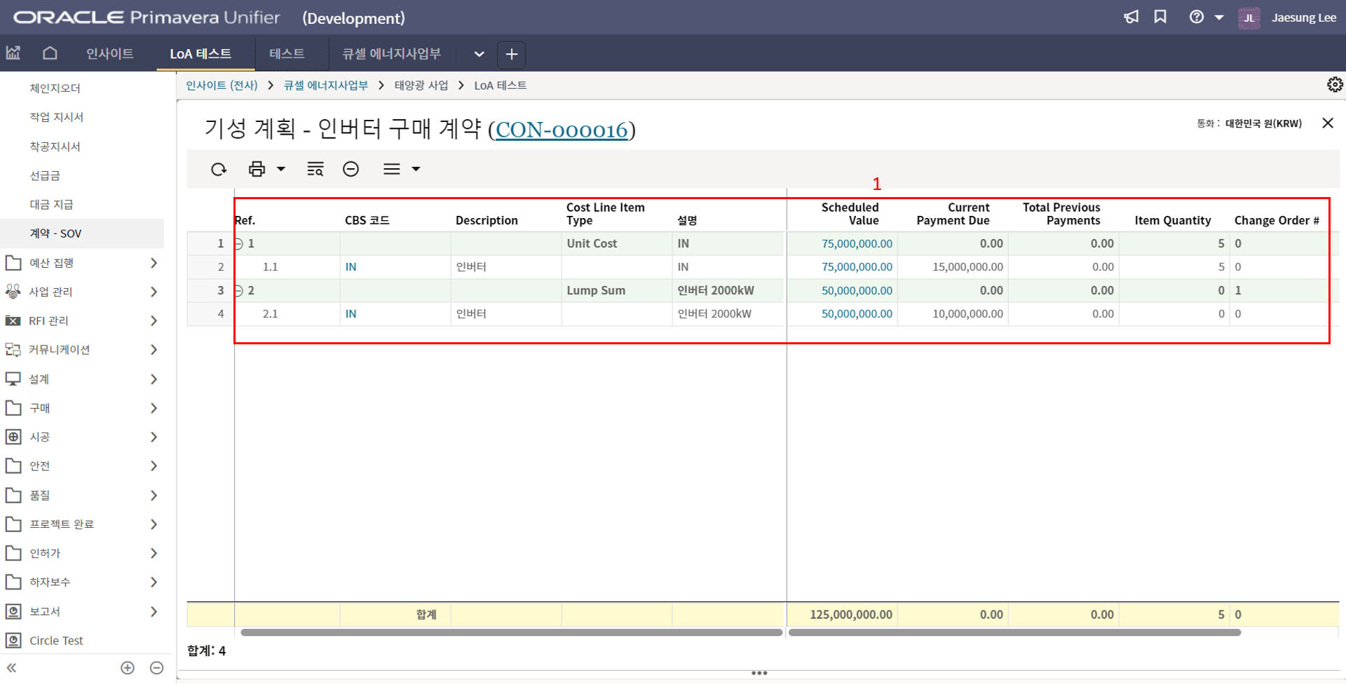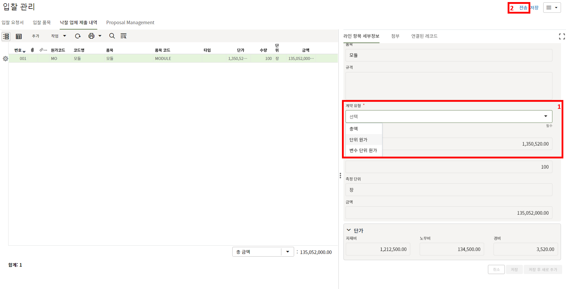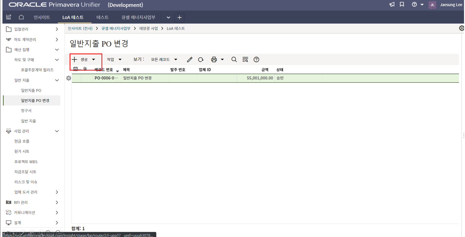 2) 환율은 국내 프로젝트는 1로 입력을 하면 됩니다.