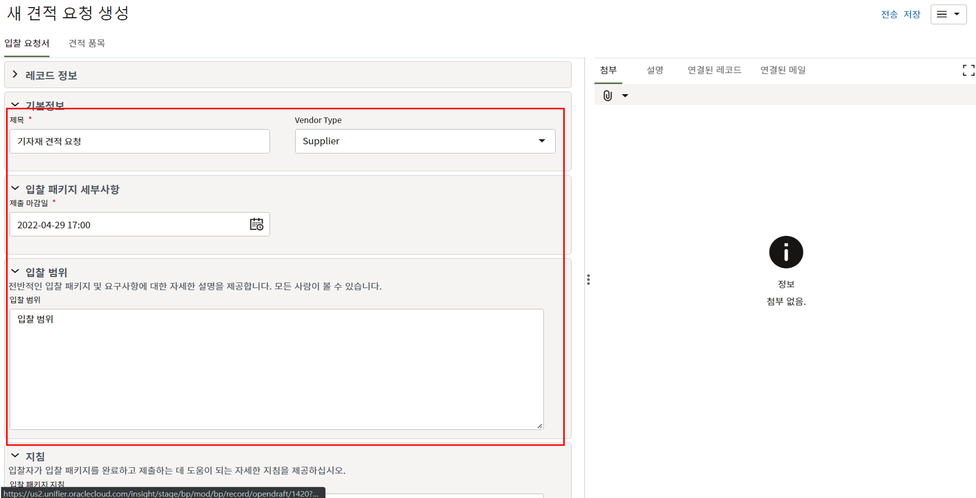 사용법은 "정보 요청(RFI)"와 거의 같습니다. "정보 요청(RFI)" 도움말을 참조하시기 바랍니다.