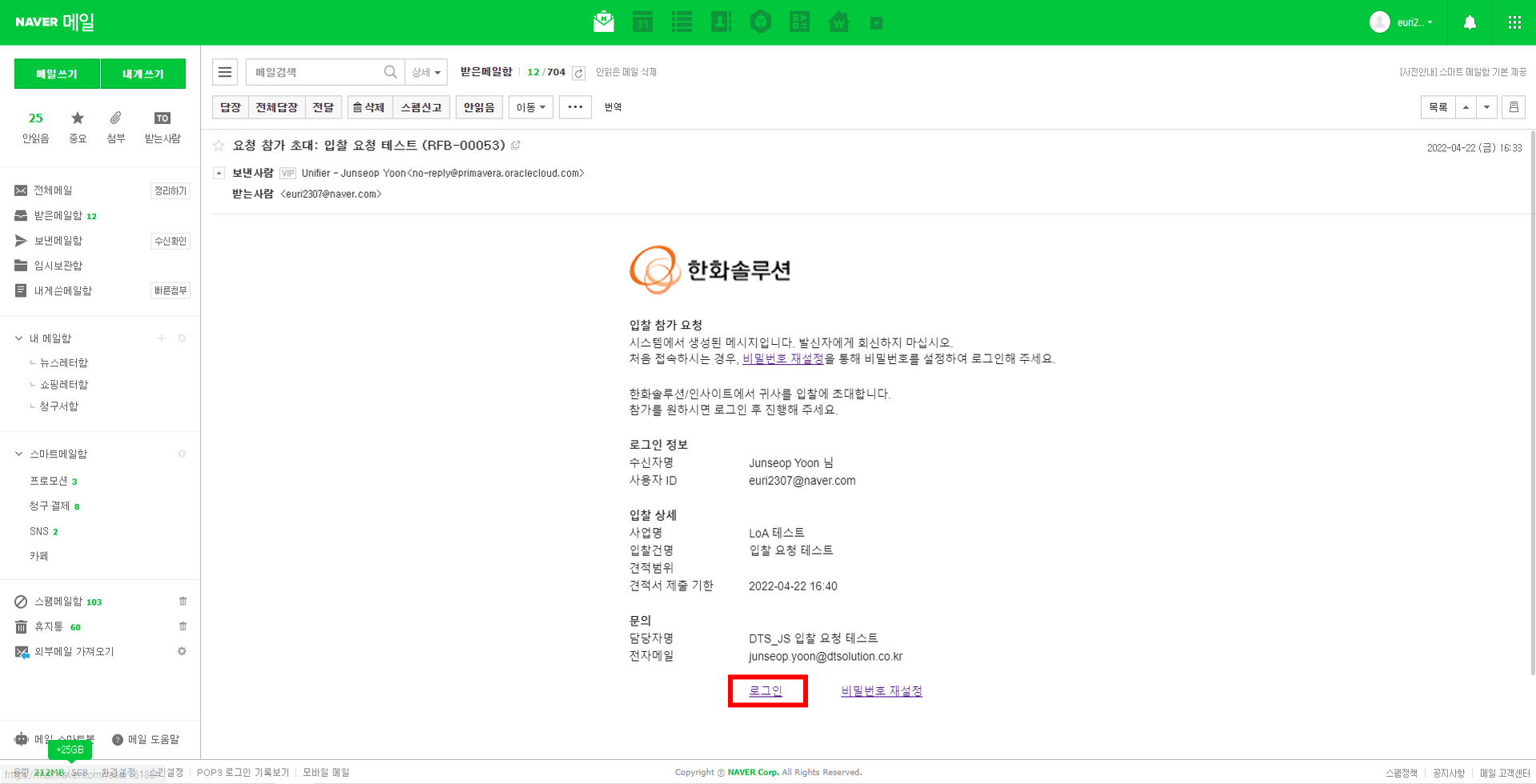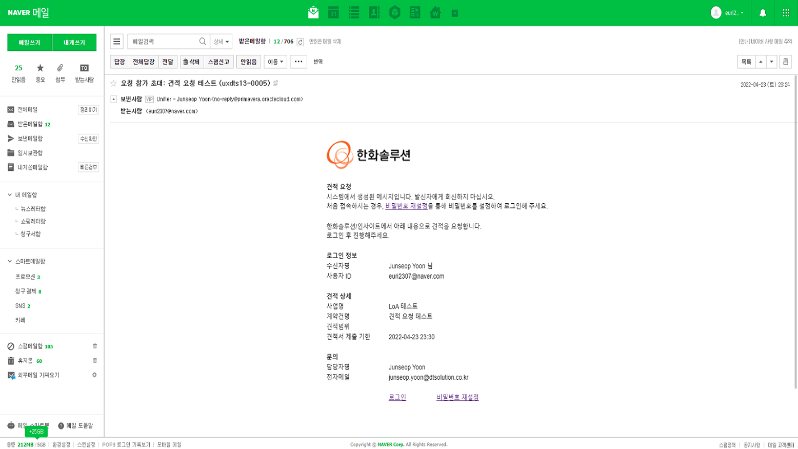 (그룹웨어 정책상 스팸으로 처리되어 정크 메일함으로 발송 될 수 있으니 확인 바랍니다.)