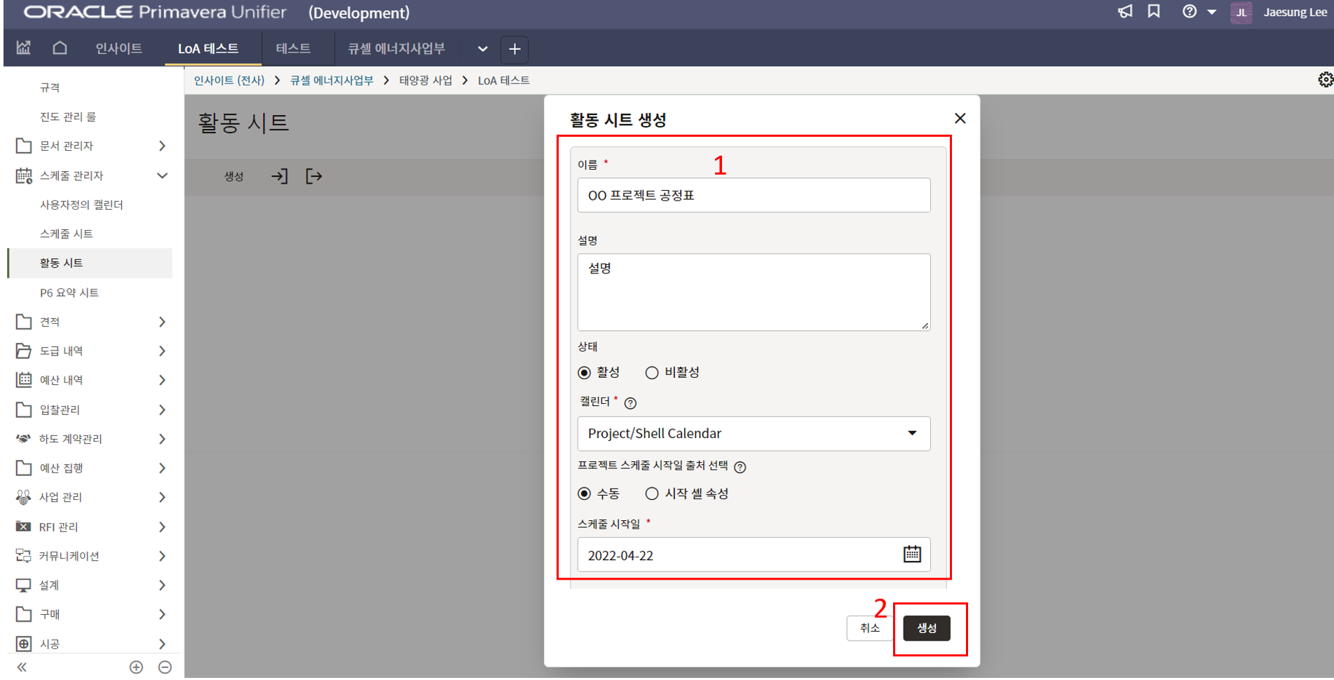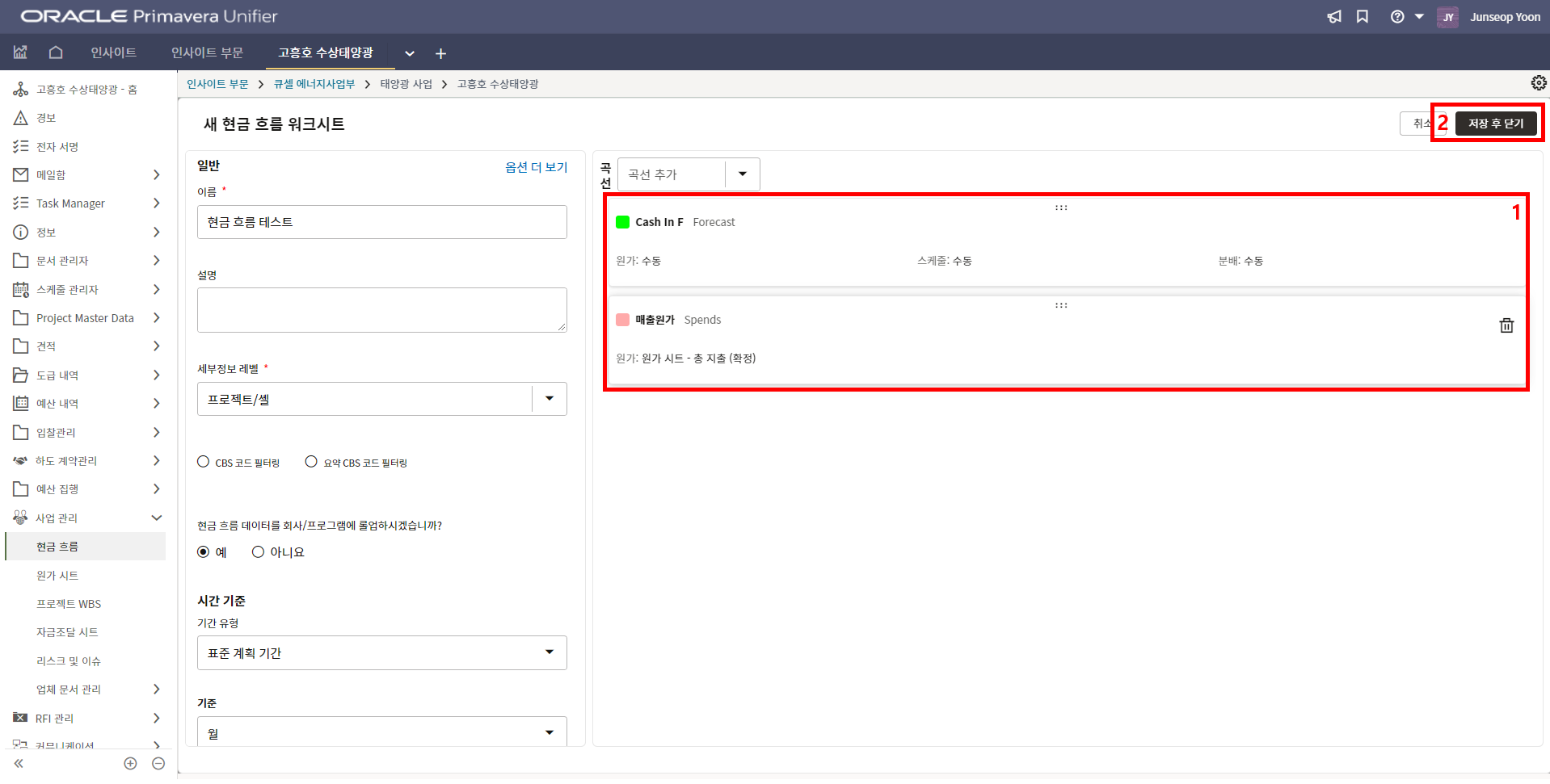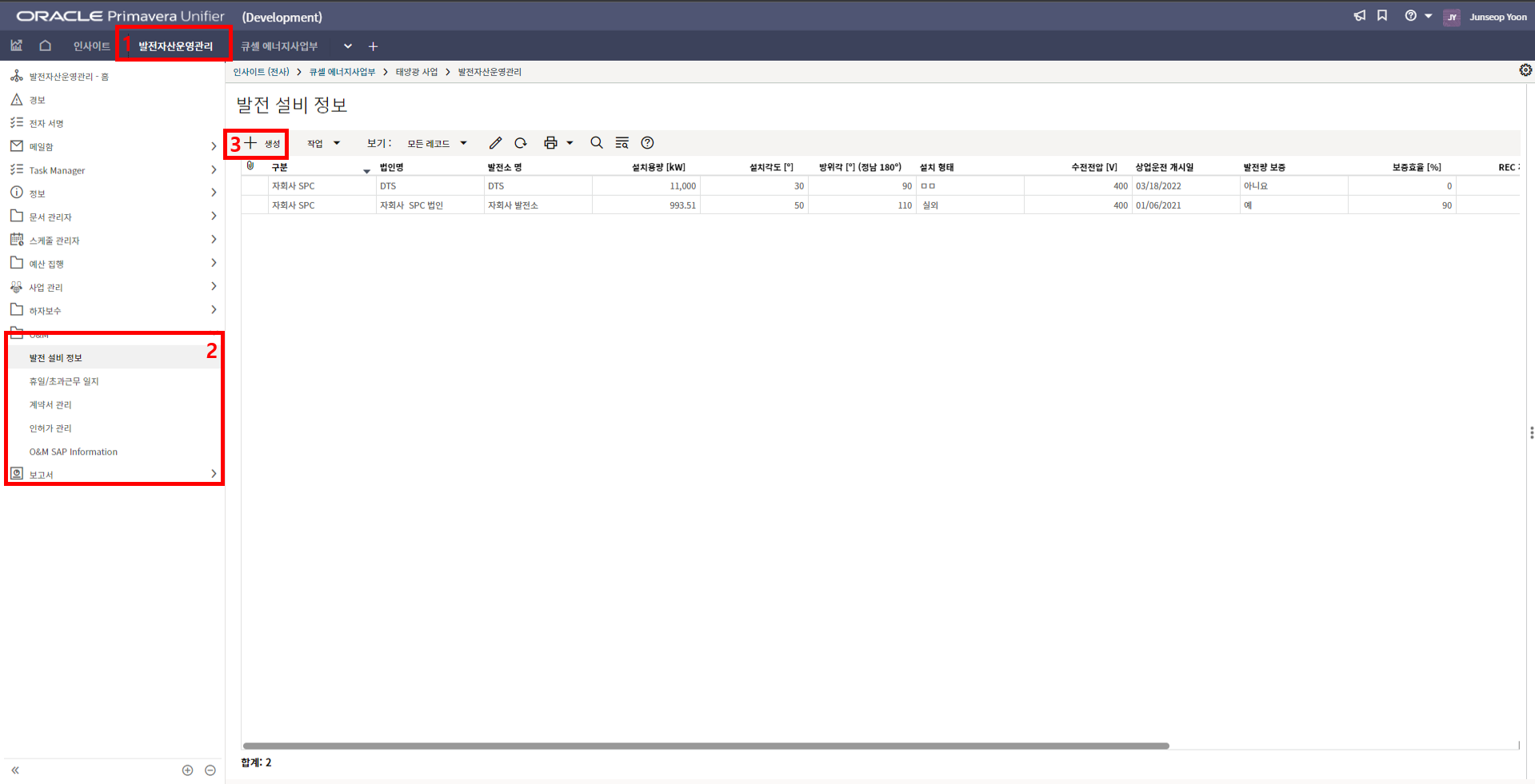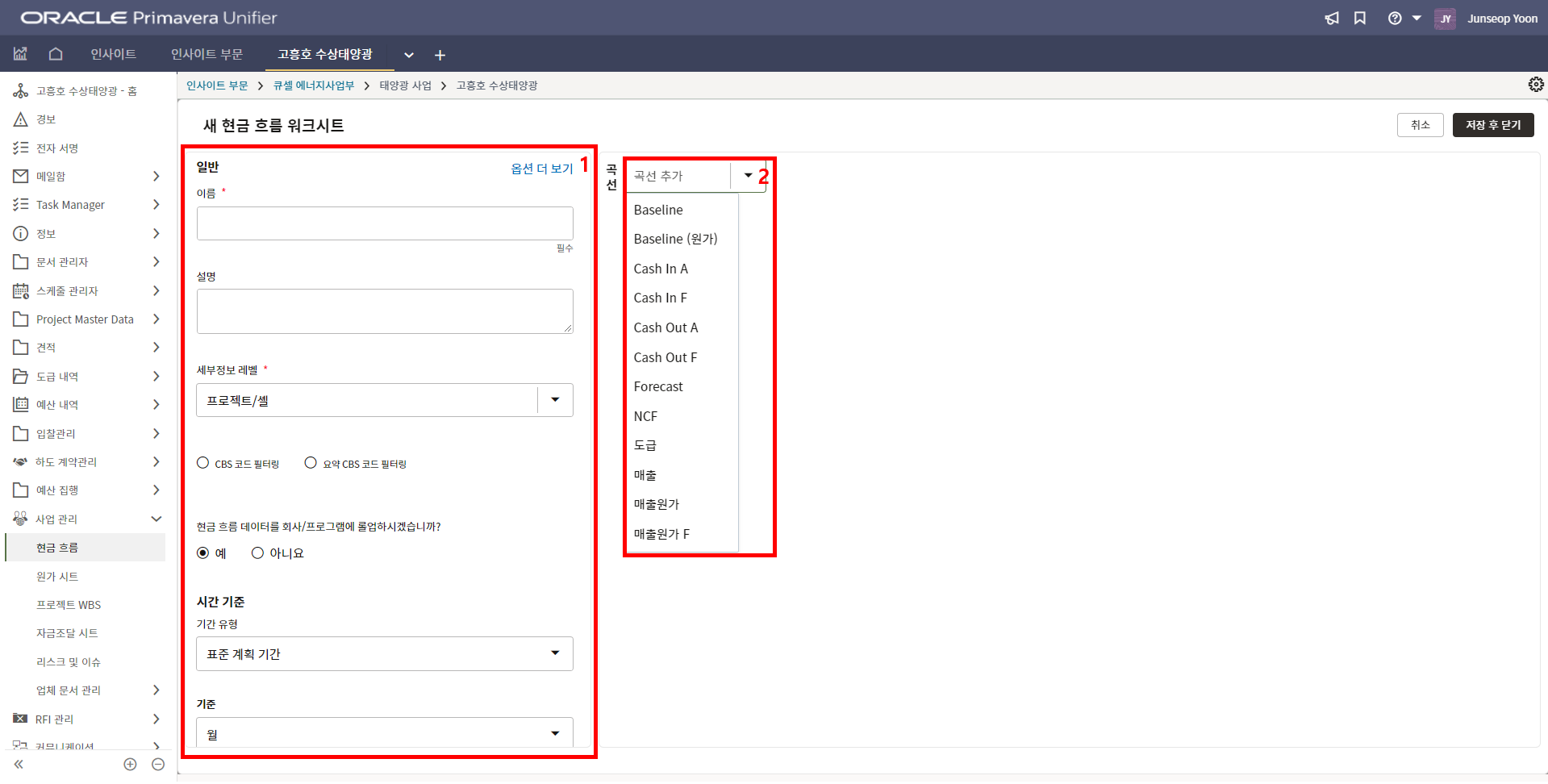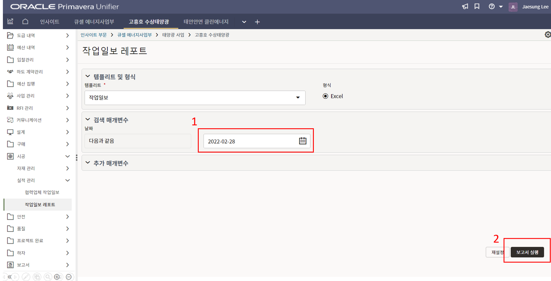 2. 프로젝트 위치, 모듈수량, 발전용량, 환율, 발주처명의 정보를 기입합니다.
