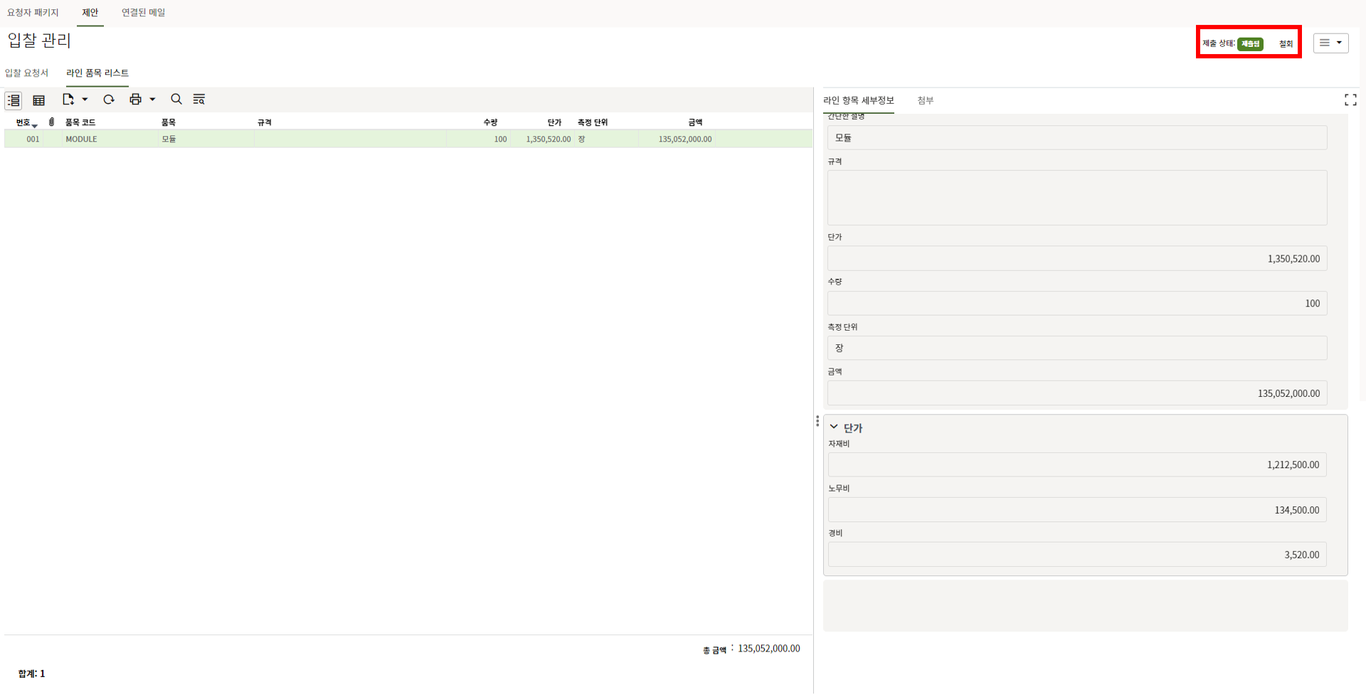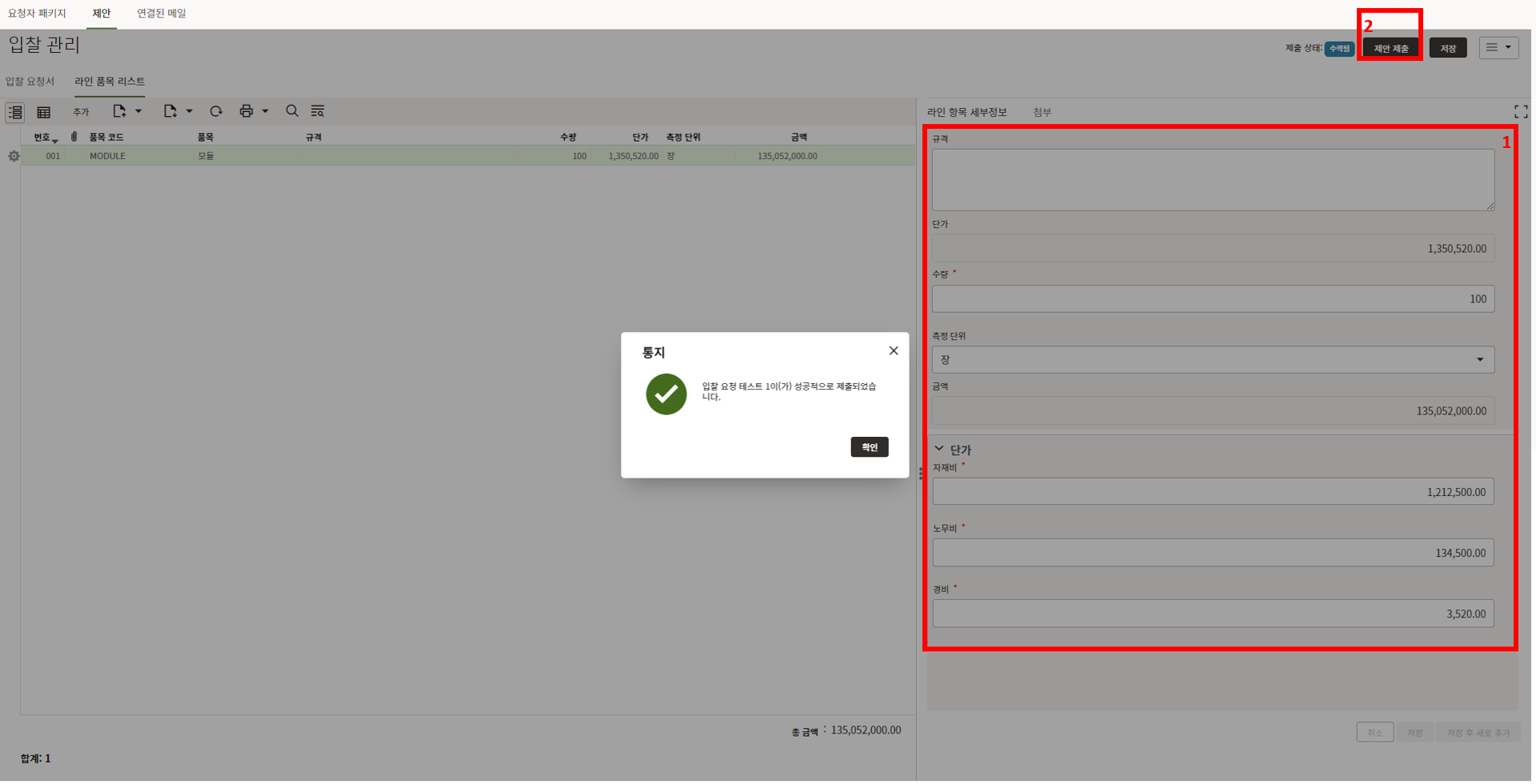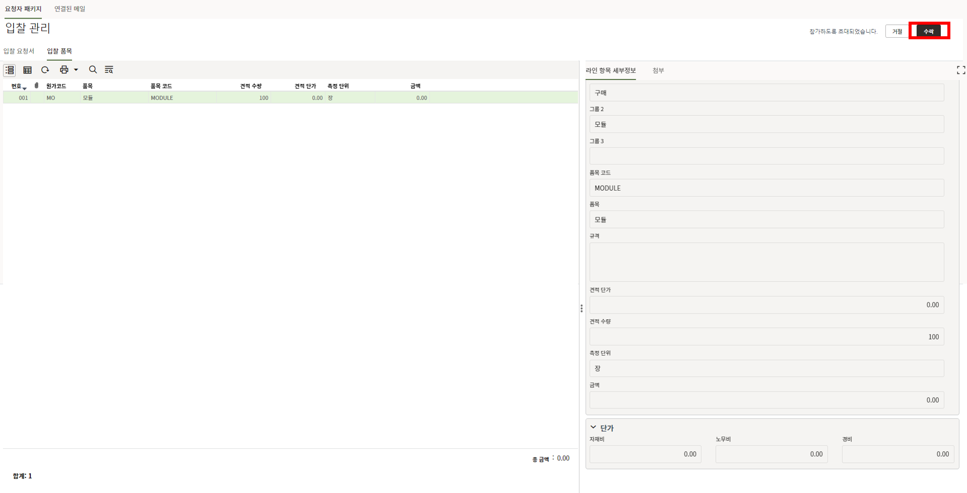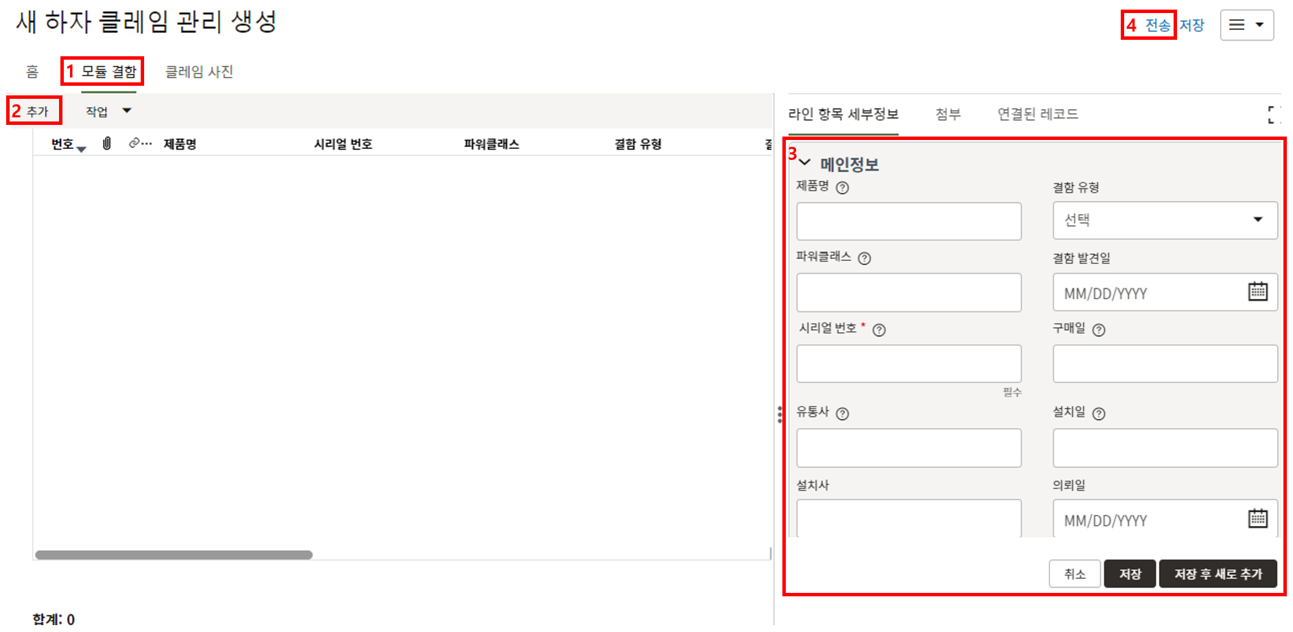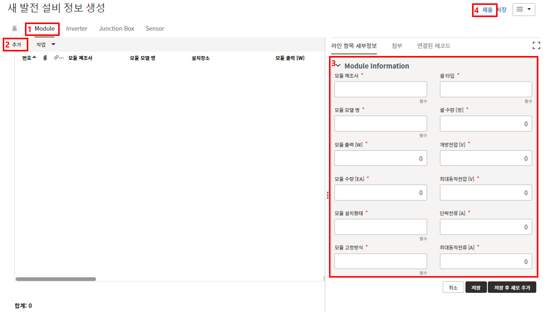 1) 모듈 수량은 "구매 공정률 업데이트" 메뉴에서 모듈 입고수량을 기입할 때 모듈 총 물량정보로 활용됩니다.