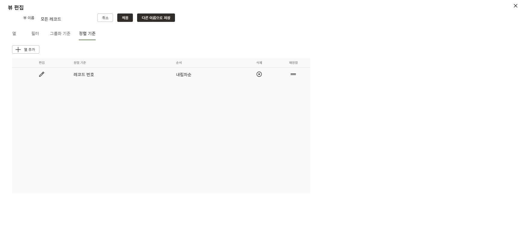 4. "정렬 기준" 탭에서는 정렬 기준을 설정 할 수 있습니다.