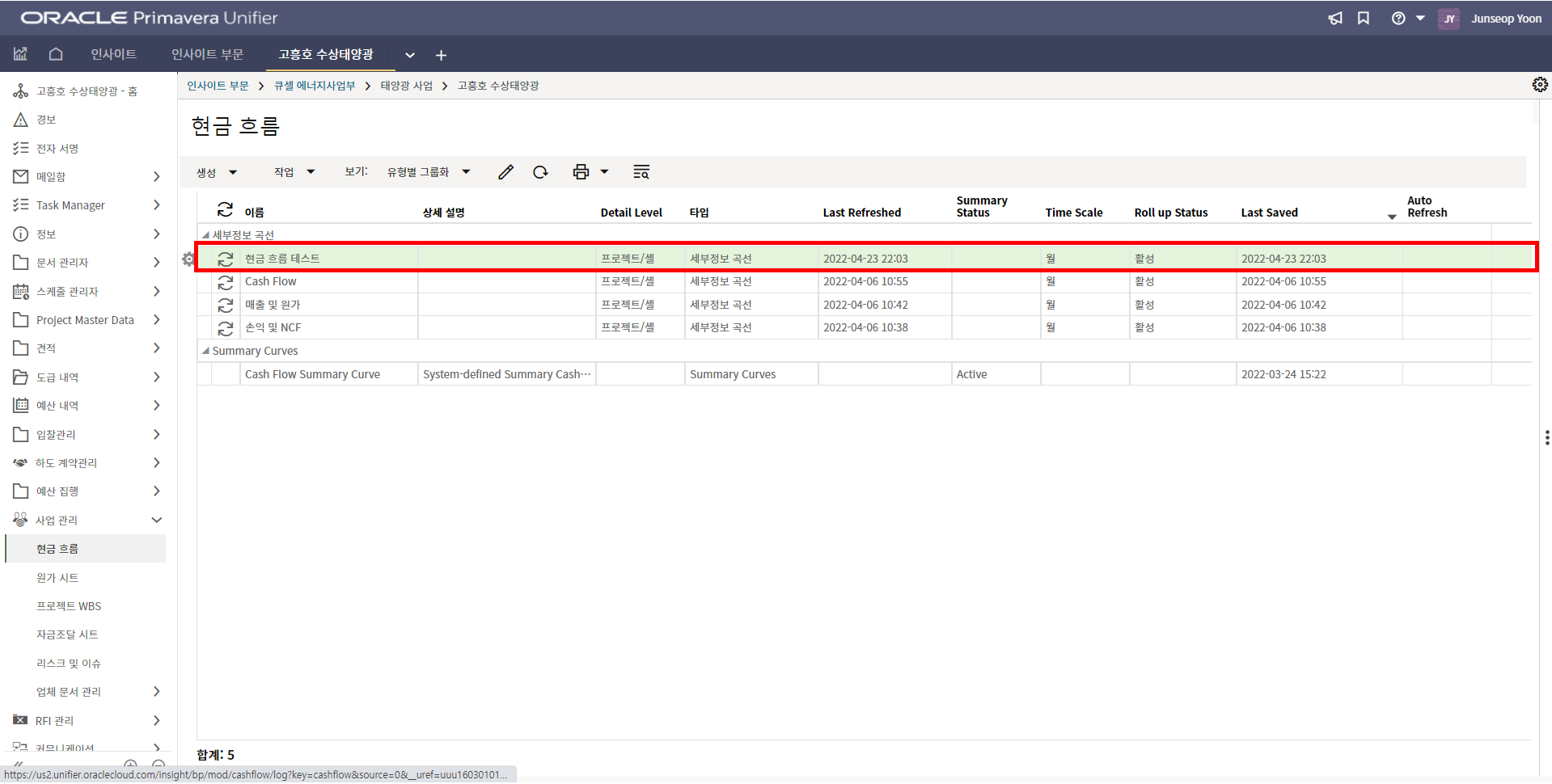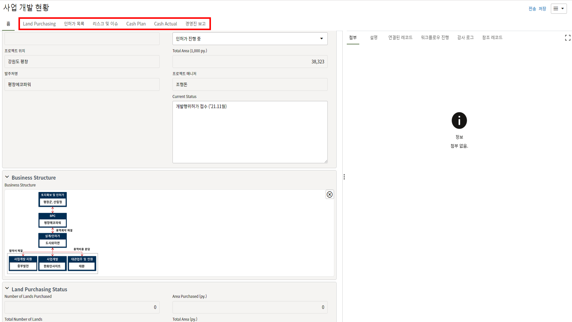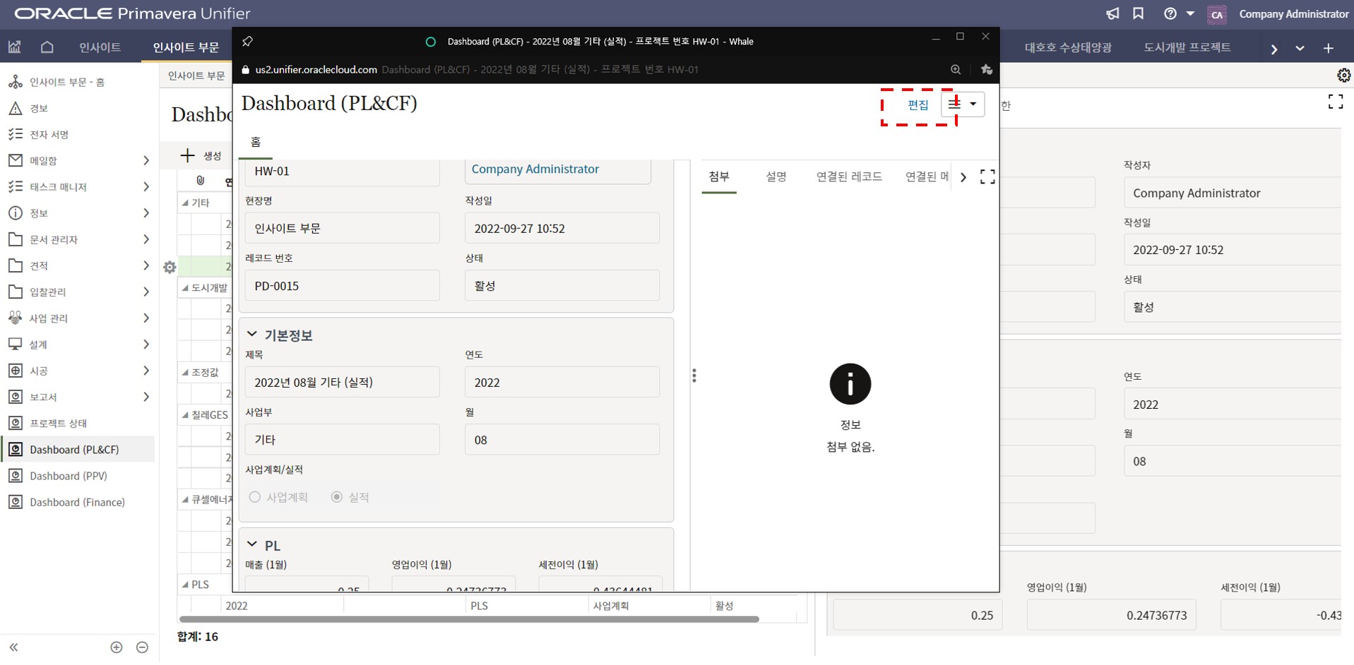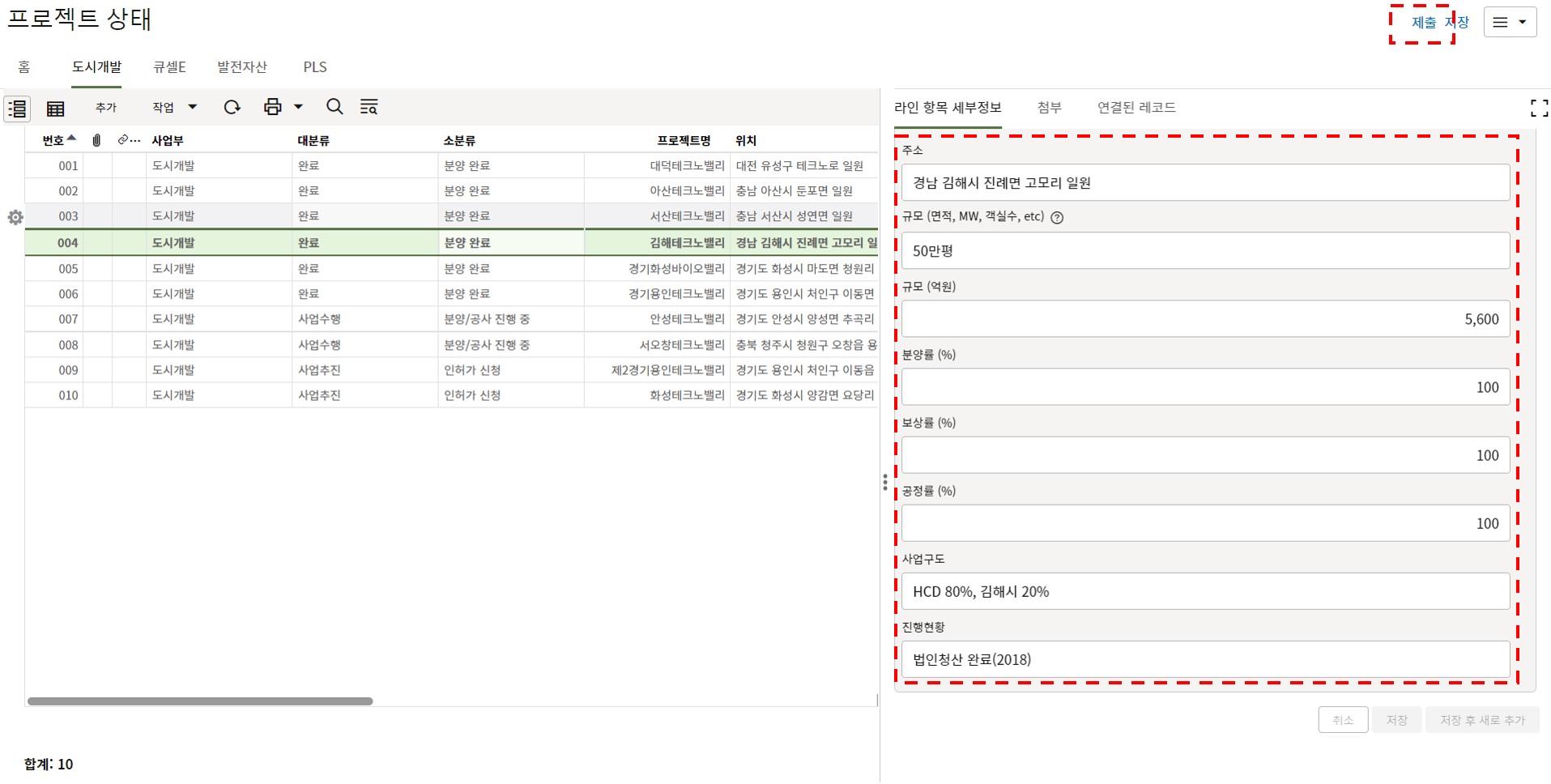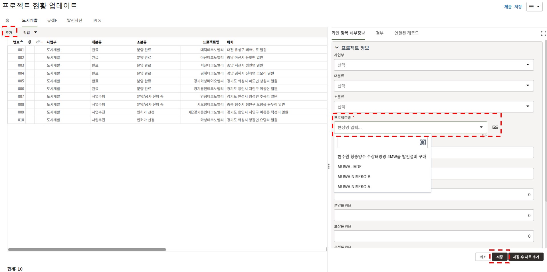 4. 프로젝트 내용을 최신정보로 업데이트하고 저장버튼을 눌러 값을 저장합니다.