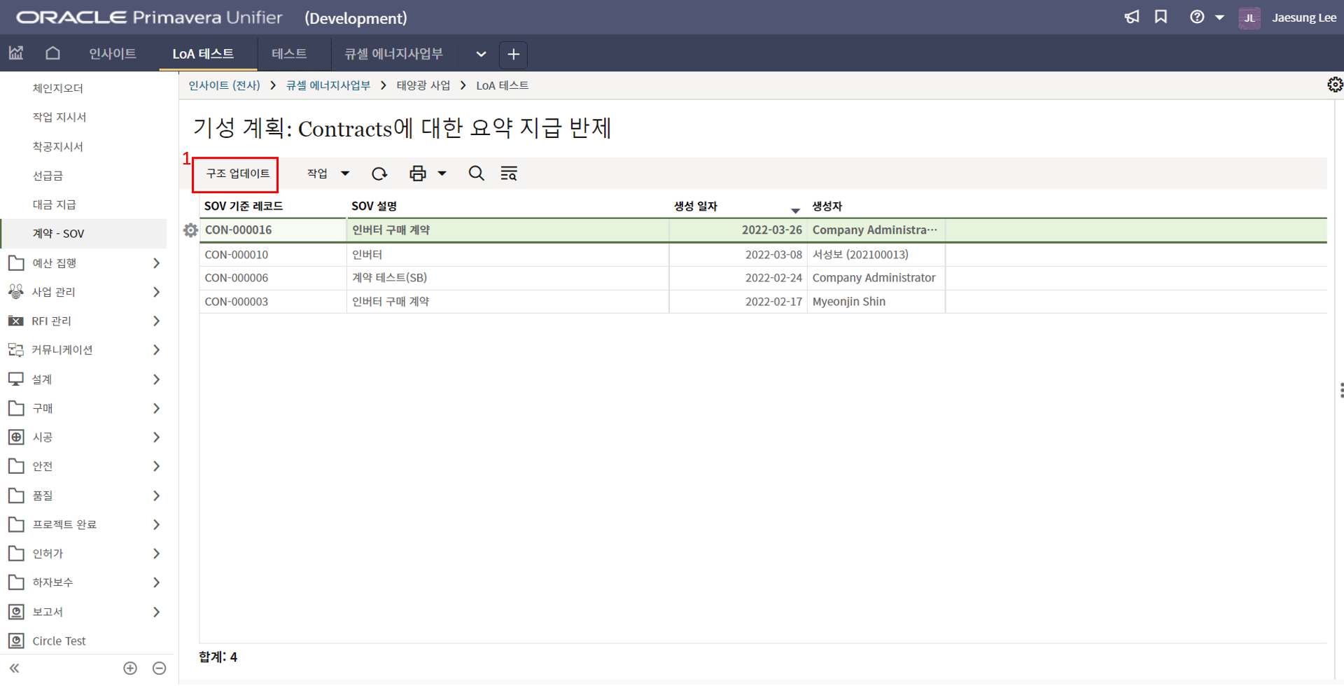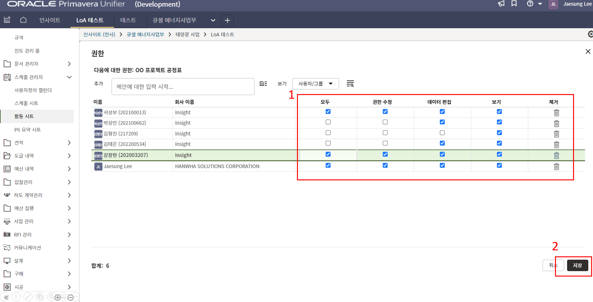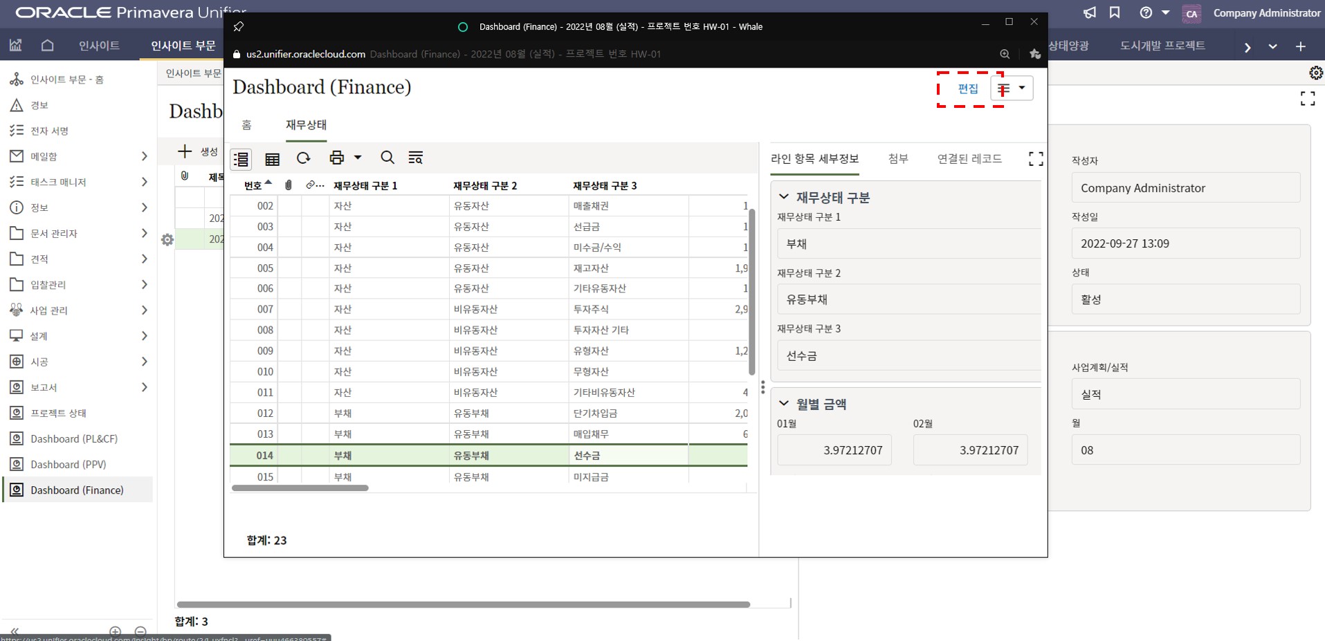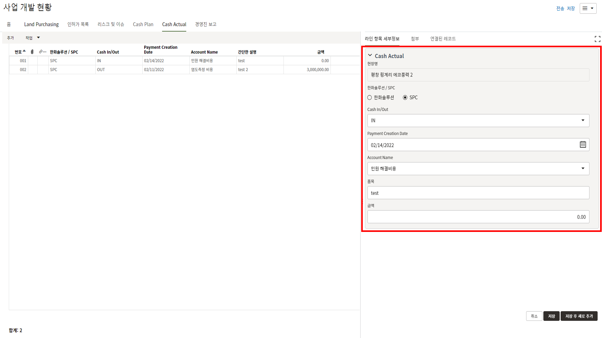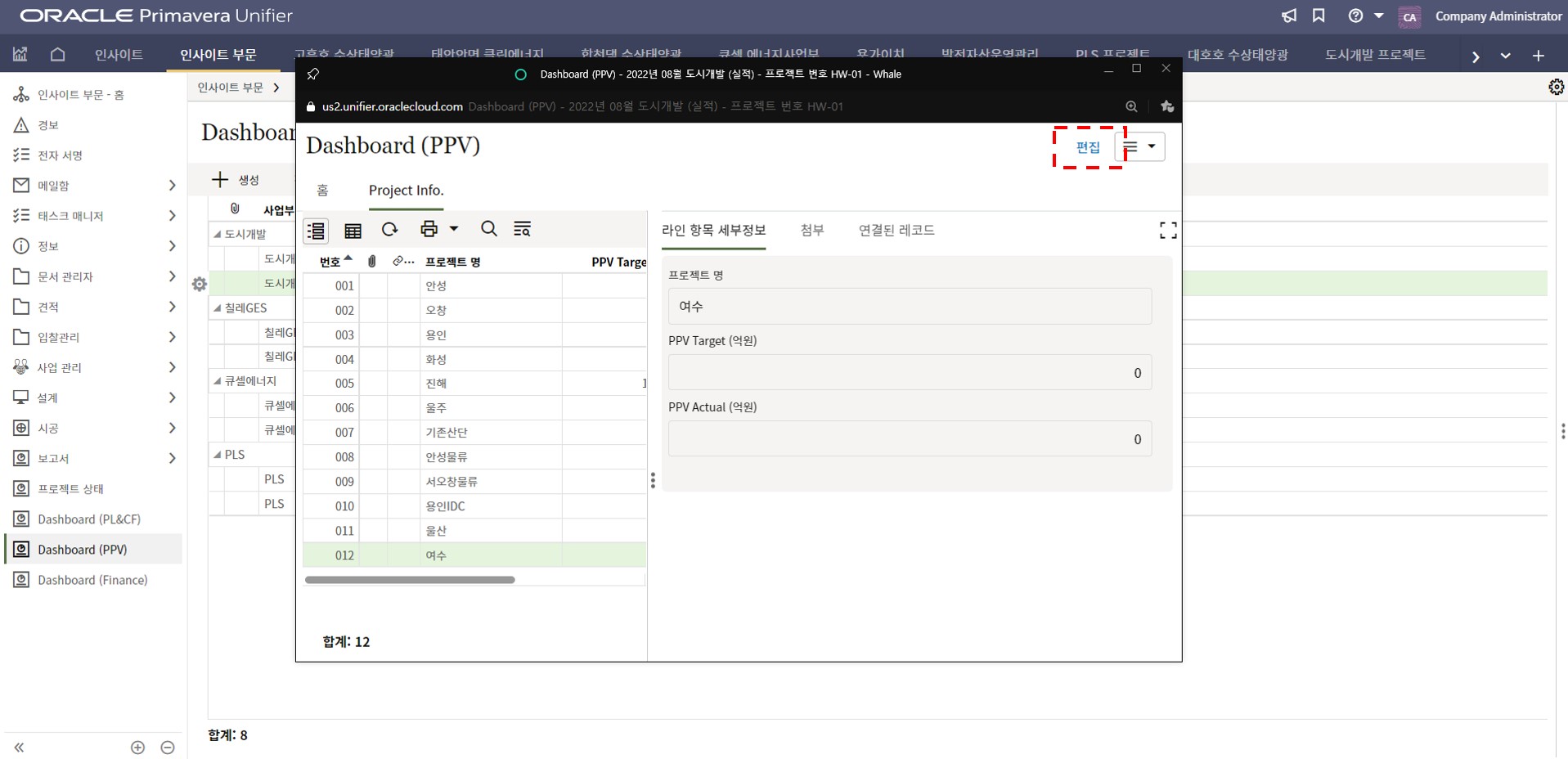 4. 프로젝트 내용을 최신정보로 업데이트하고 저장버튼을 눌러 값을 저장합니다.