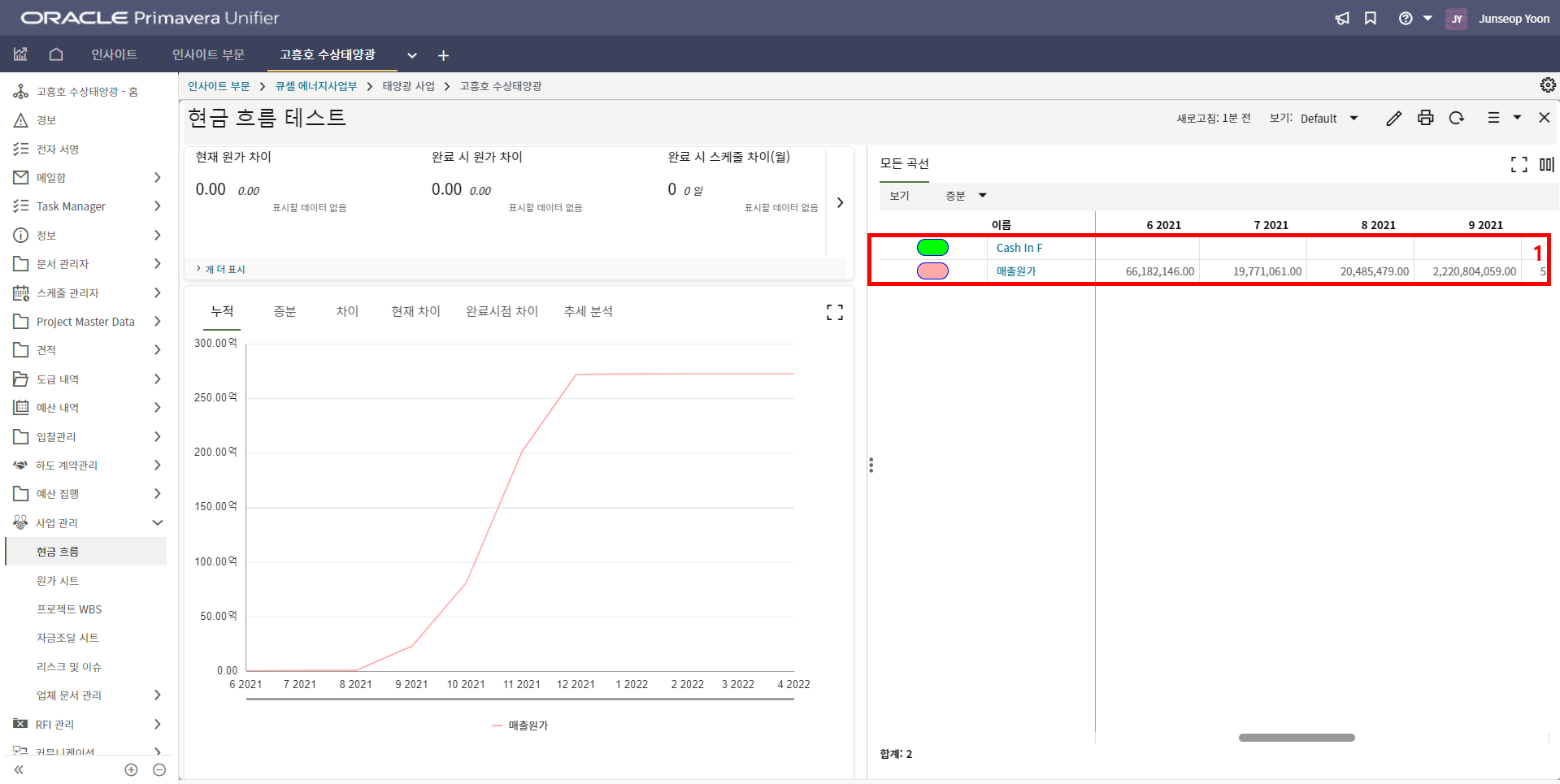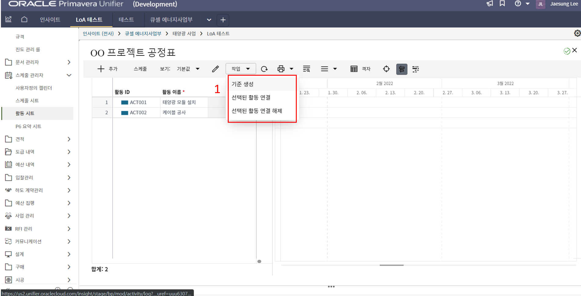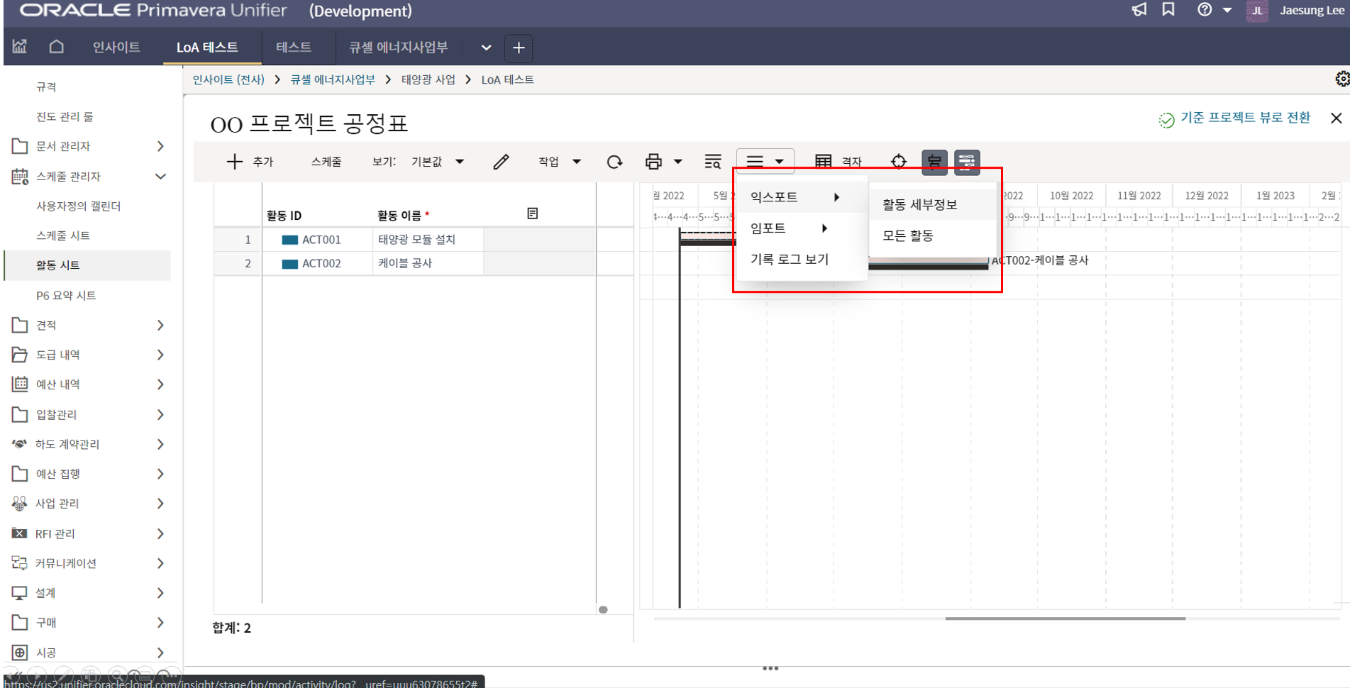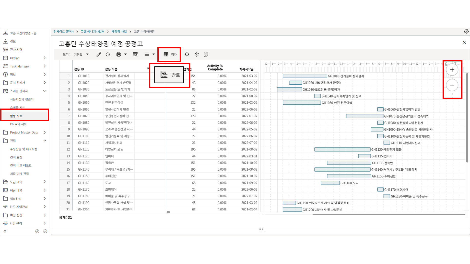 1.원가시트 및 활동시트 확인을 통해 프로젝트 원가 및 일정현황을 모니터링 할 수 있습니다.