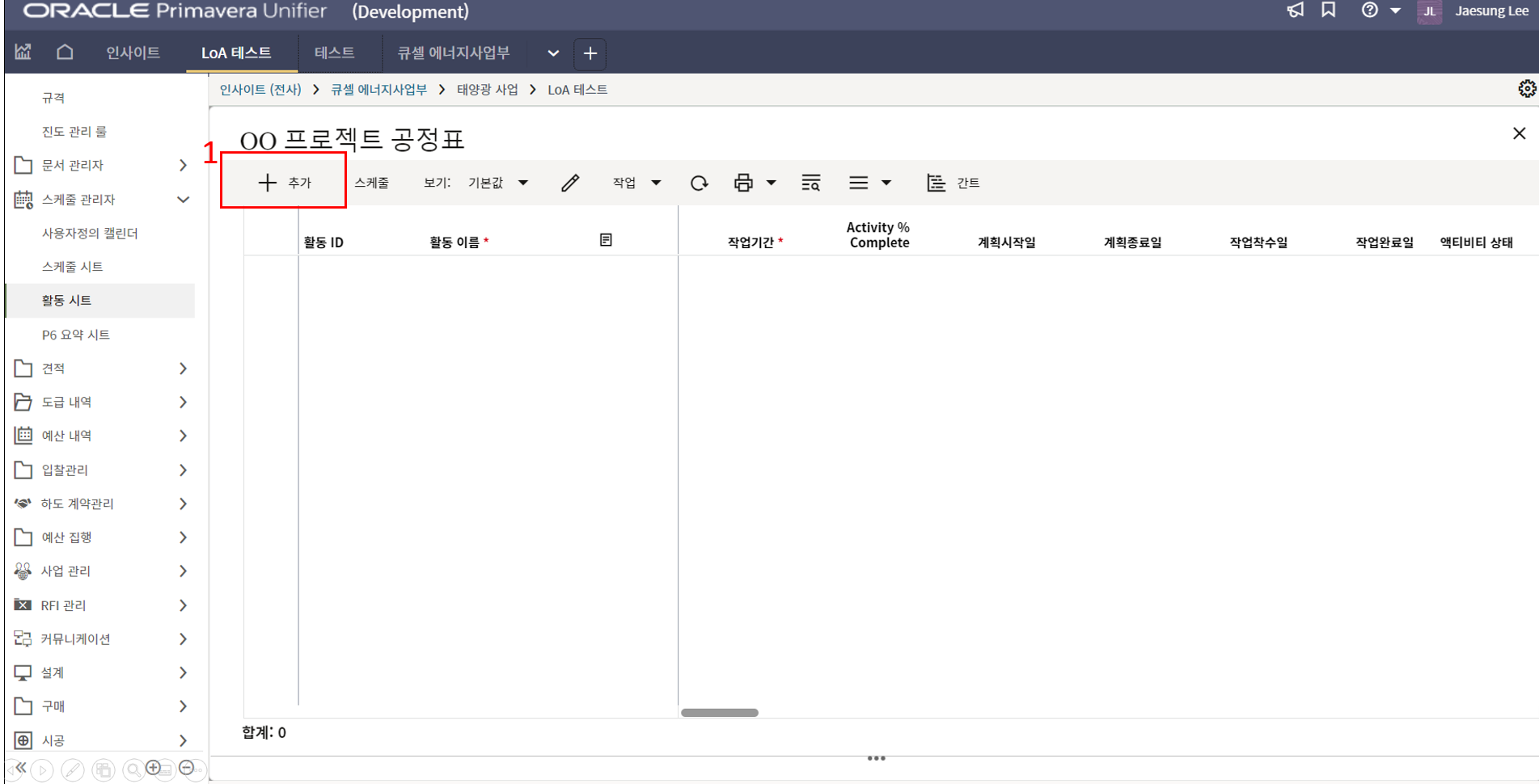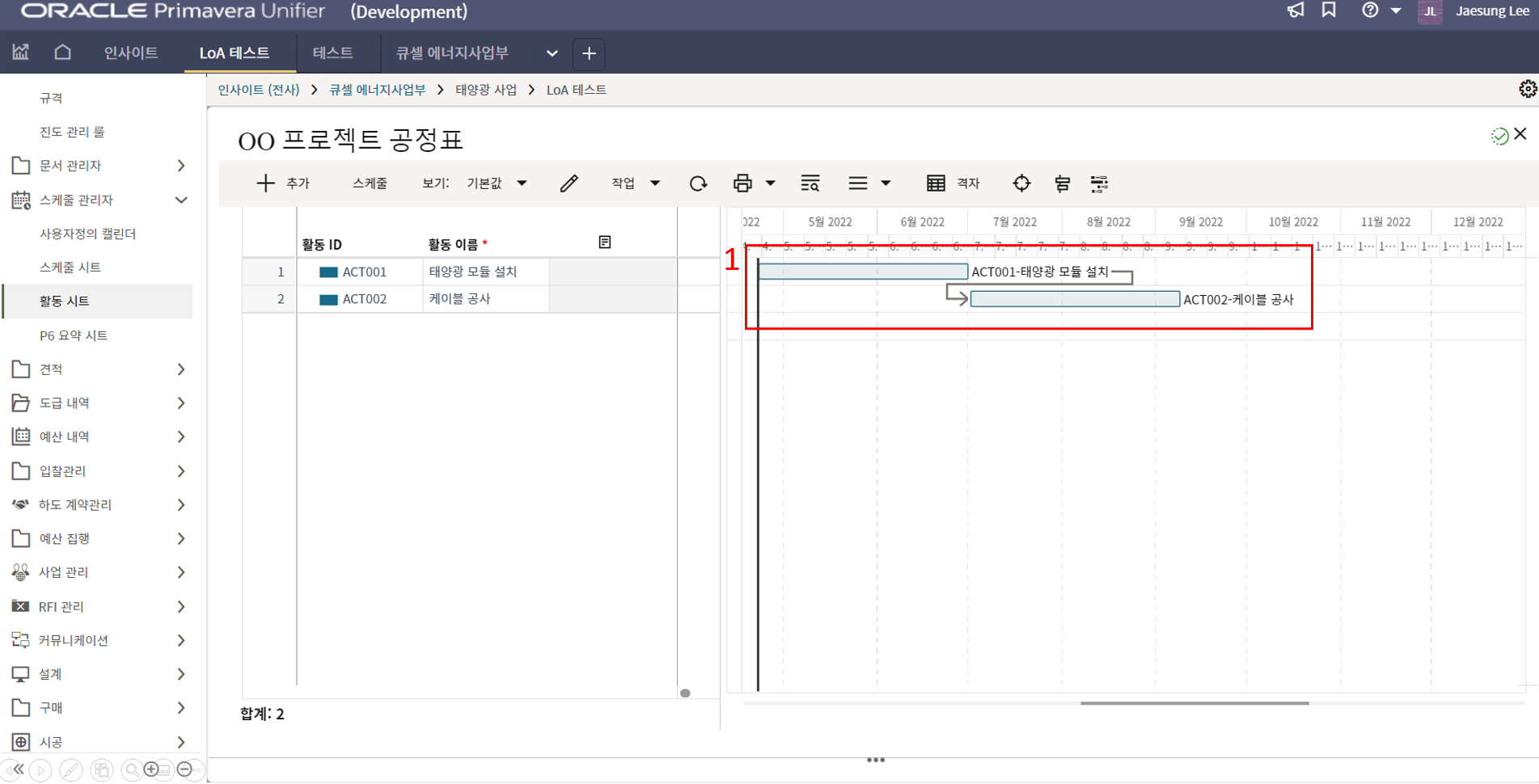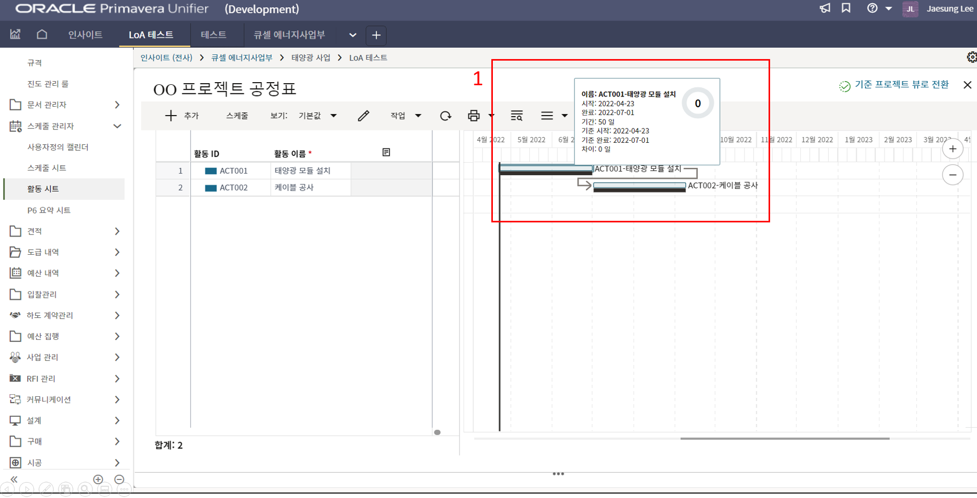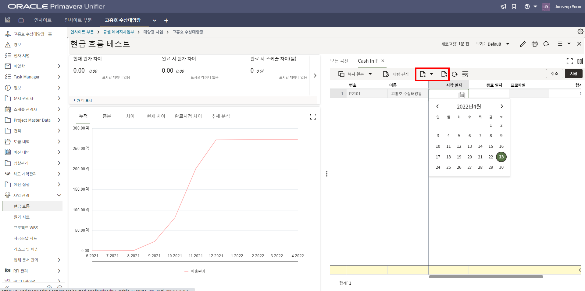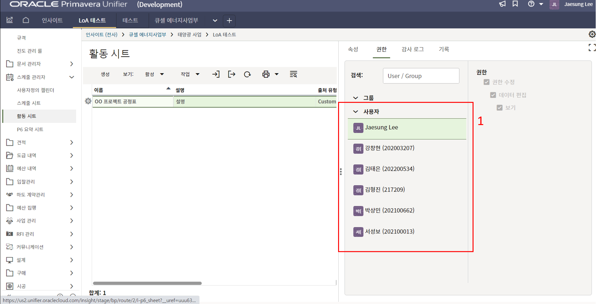 1.원가시트 및 활동시트 확인을 통해 프로젝트 원가 및 일정현황을 모니터링 할 수 있습니다.