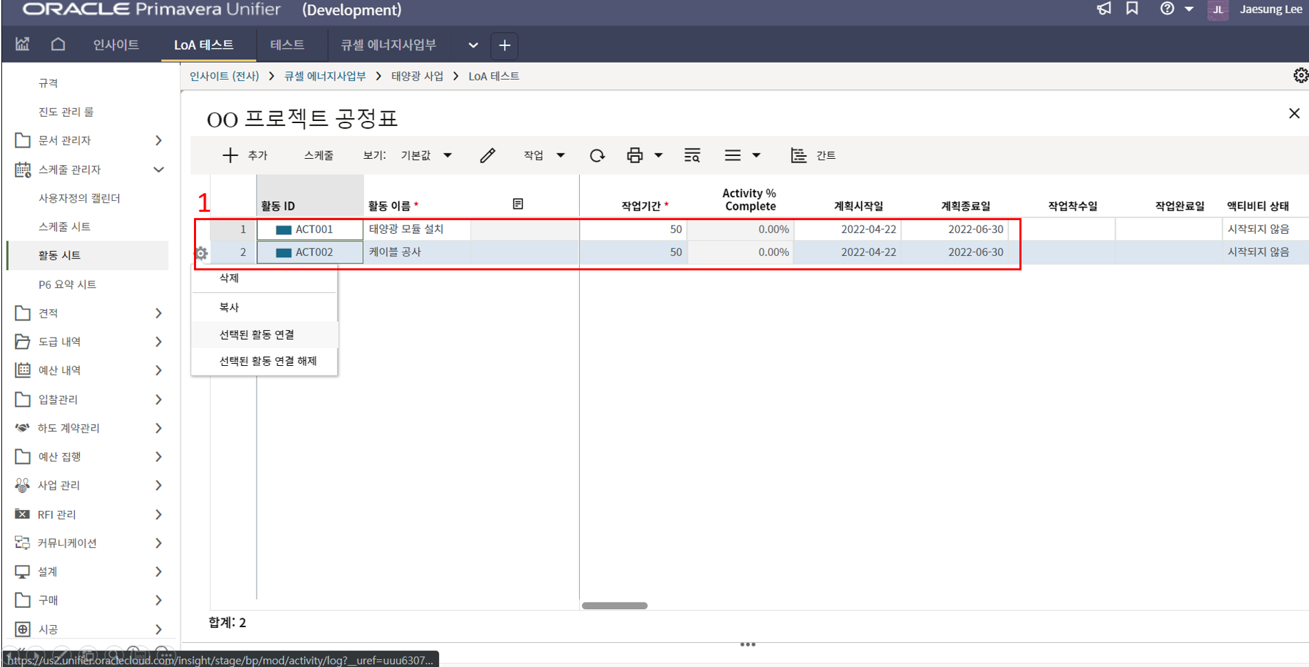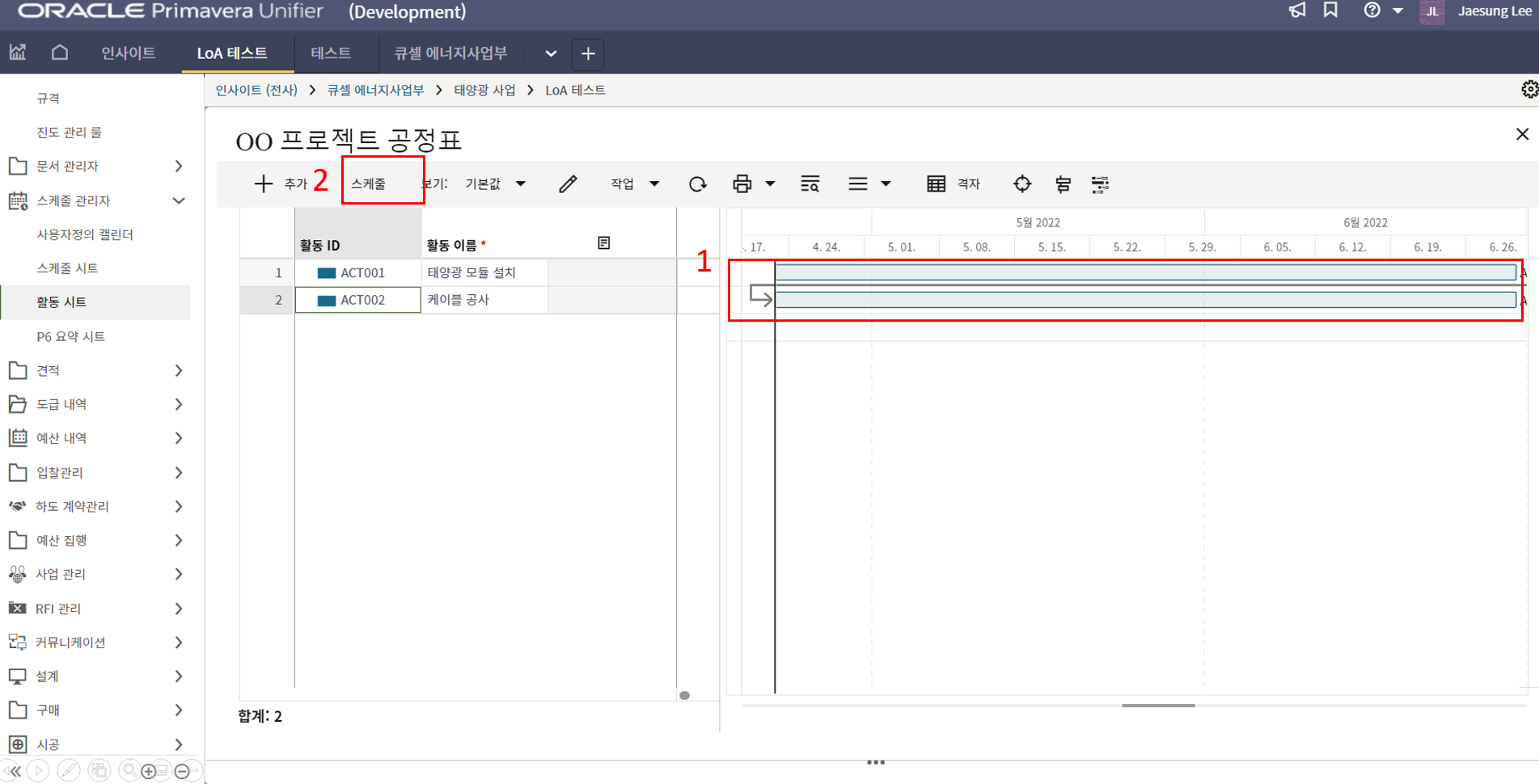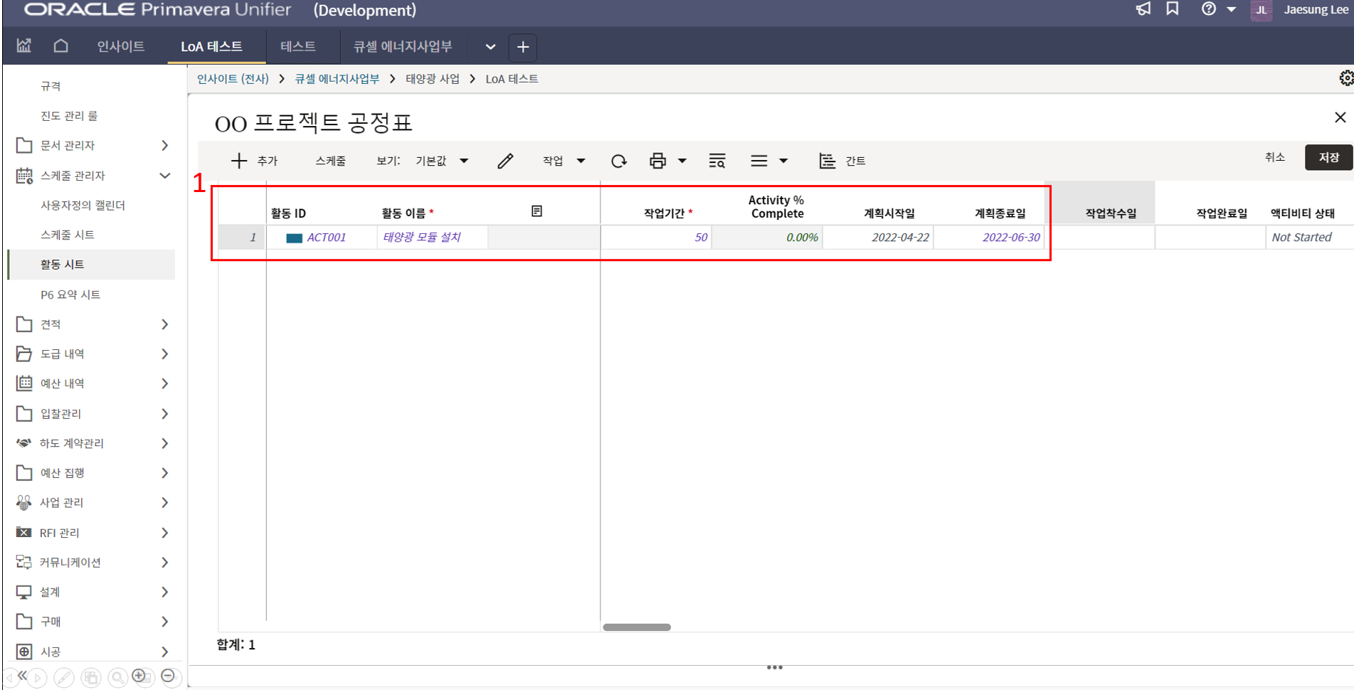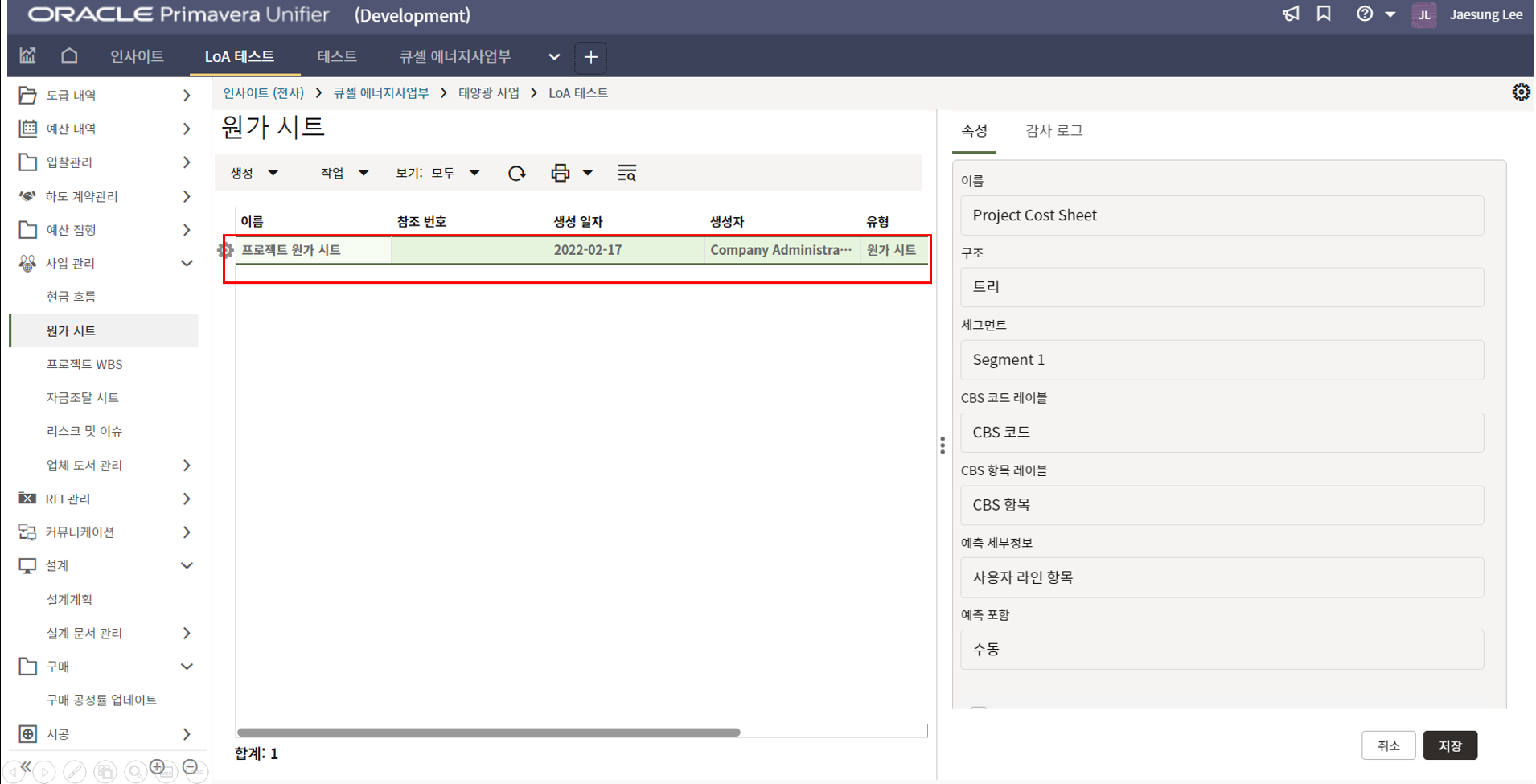 1.원가시트 및 활동시트 확인을 통해 프로젝트 원가 및 일정현황을 모니터링 할 수 있습니다.