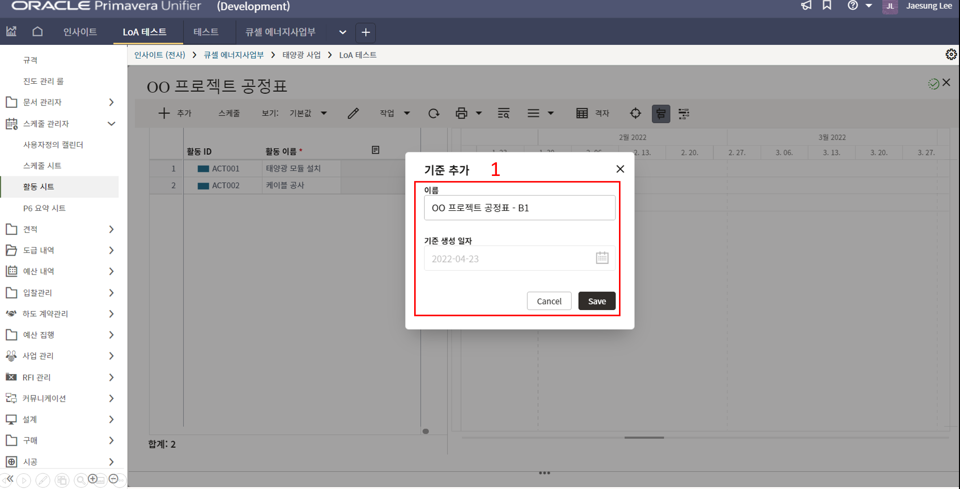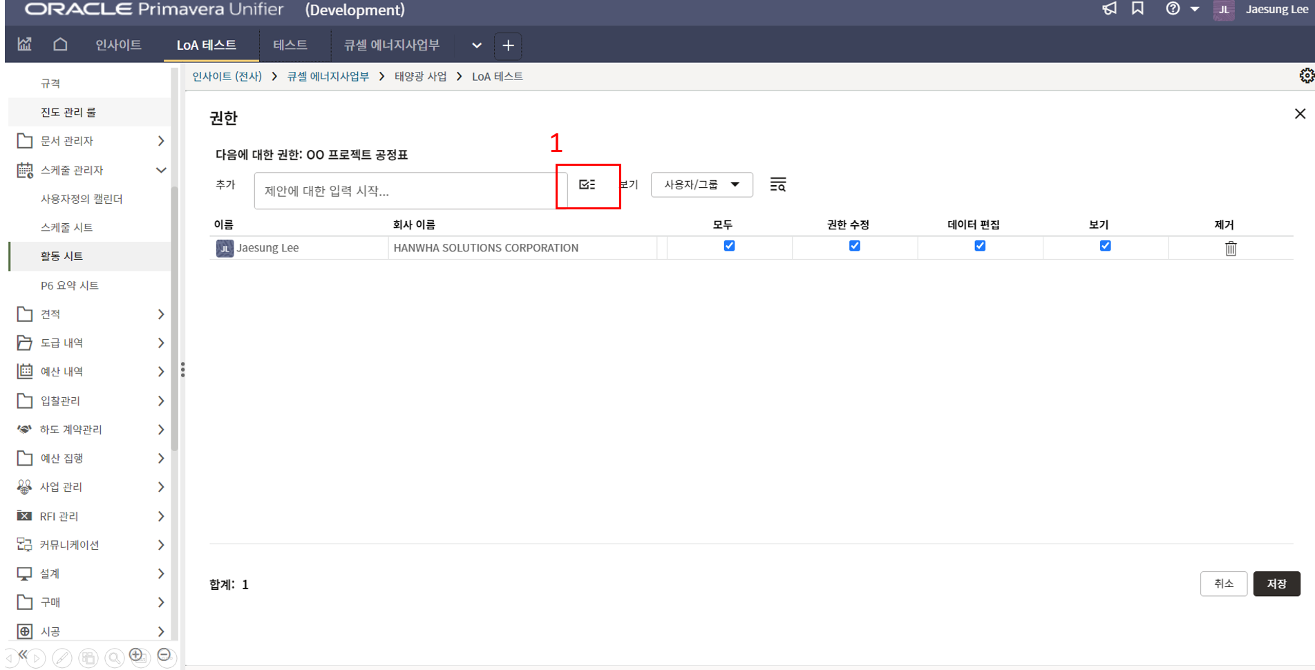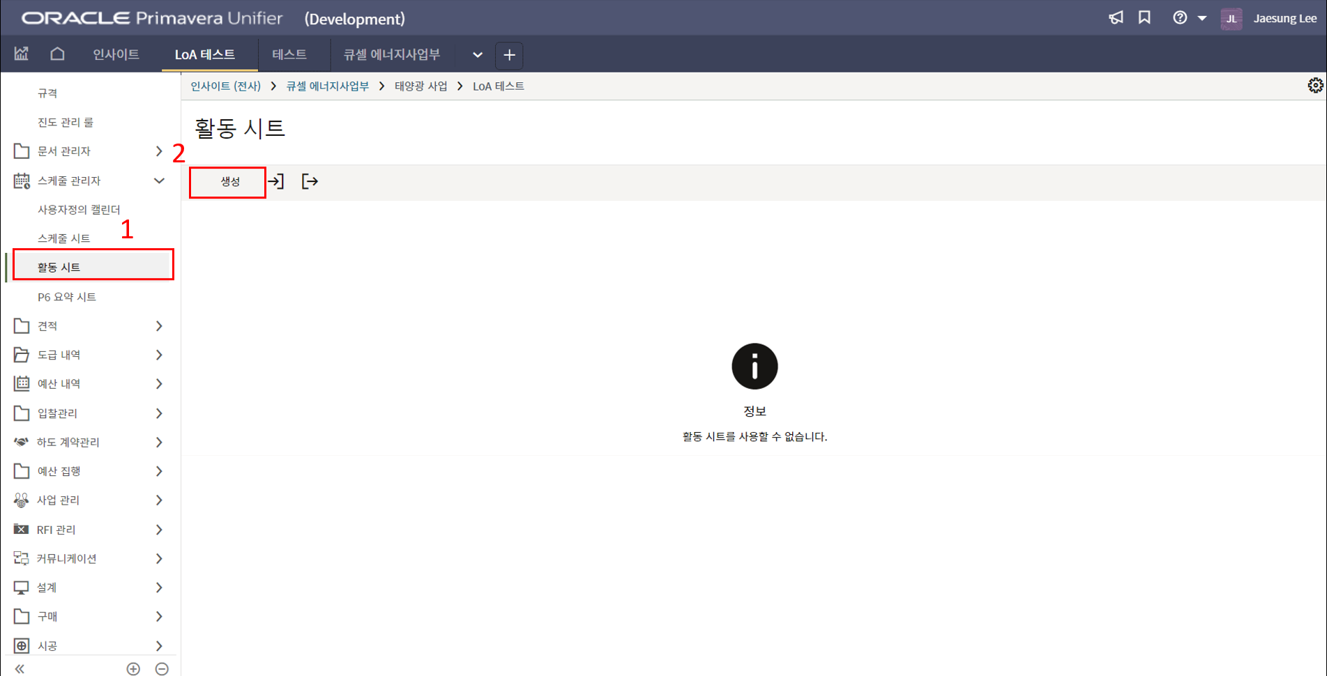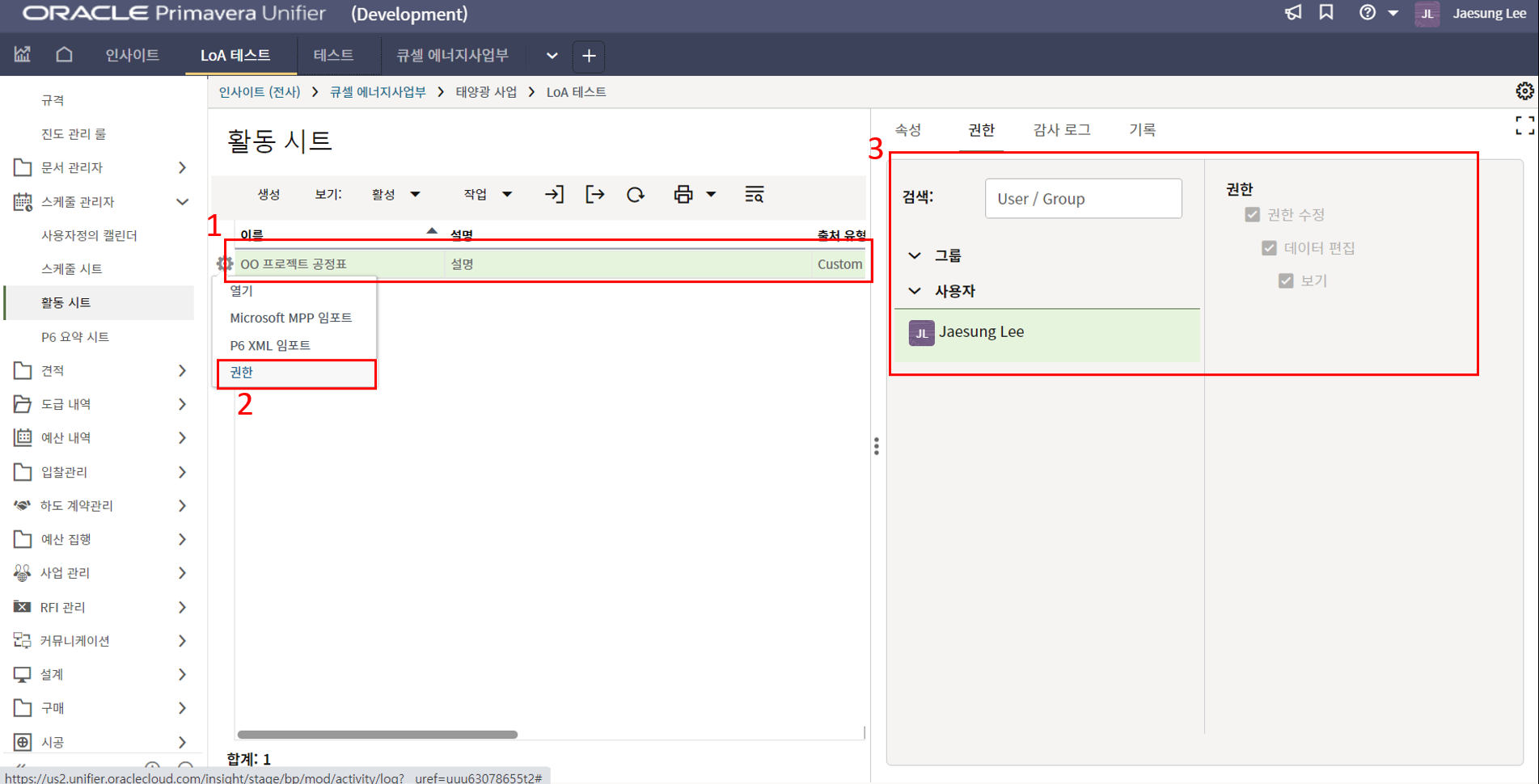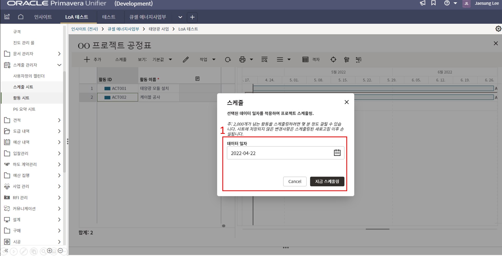 1.원가시트 및 활동시트 확인을 통해 프로젝트 원가 및 일정현황을 모니터링 할 수 있습니다.