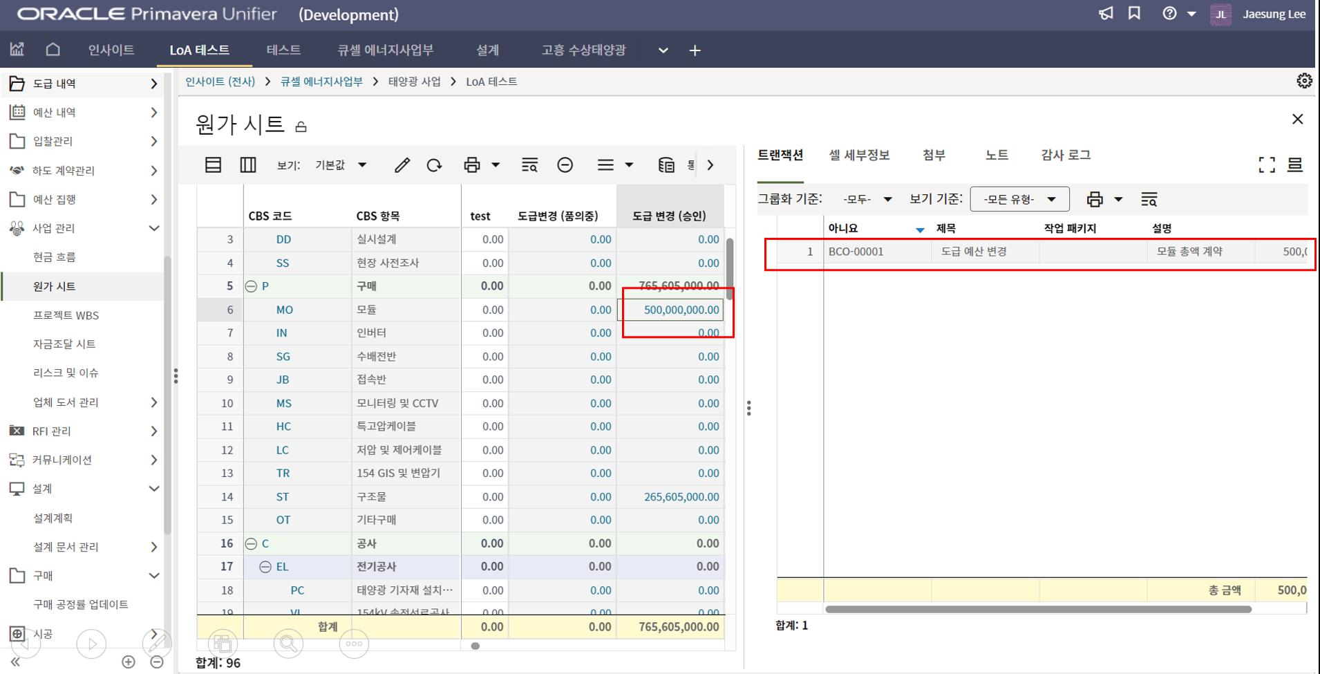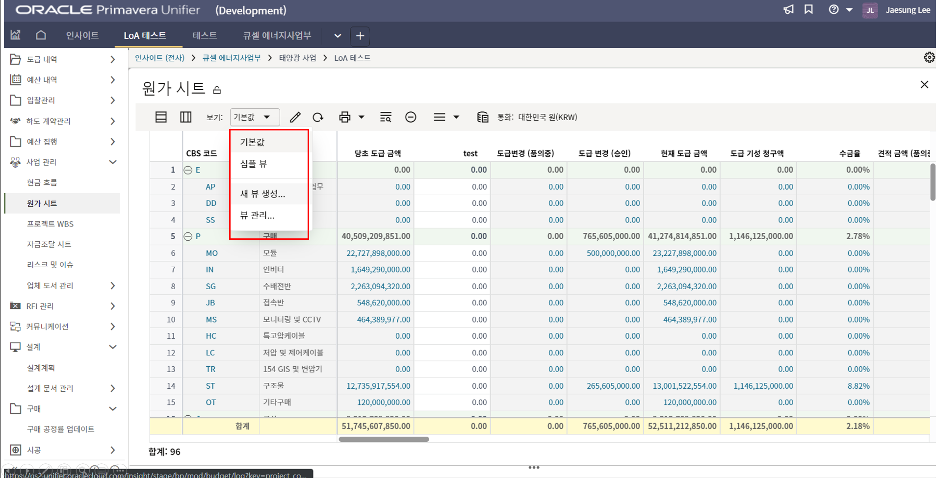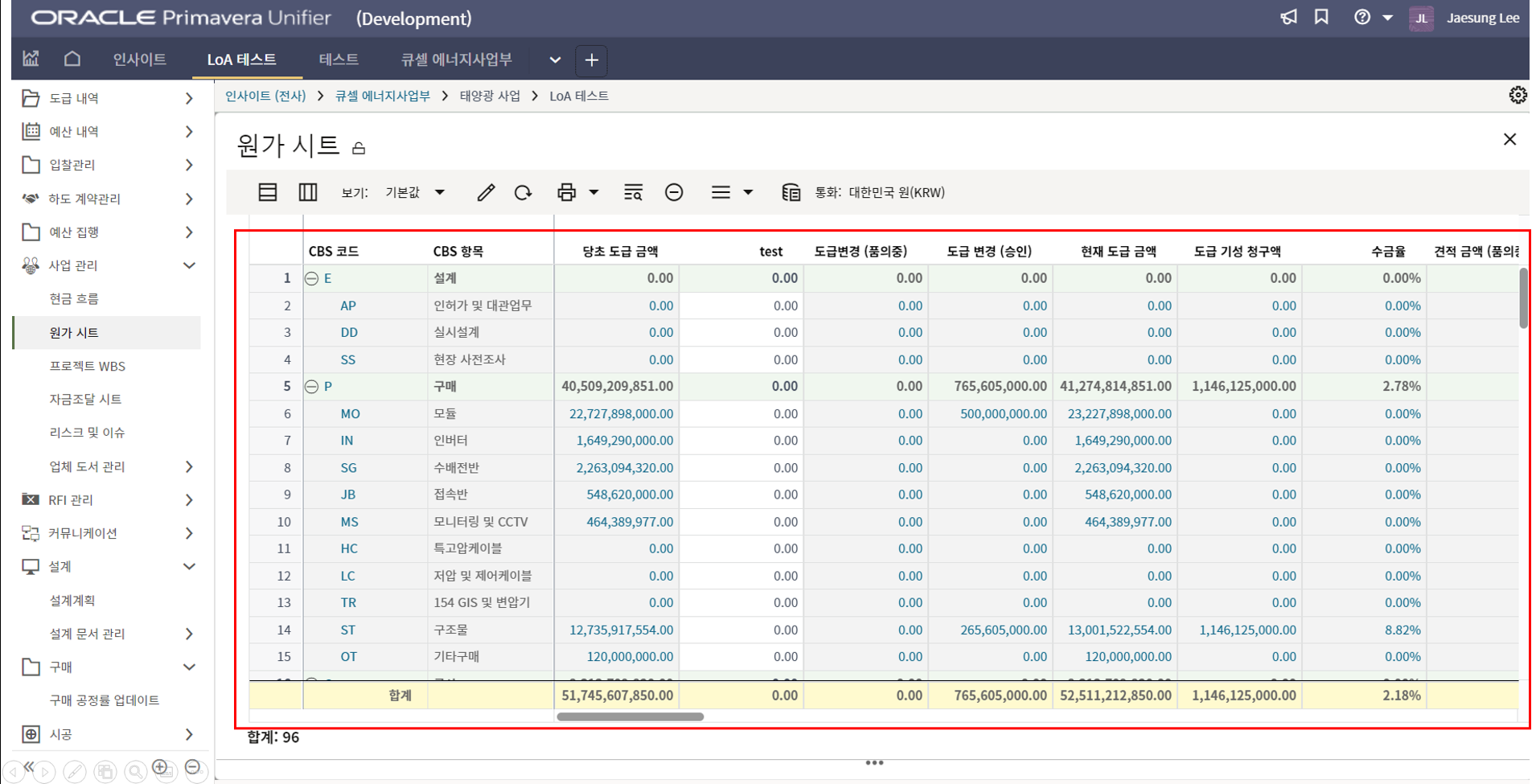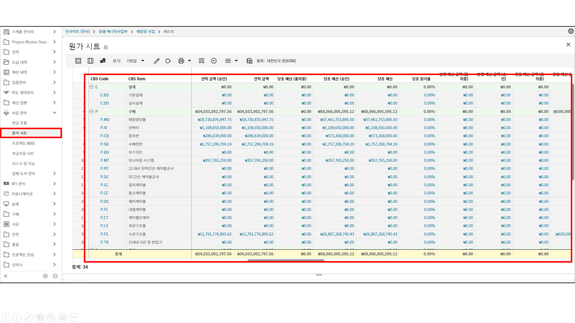2.원가시트를 통해 예산수립 단계에서, 계약, 기성지급까지 전 프로세스의 원가현황을 모니터링 할 수 있습니다.