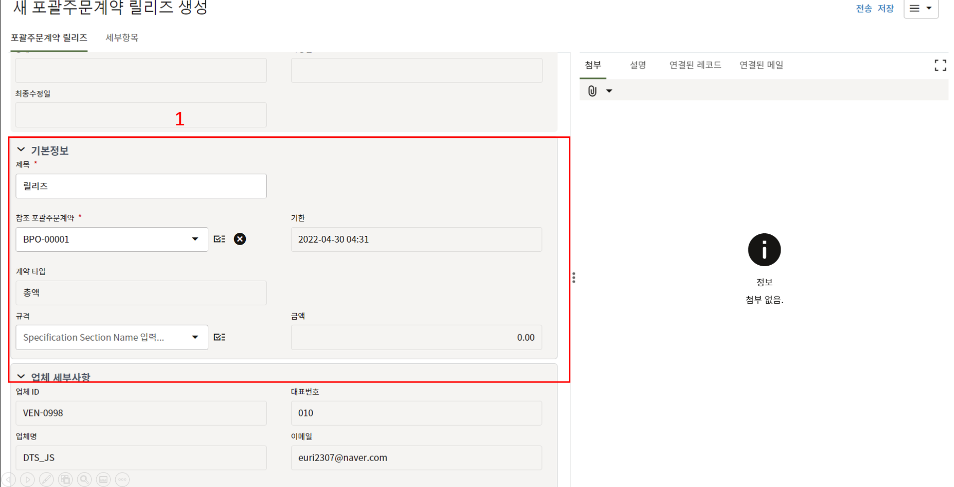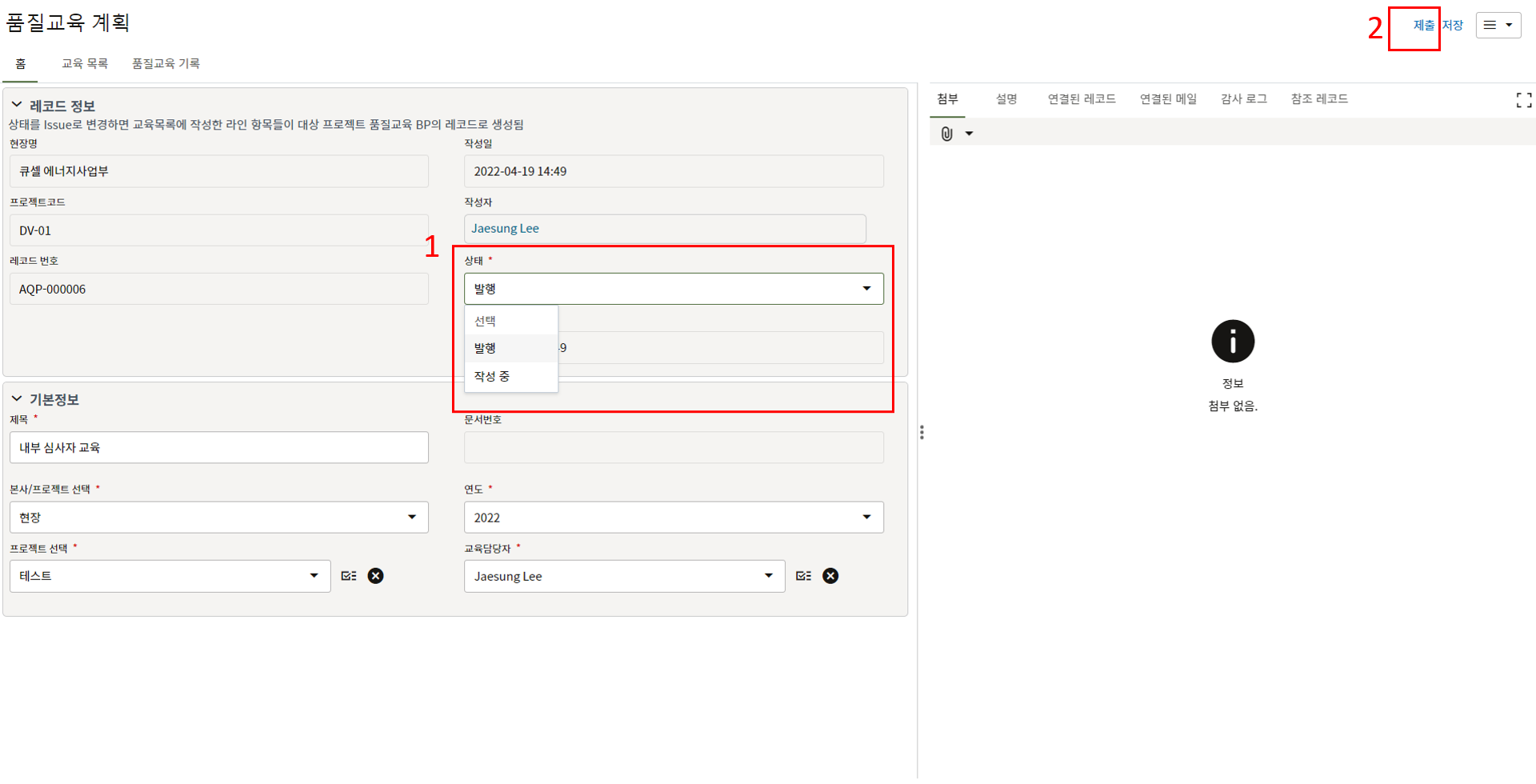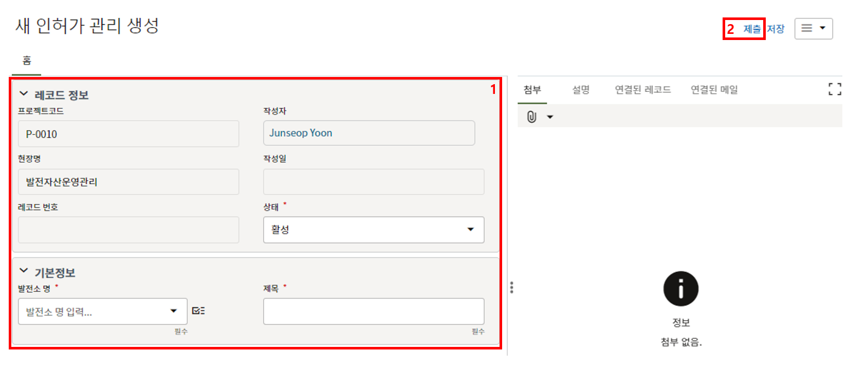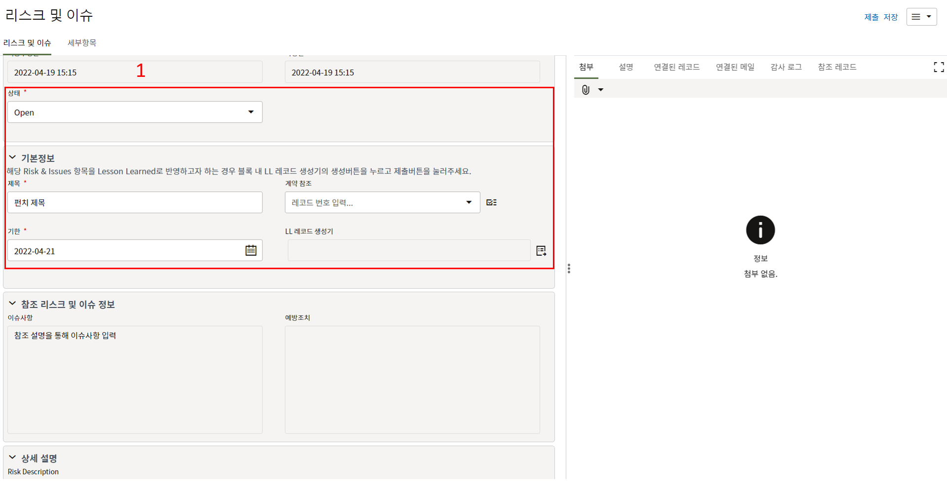 1) 제목, 상태 등 필수값을 입력합니다.
