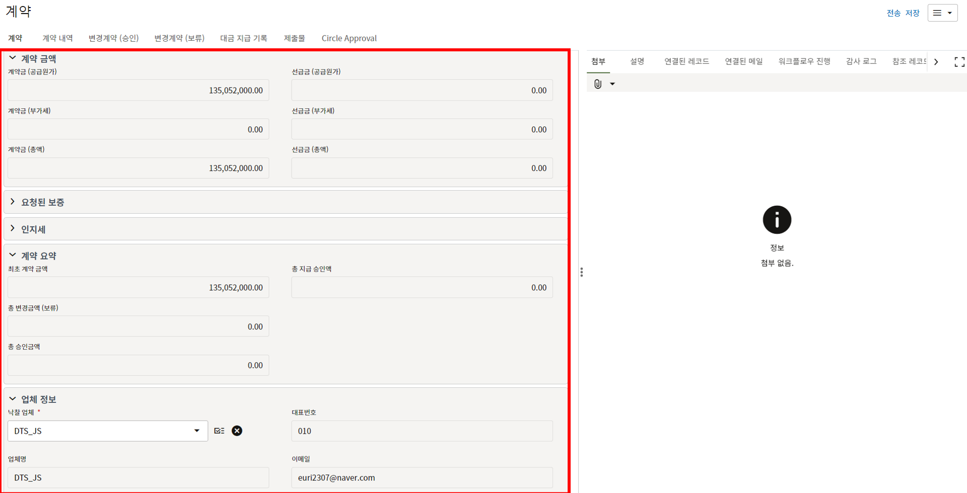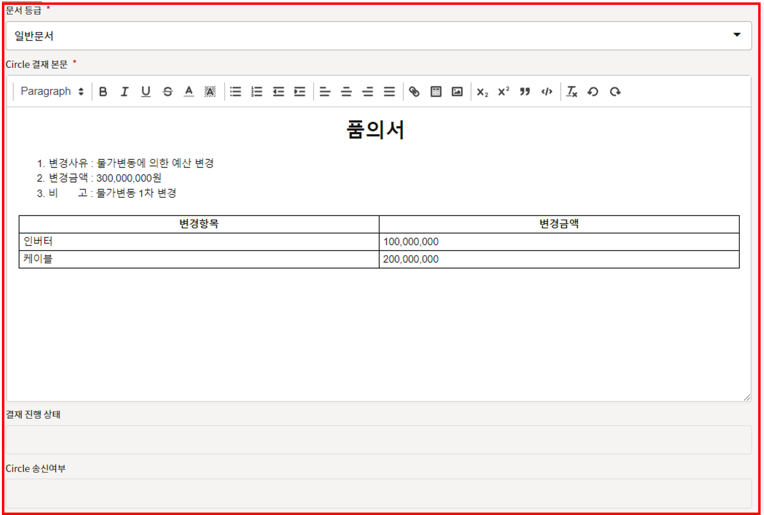입력된 정보가 Circle 전자결재 본문에 삽입됩니다.