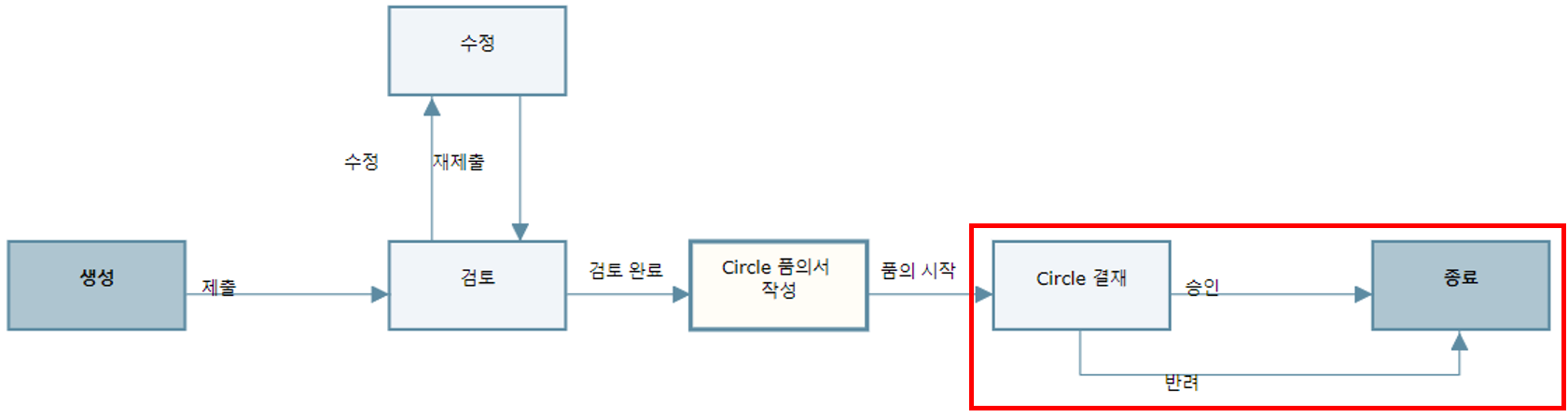 6. Circle에서의 결재상태에 따라 승인, 반려로 워크플로우가 종결 됩니다.