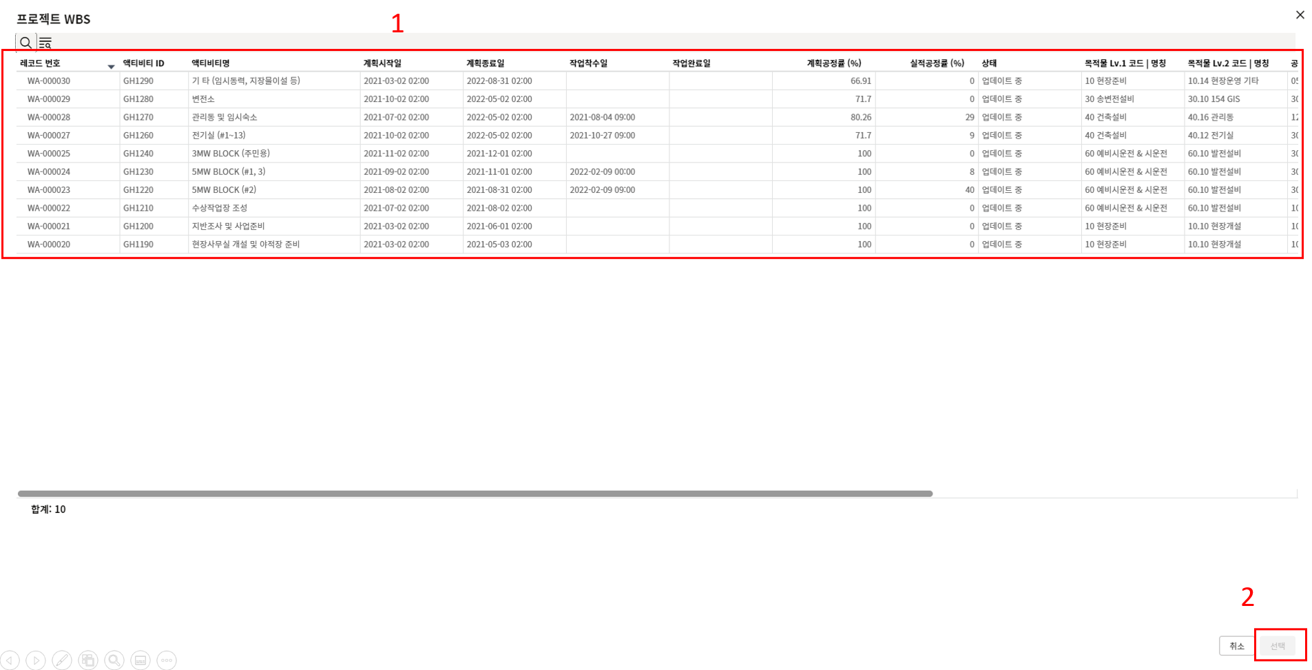1. 표준 목적물 코드 메뉴는 프로젝트 WBS를 생성을 위한 '표준 목적물 코드'를 등록하는 메뉴입니다.