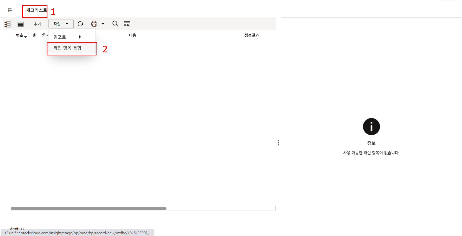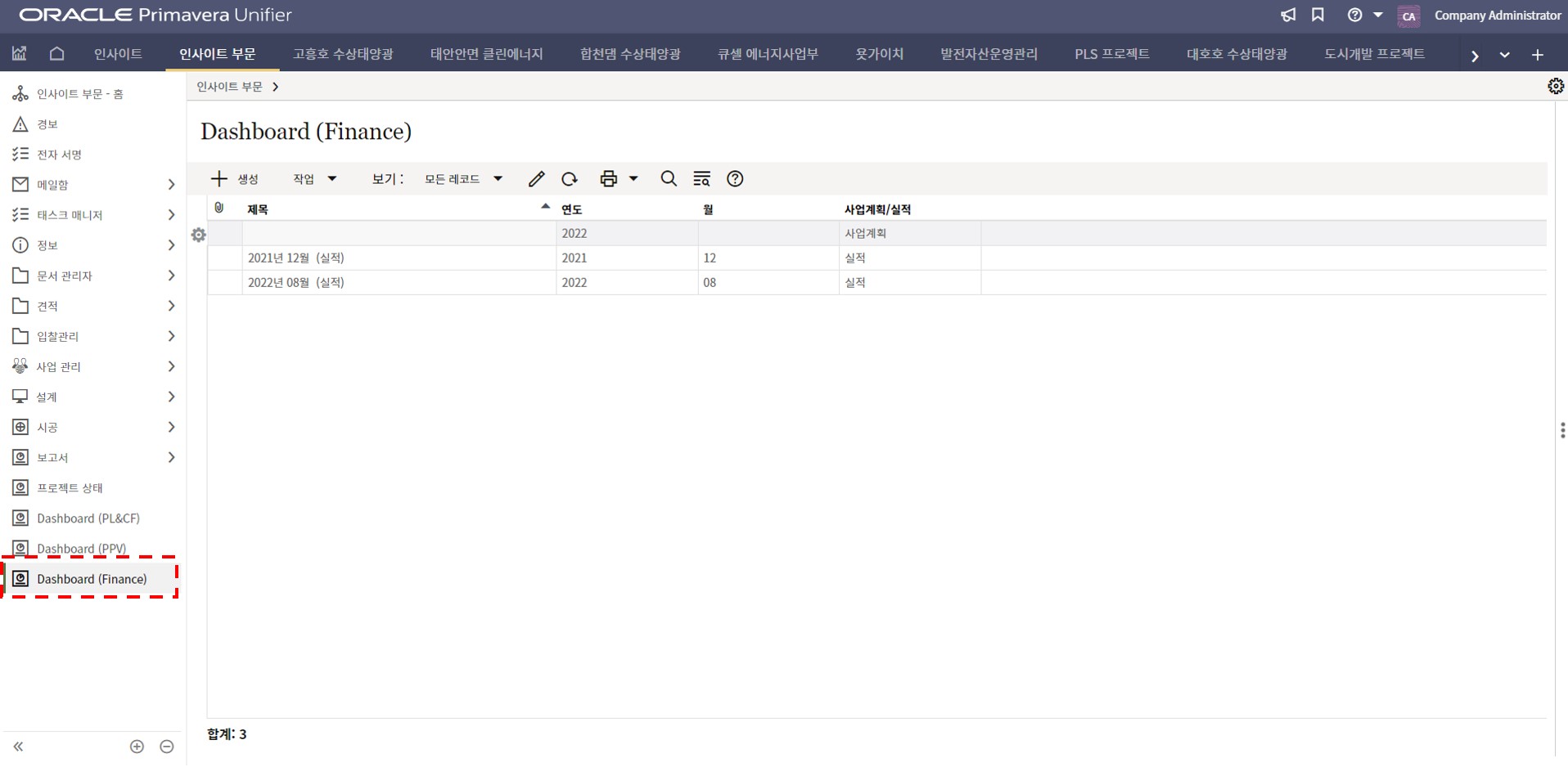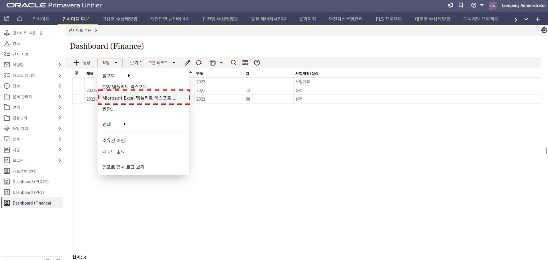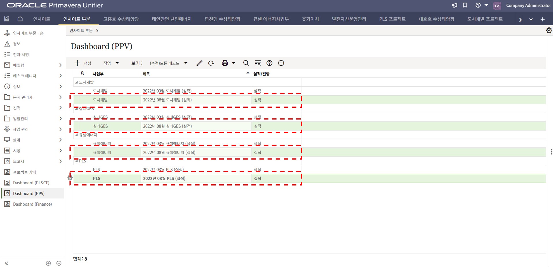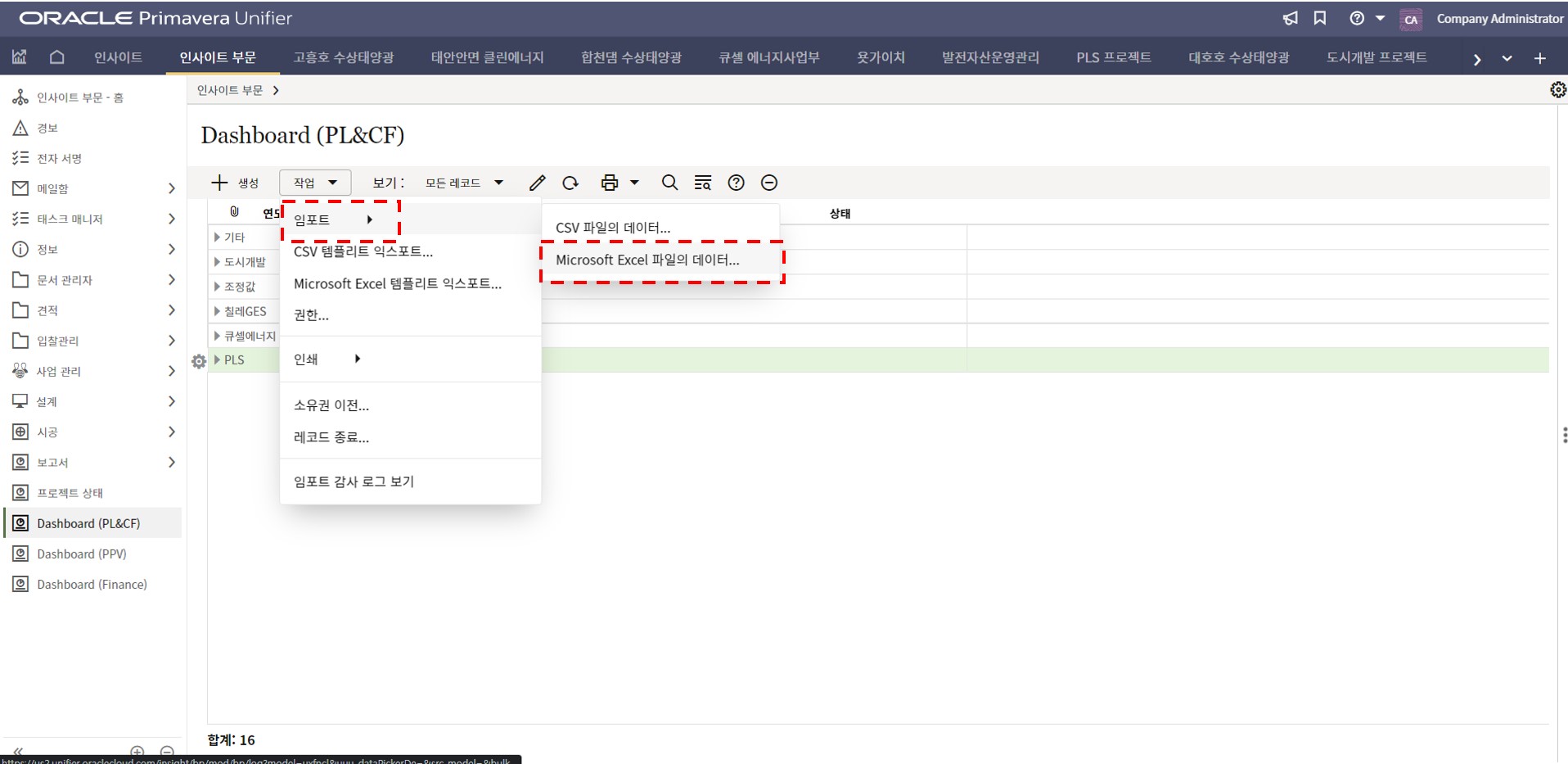 1. 인사이트 부문에서 프로젝트 현황 메뉴를 선택합니다.