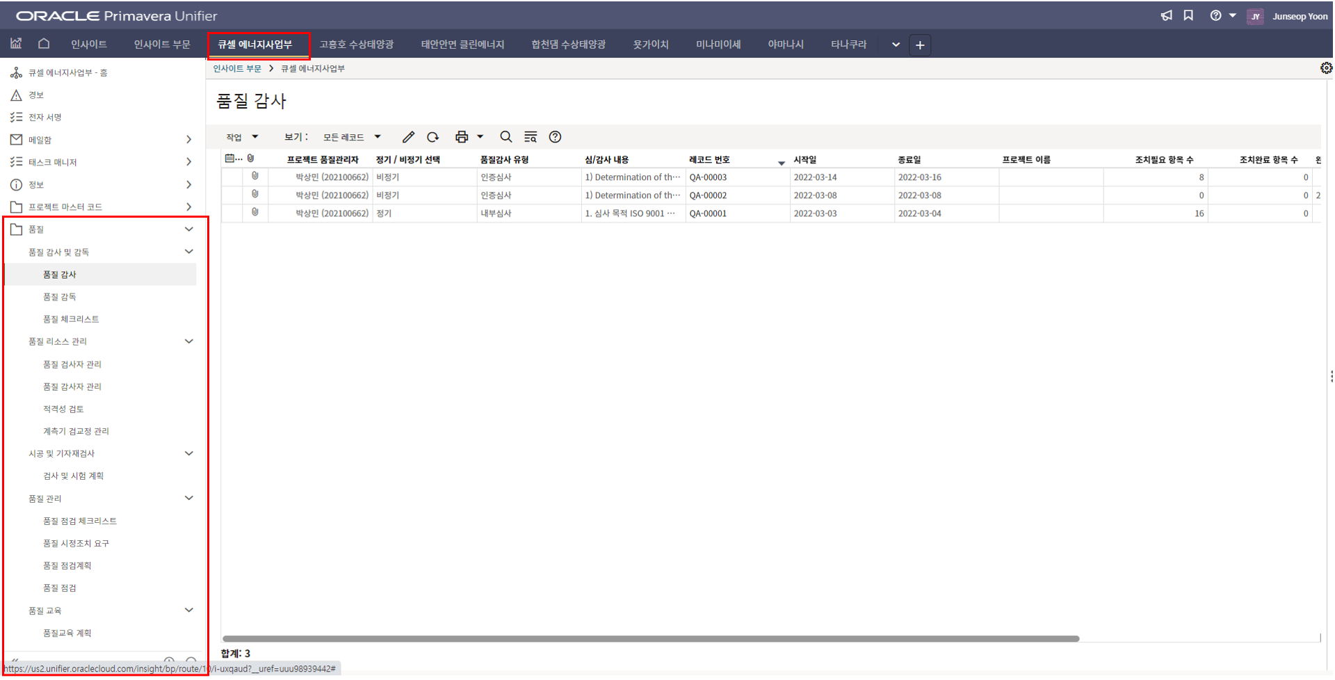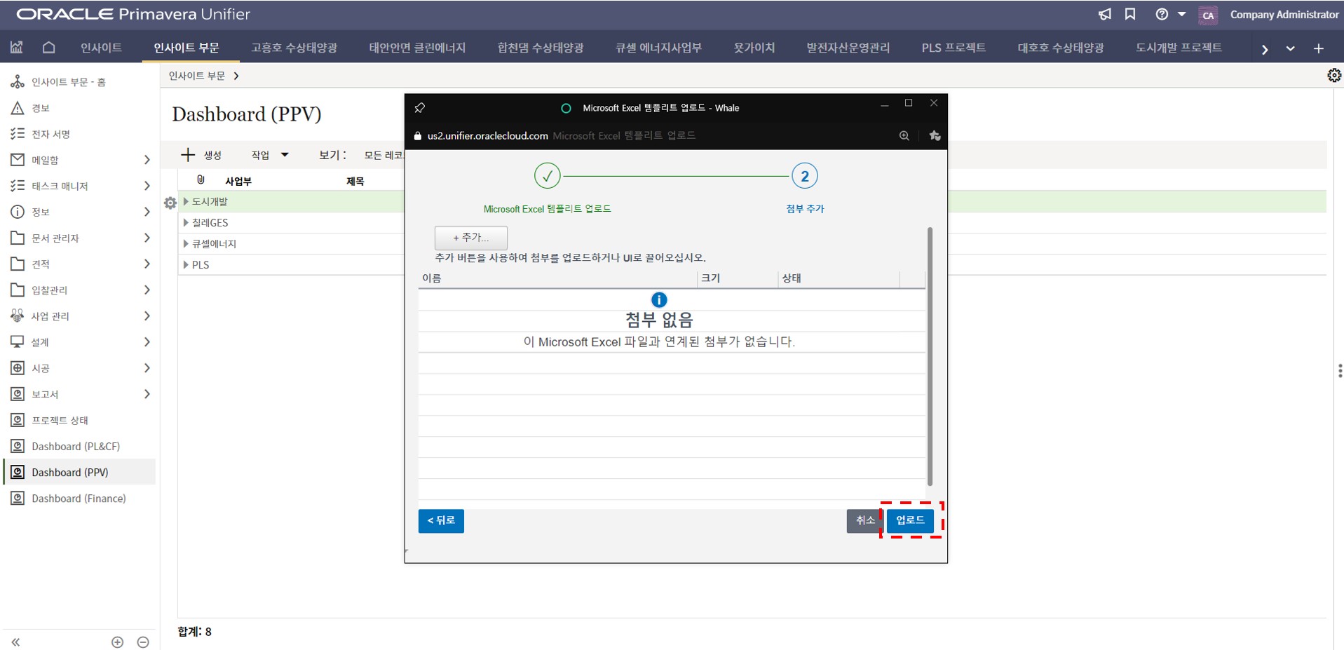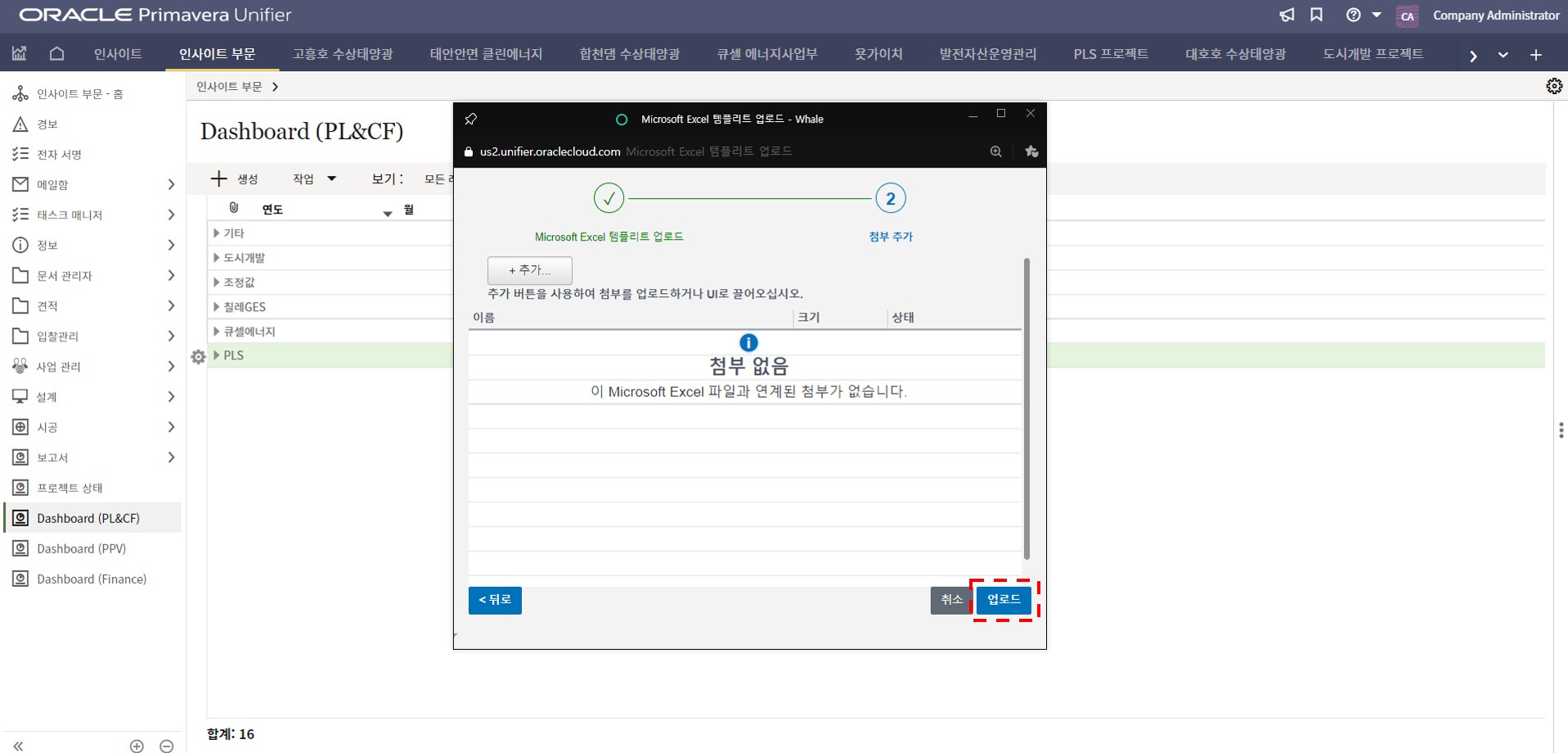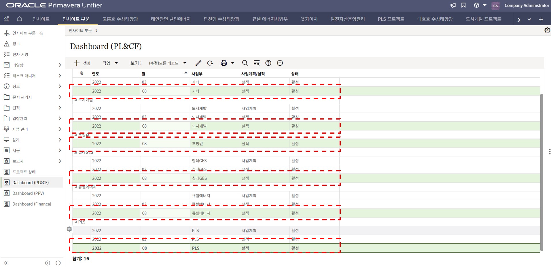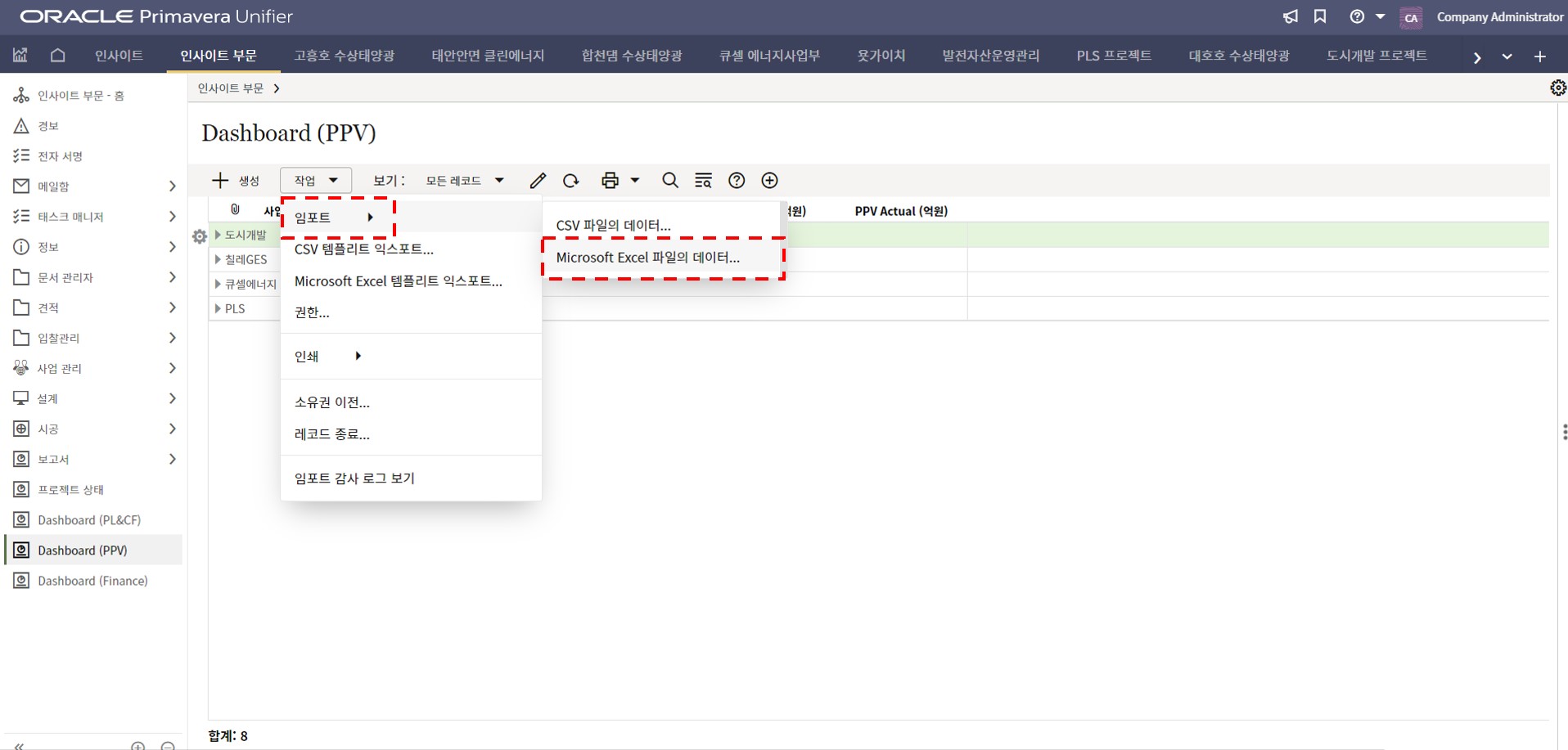 1. 인사이트 부문에서 프로젝트 현황 메뉴를 선택합니다.