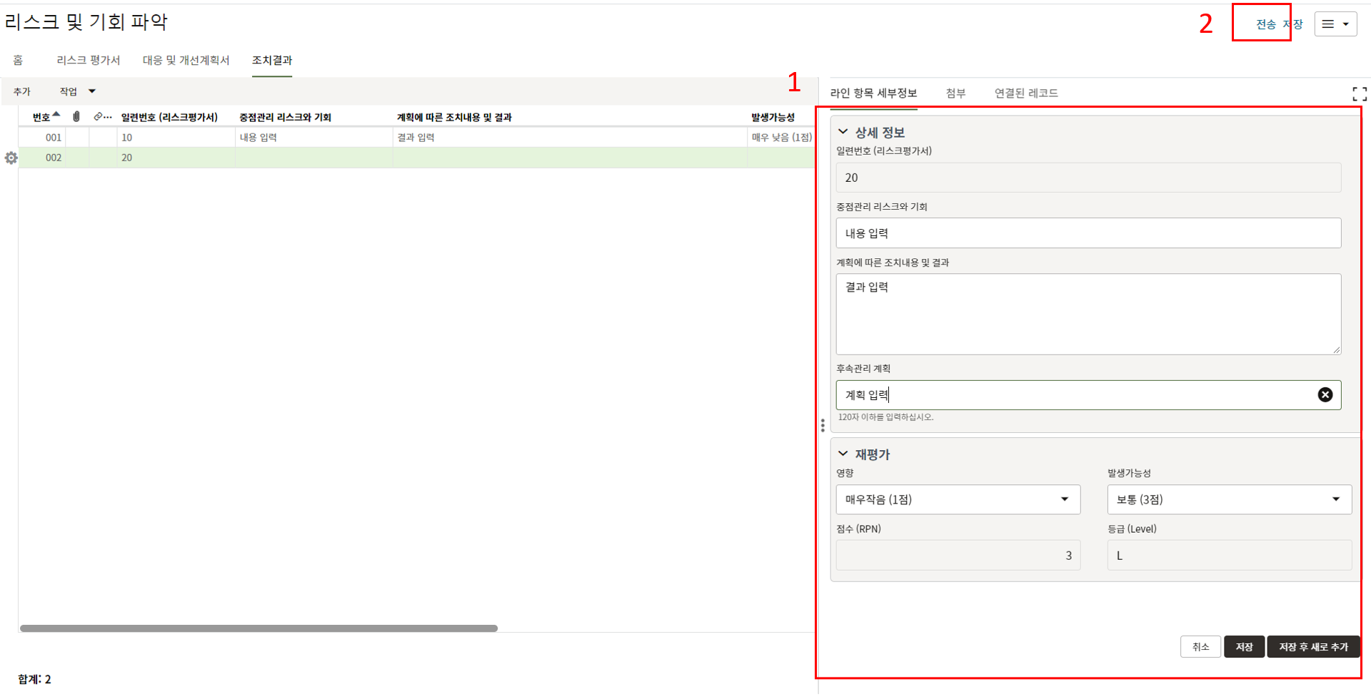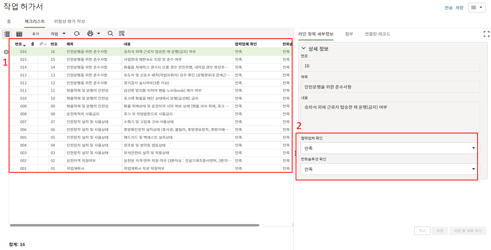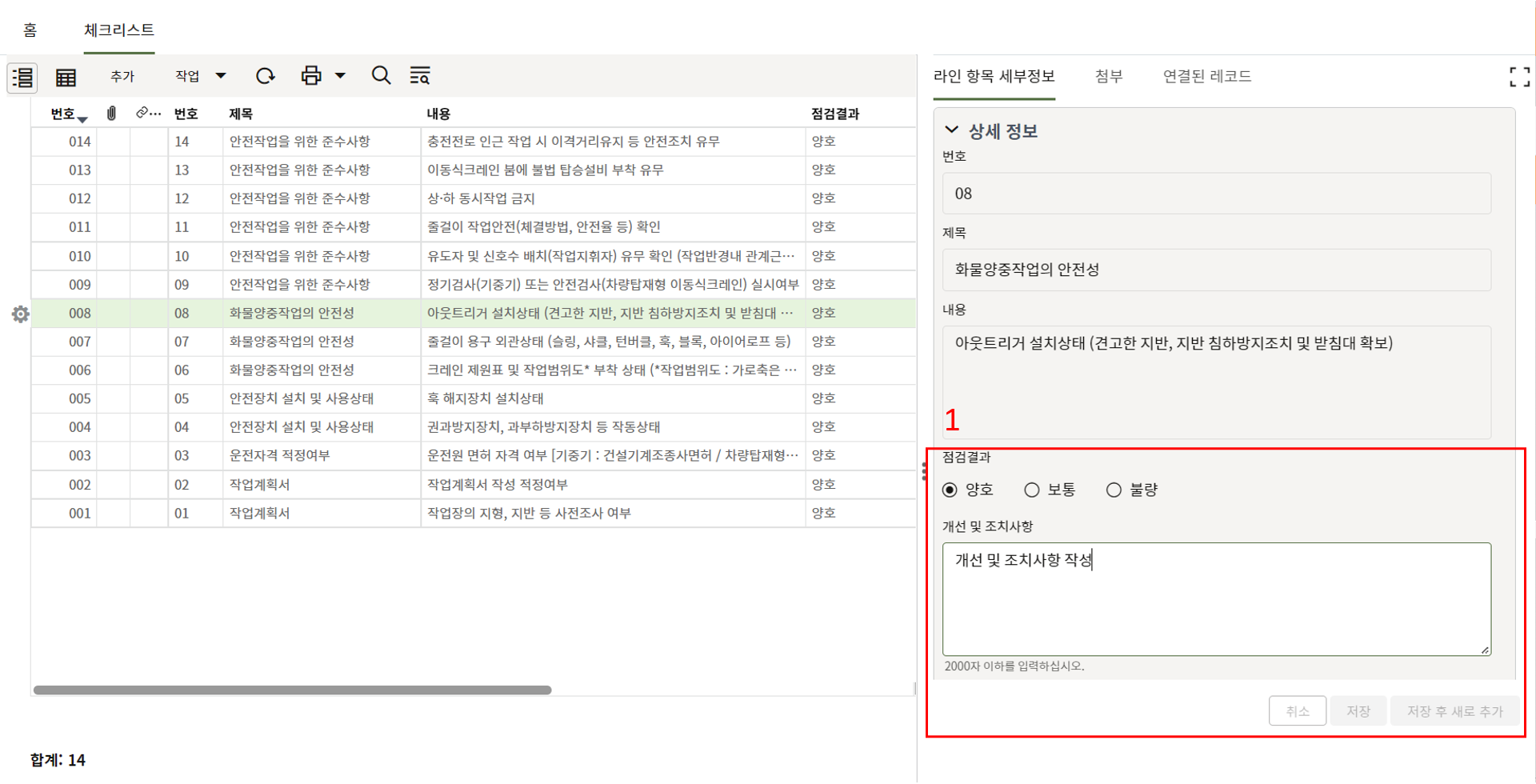 6. "세부항목" 탭에서 사진 별 조치결과를 업데이트 합니다.