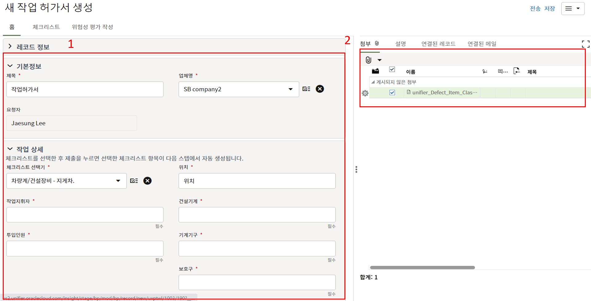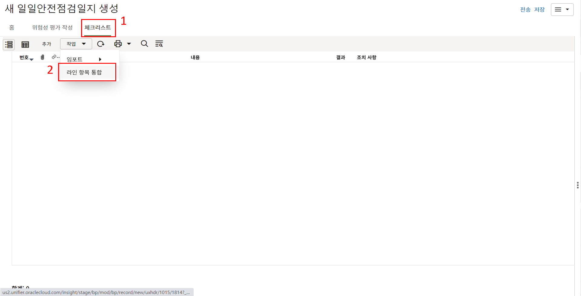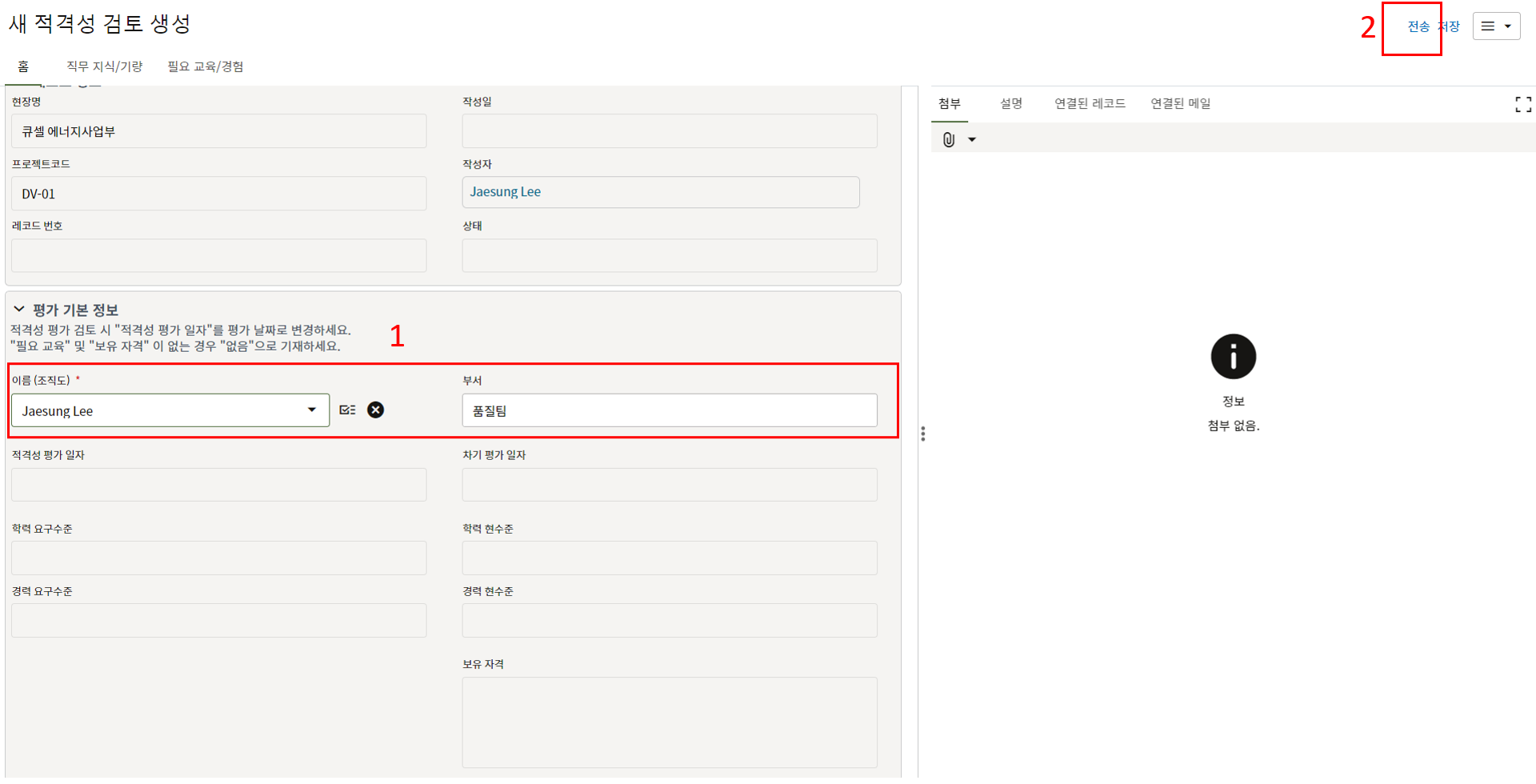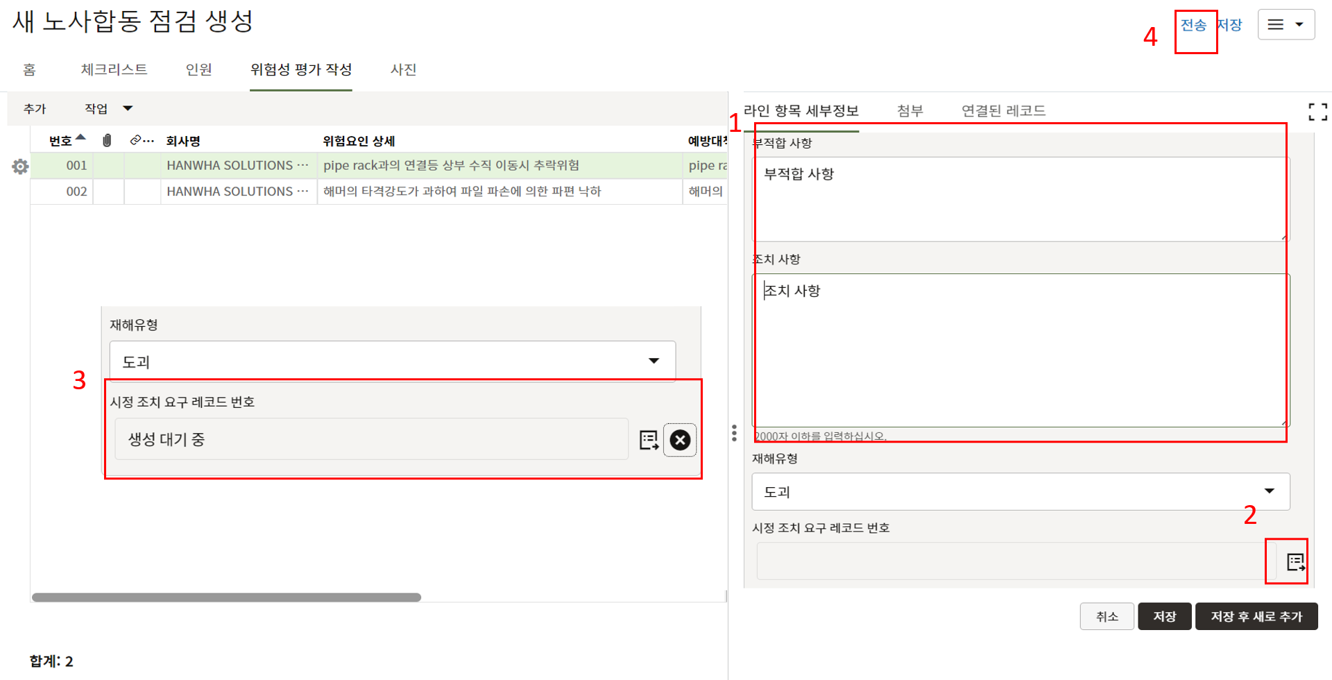 3. 상위 양식을 채운 후 한화솔루션 안전 팀장 검토를 위해 전송합니다.
