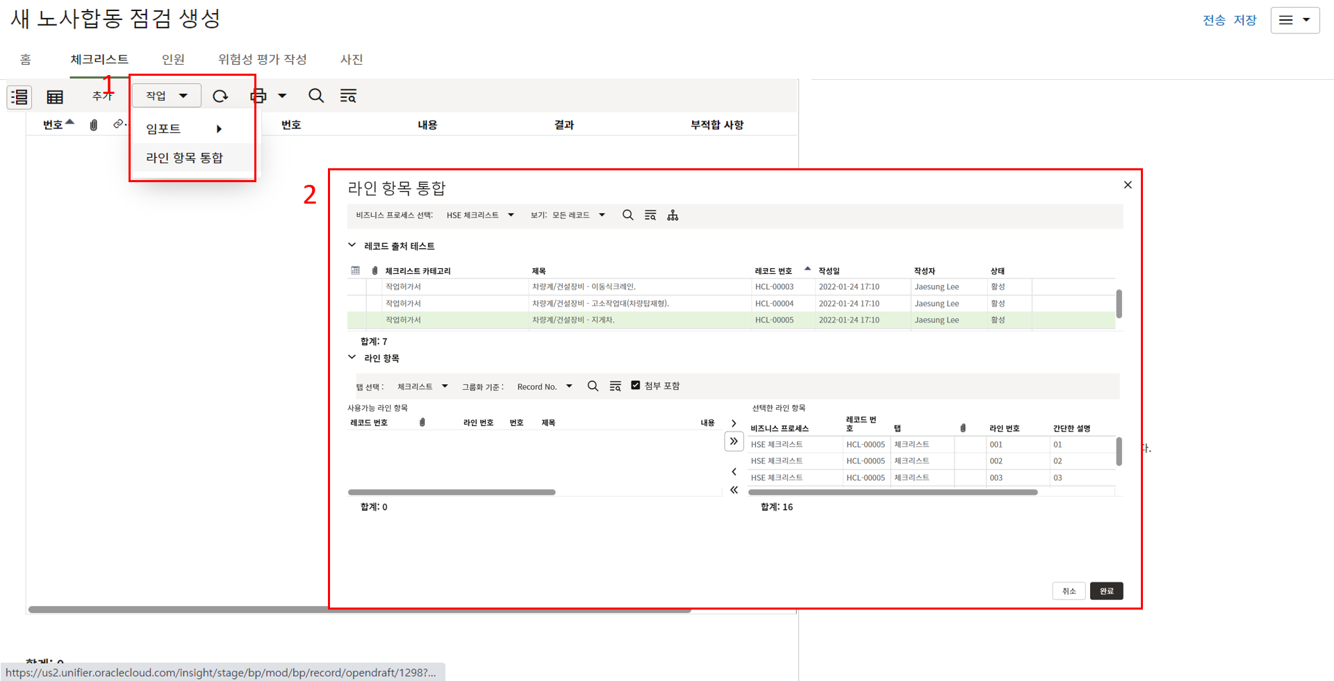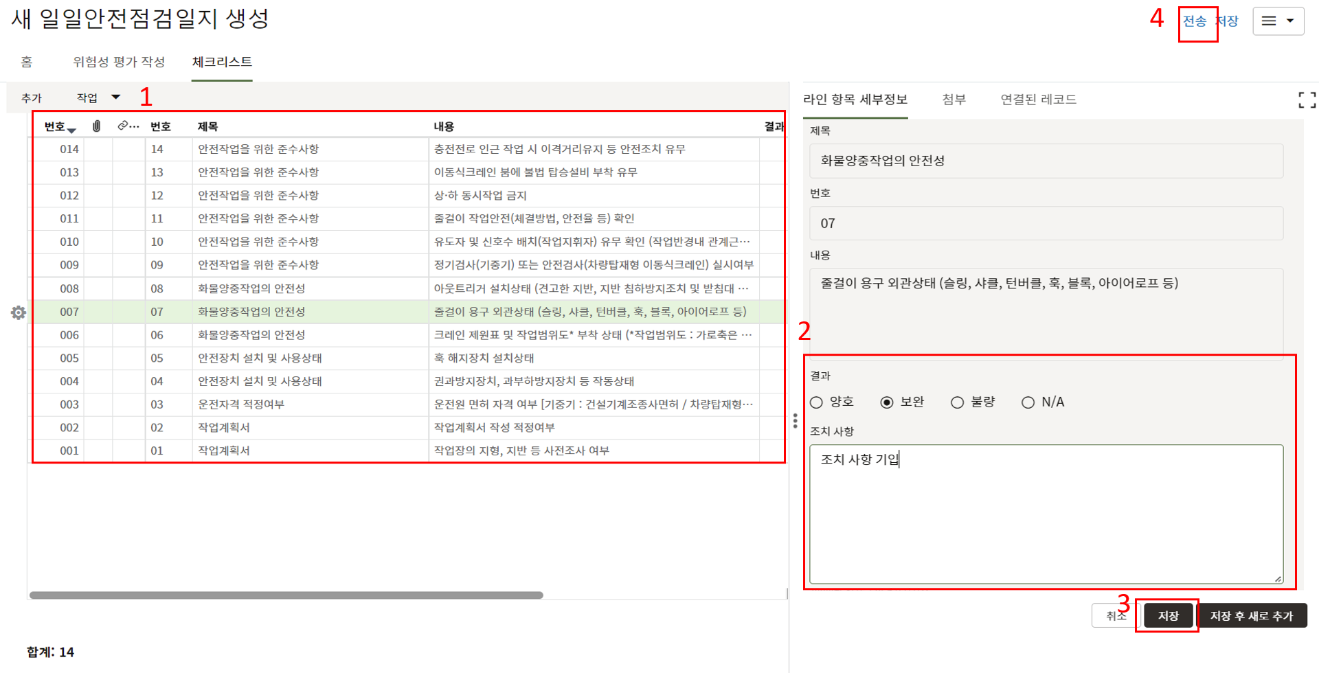 내용 작성이 완료되면 검사목록 작성을 위해 다음 스텝으로 전송합니다.