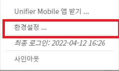 1. 유니파이어 화면 좌측 상단의 사용자 이름을 클릭합니다.