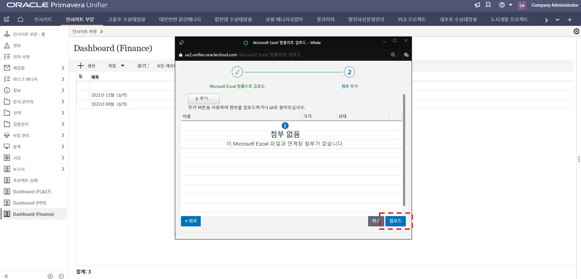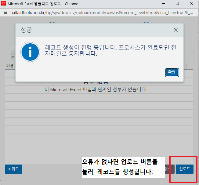 6. 오류가 없다면 업로드 버튼이 활성화되고, 업로드 버튼을 클릭하여 임포트를 완료합니다.