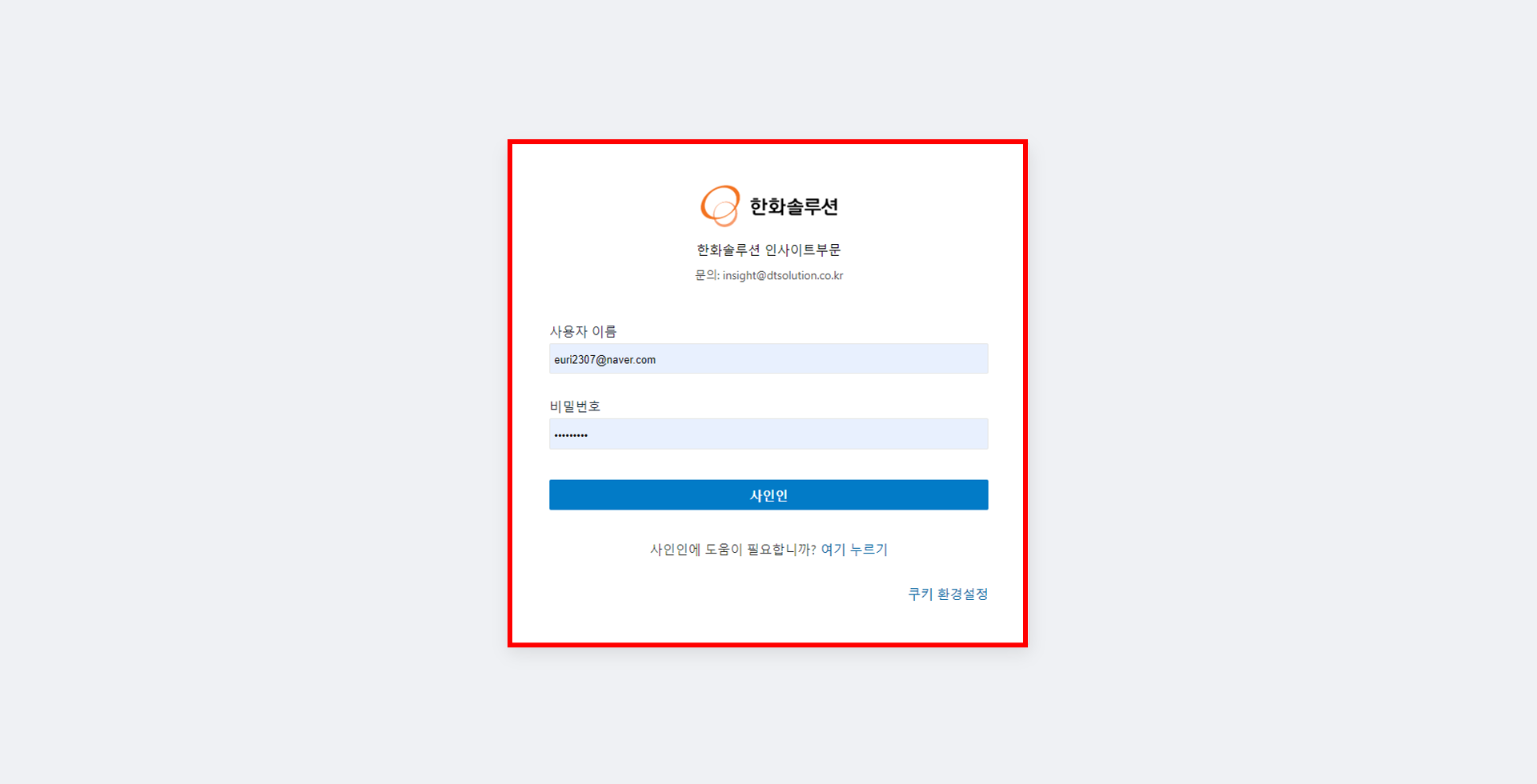 6. 설정을 완료되었으면, 다시 로그인 화면으로 돌아가 설정하신 ID/ 비밀번호를 입력하고 로그인합니다.