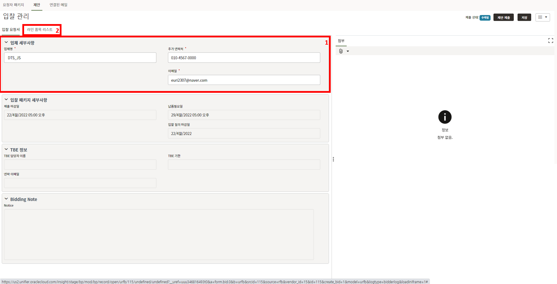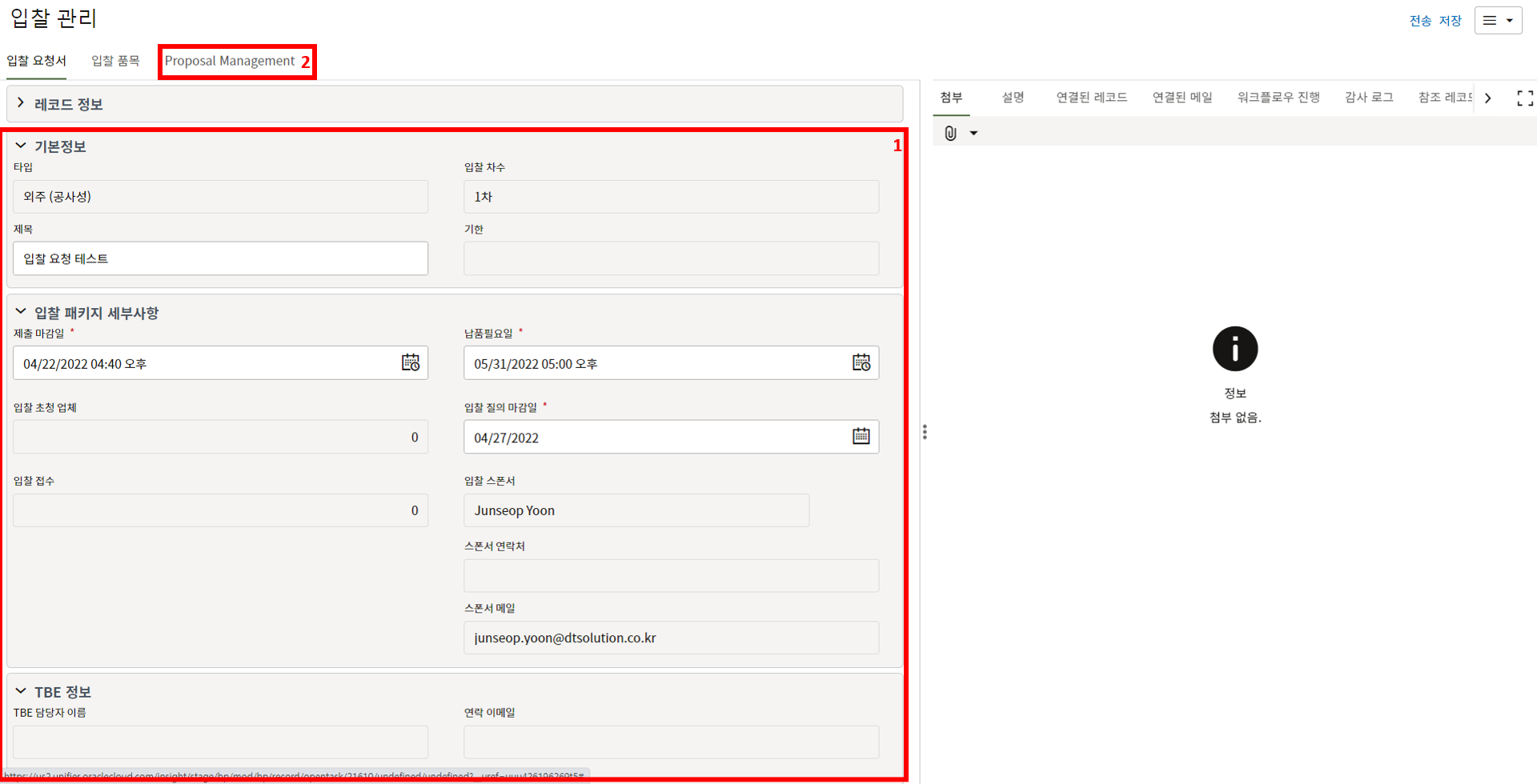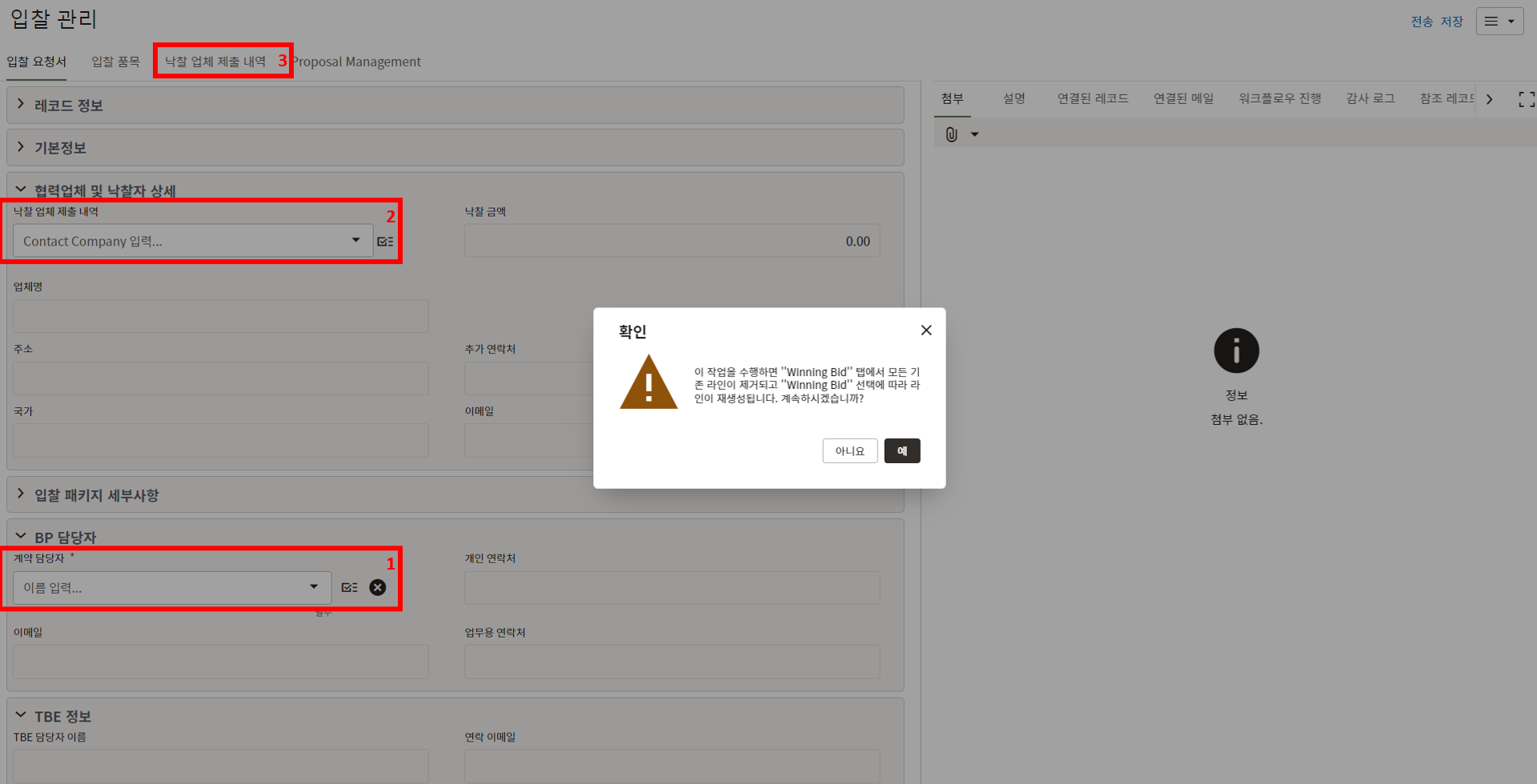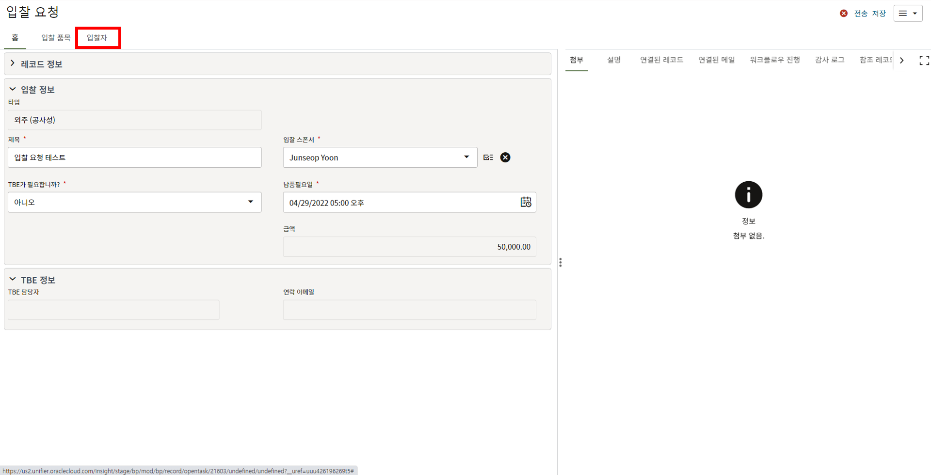 ("입찰 요청" 시 TBE가 필요하다고한 경우 레코드가 생성되어 있습니다.)