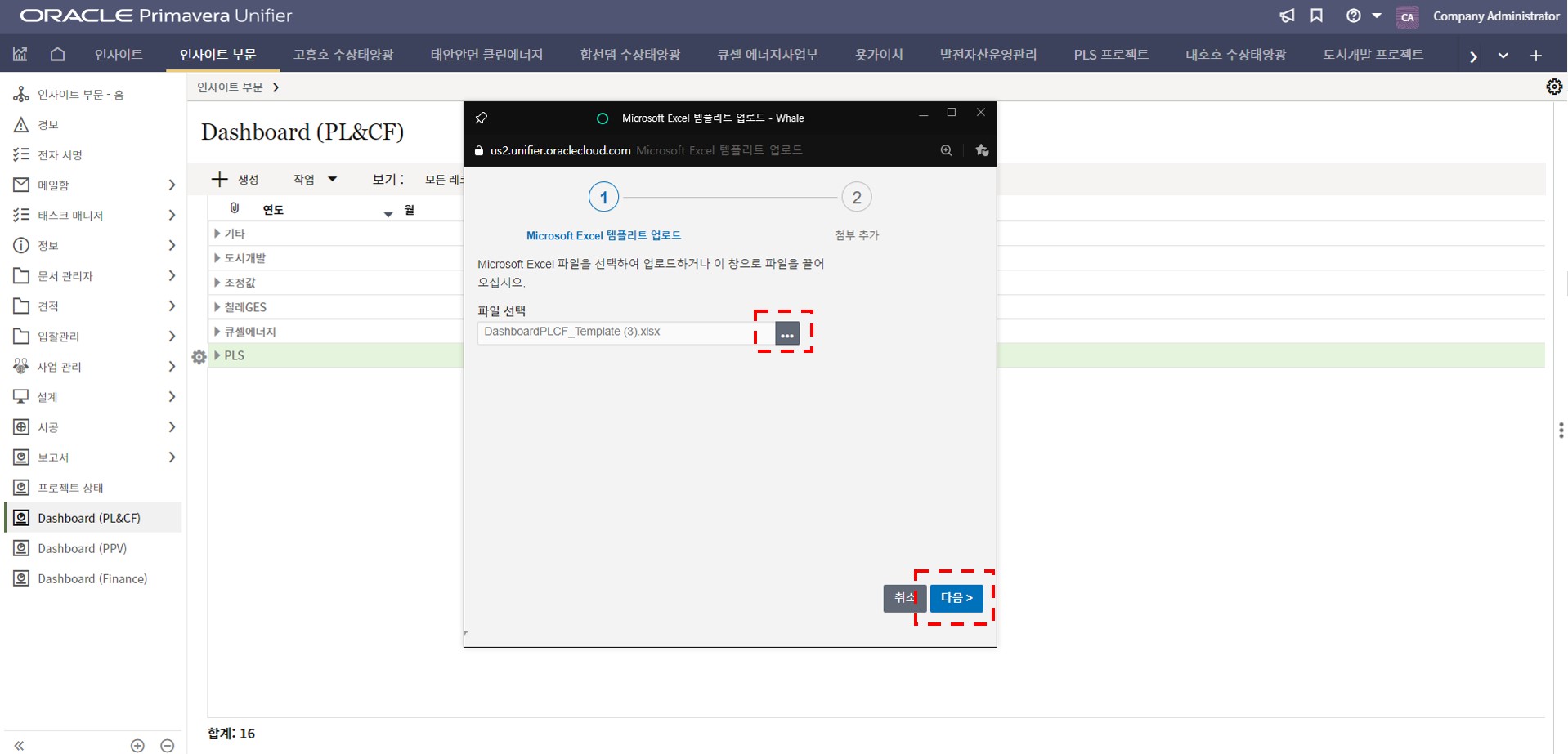 5. 작성한 파일을 업로드한 뒤, "다음" 버튼을 클릭합니다.