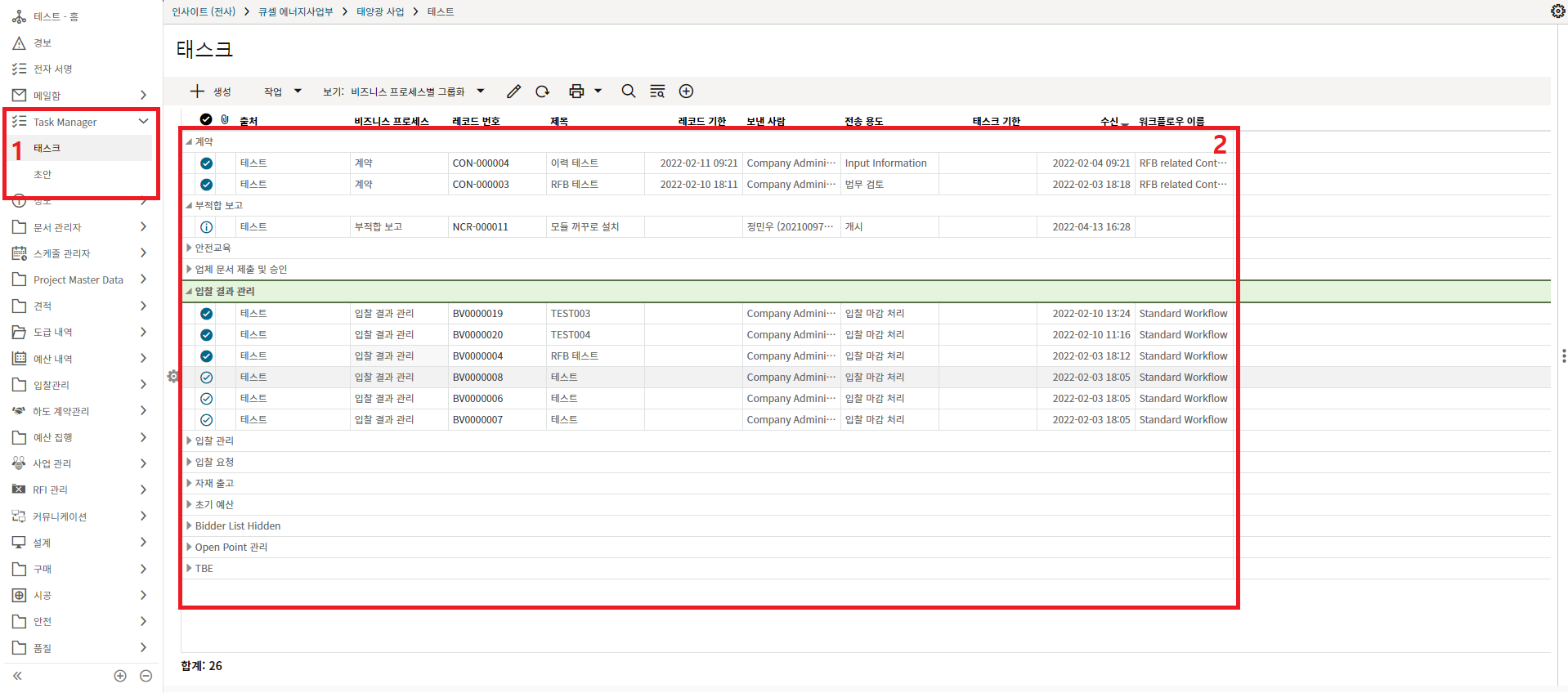 2. 태스크 메뉴에서는 레코드를 하나씩 클릭하여 일반적인 방법으로 태스크를 완료하거나