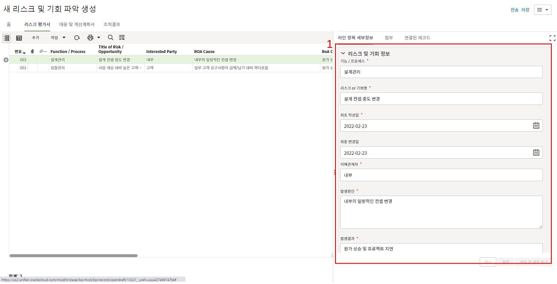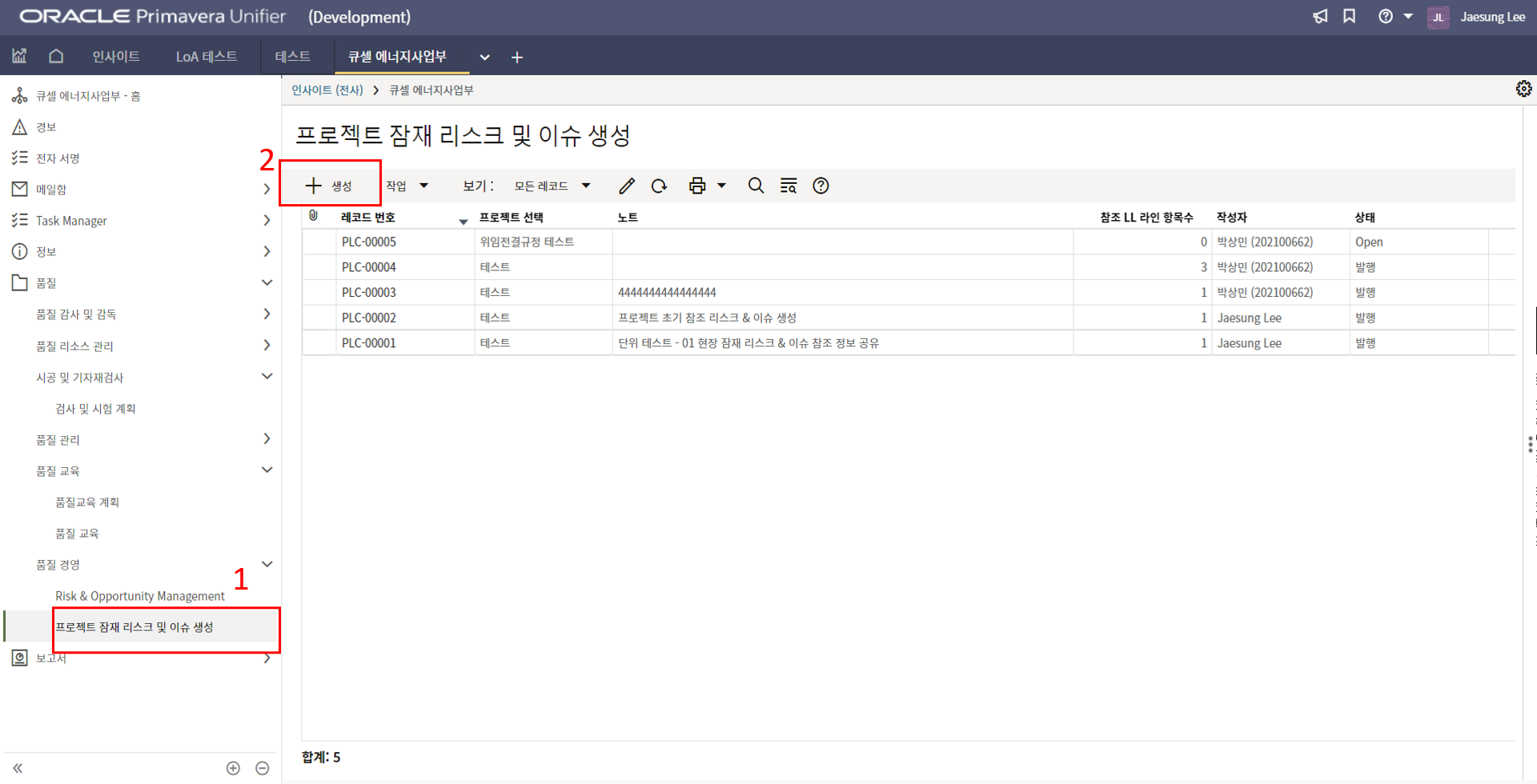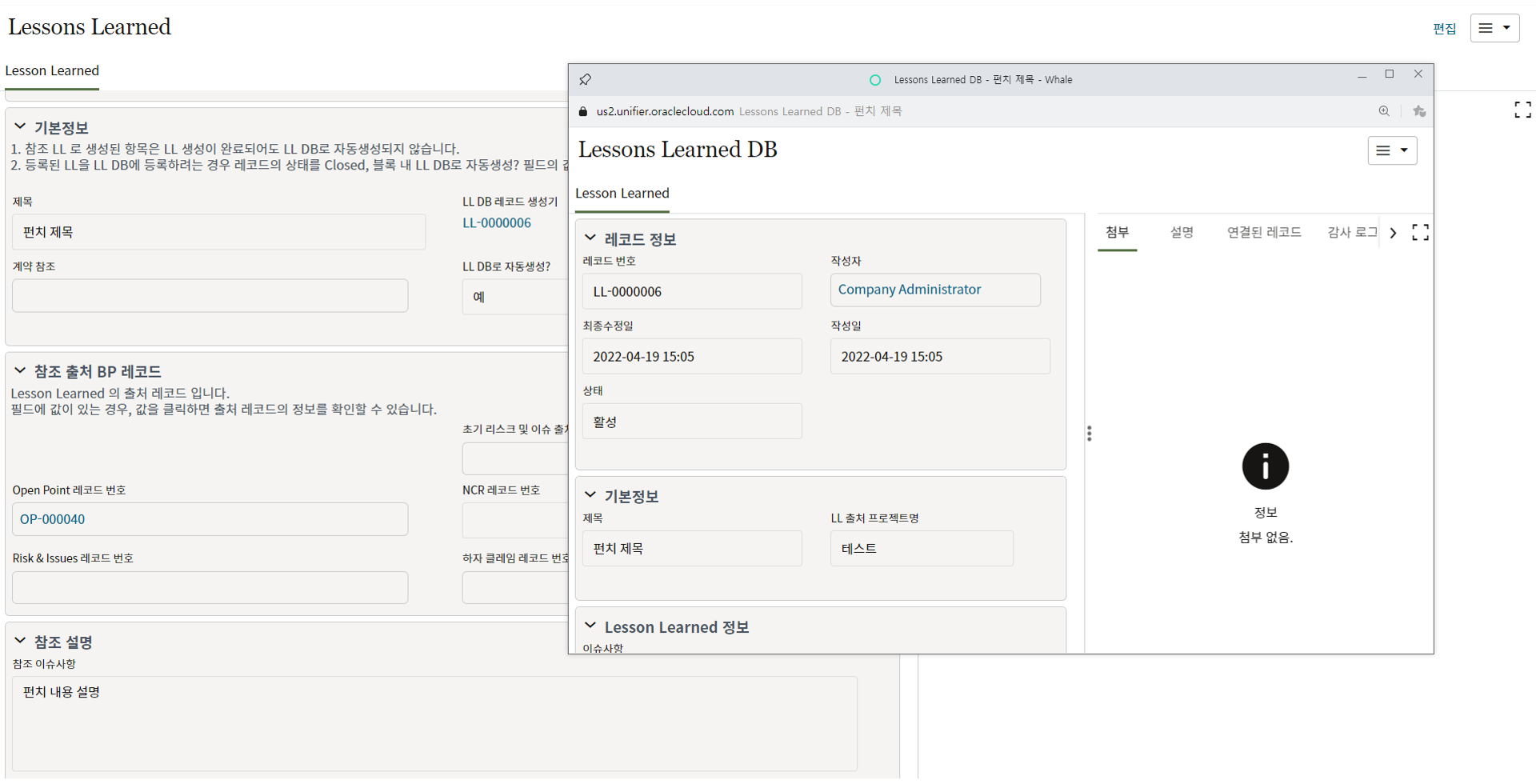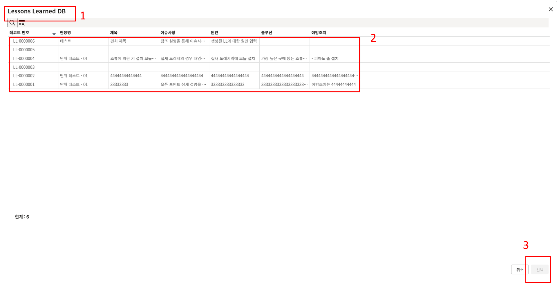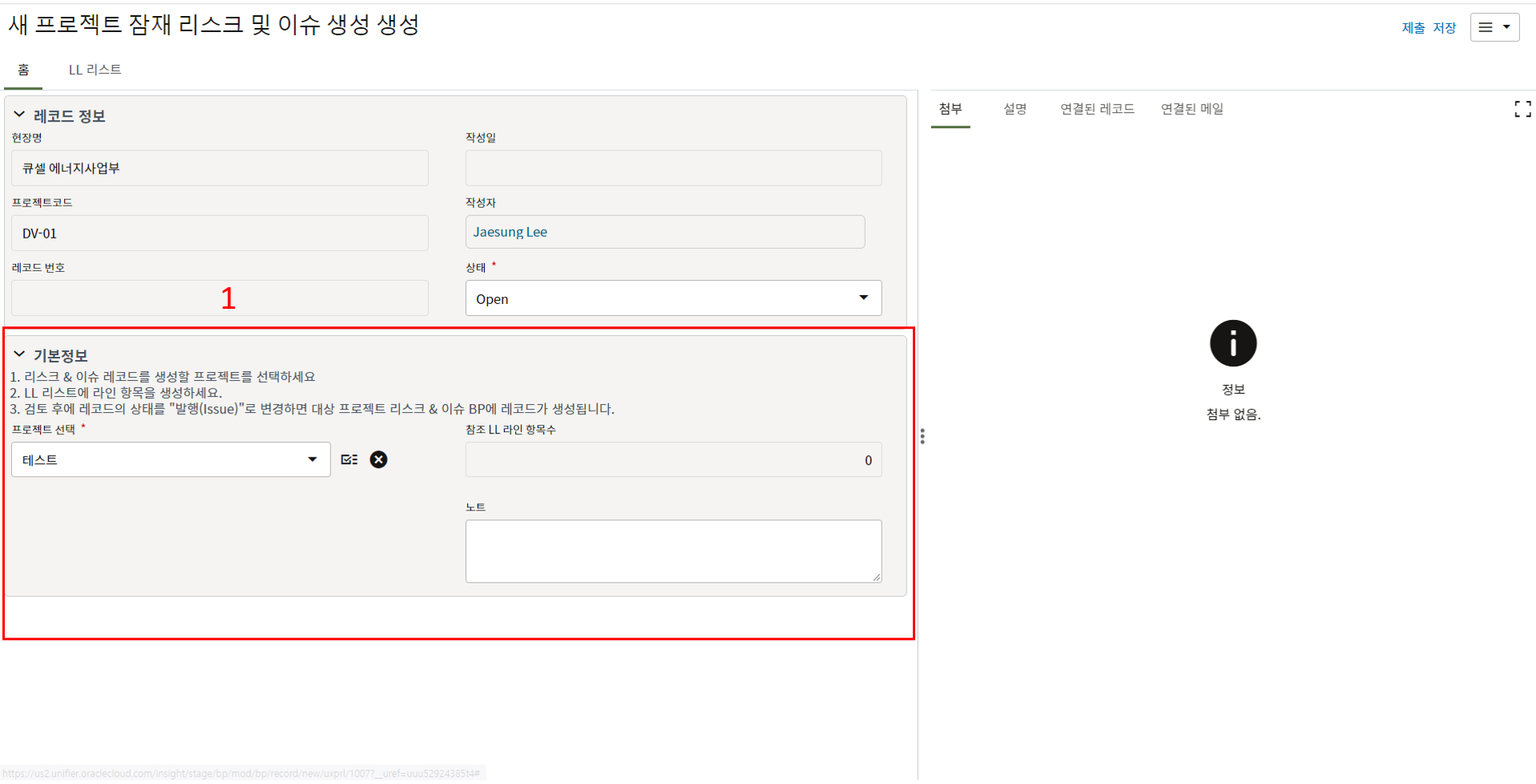 5. LL DB로 자동생성? 필드에 '예'를 선택하고 상태를 Closed로 변경하면 해당 LL이 Lessons Learend DB에 저장됩니다.
