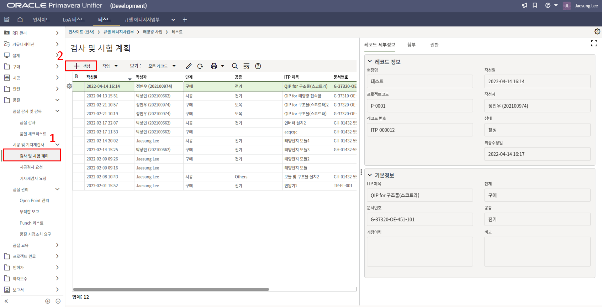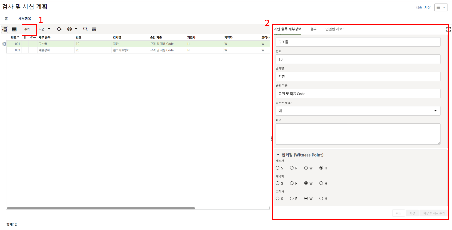 1. 검사 및 시험 계획은 '검사 ITP 항목을 저장'하는 메뉴 입니다.