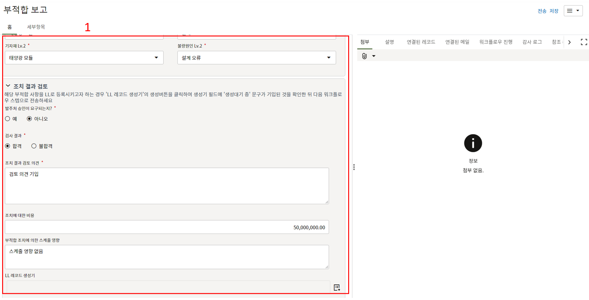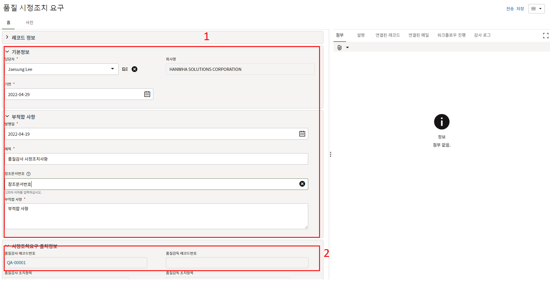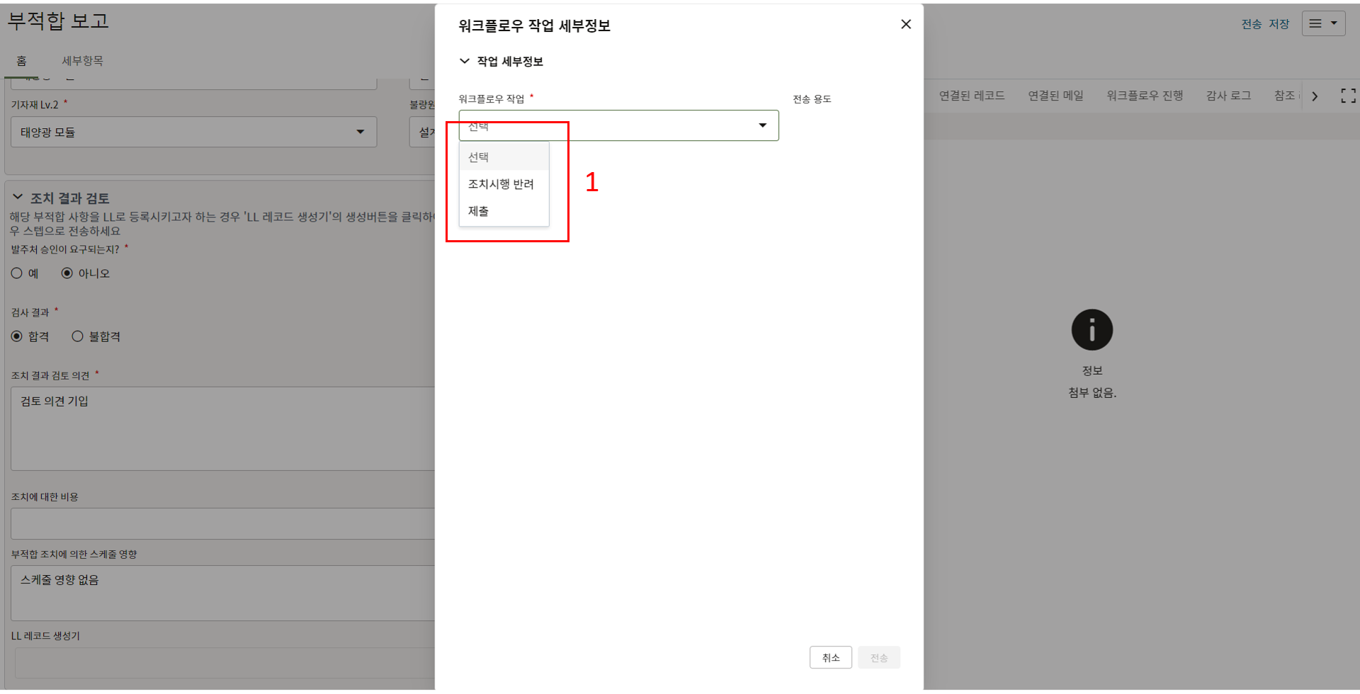 1. 한화솔루션에서 발행한 부적합 내용을 확인 후,