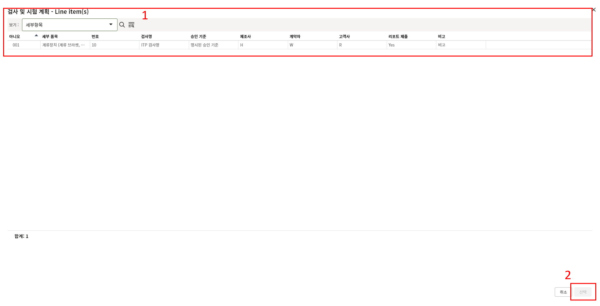 7. ITP 항목 선택 시 검사 품목과 매칭되는 항목을 선택해야 합니다.