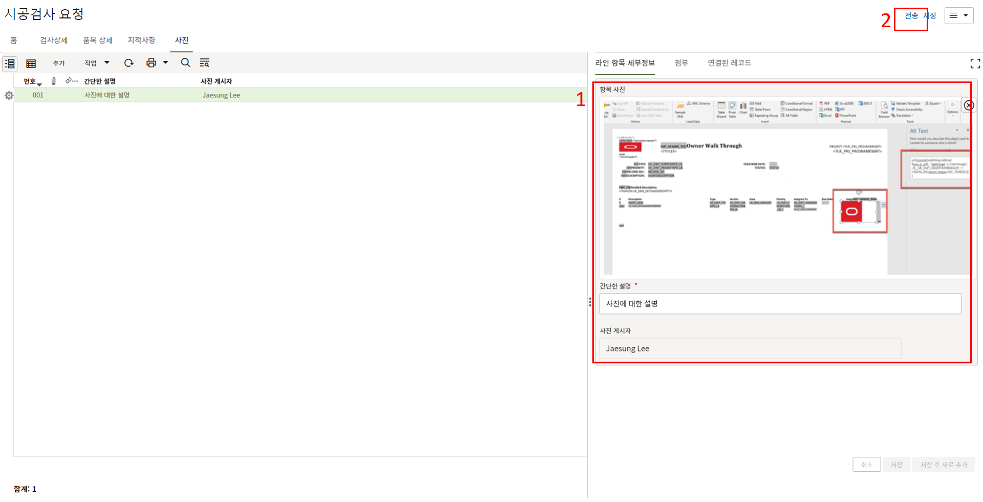 11. 검사사진을 사진탭에 등록합니다.