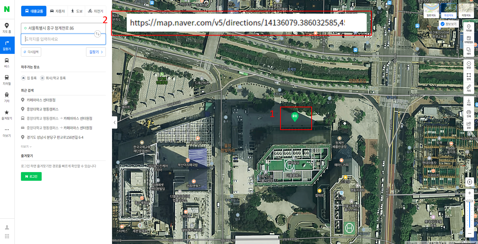 4. 네이버지도나 다음지도 등에 출발지를 지정한 뒤 브라우저 URL을 복사한 뒤 3. 하이퍼링크 항목에 입력합니다.